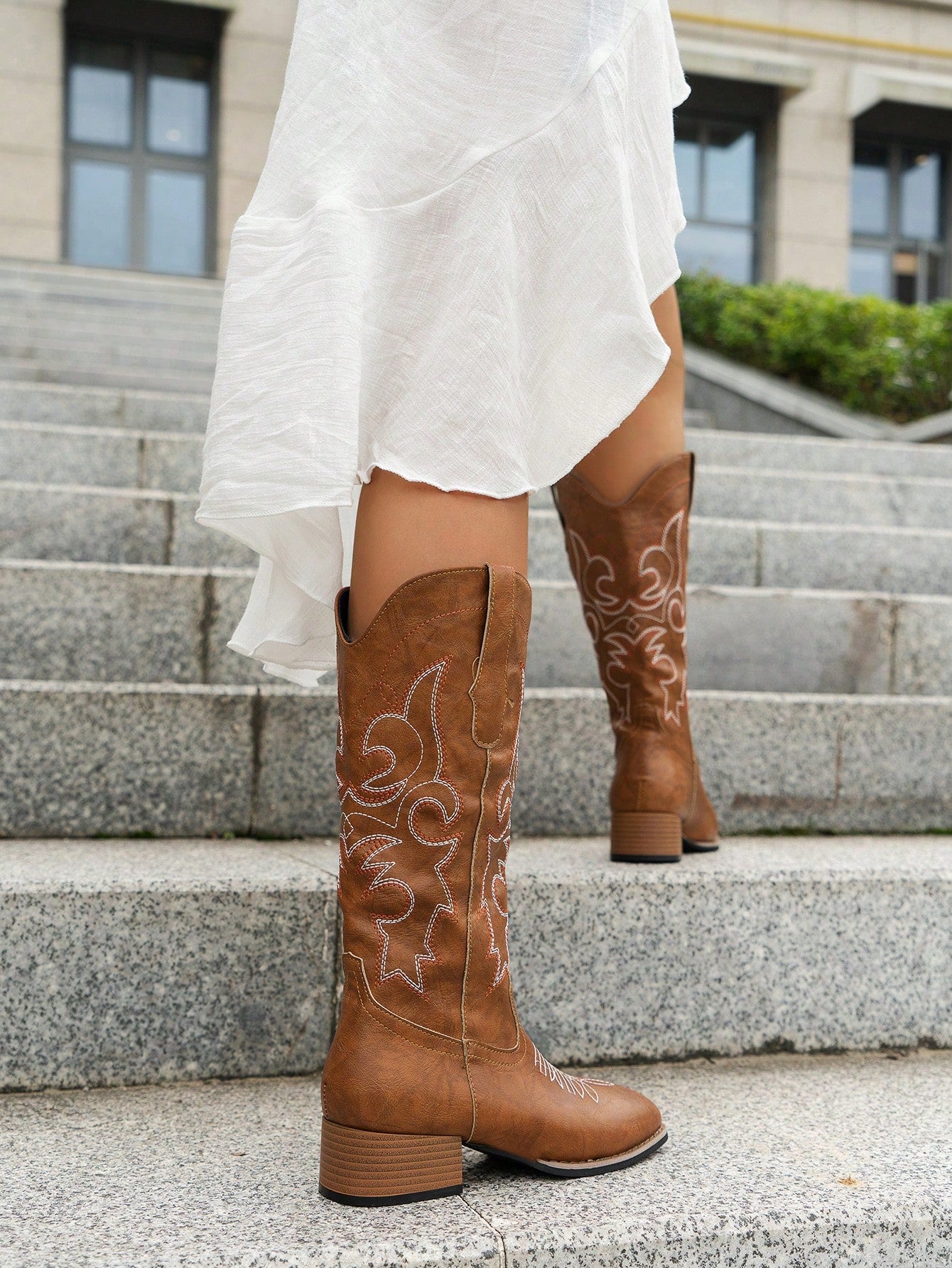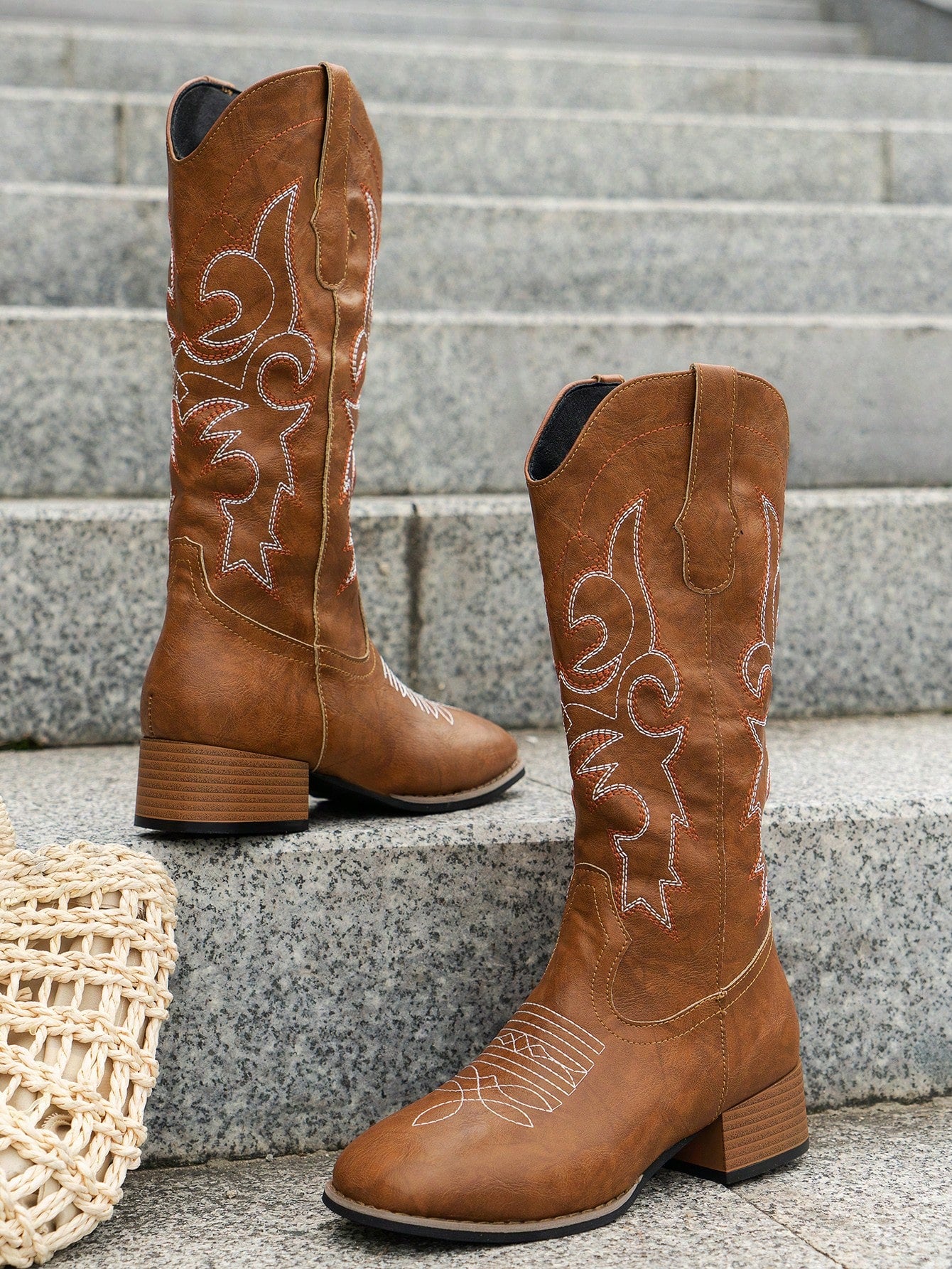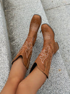 أحذية رعاة البقر الجديدة للنساء، ذات الطراز الغربي، باللون البني ومطرزة.