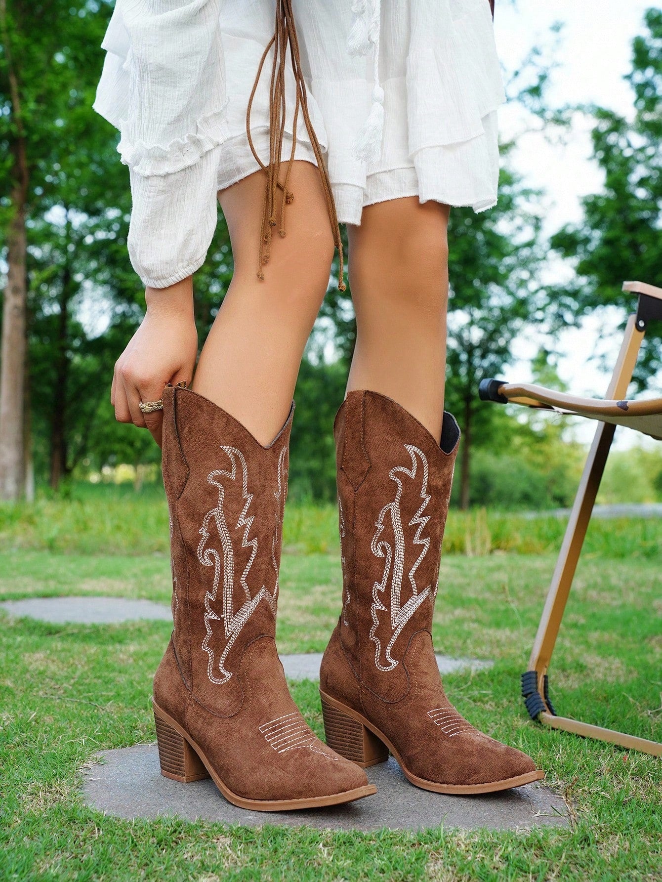 صندل نسائي أنيق بكعب إسفين سميك ومنصة عالية، مزين بمسامير، مقاوم للماء