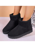 أحذية شتوية قصيرة مبطنة حرارياً باللون الأسود للنساء 2025 - أحذية شتوية أنيقة ذات نعل ناعم وبطانة فروية