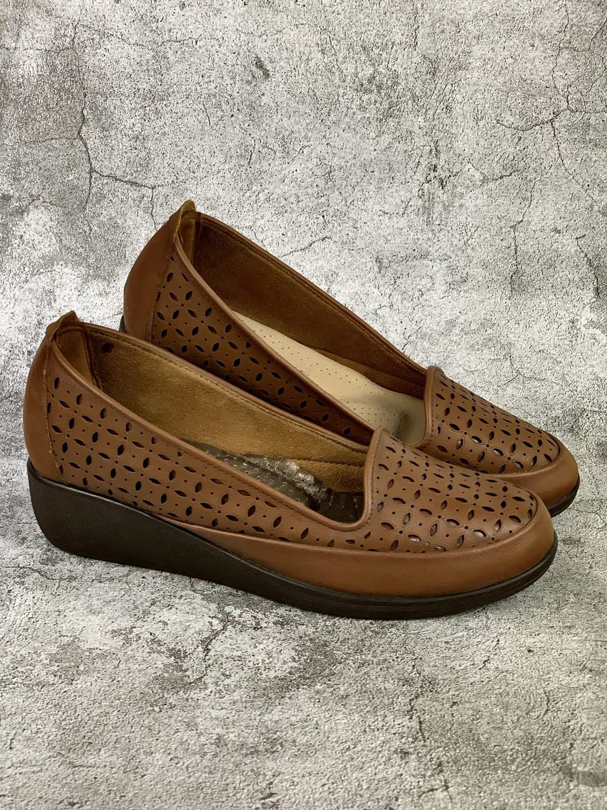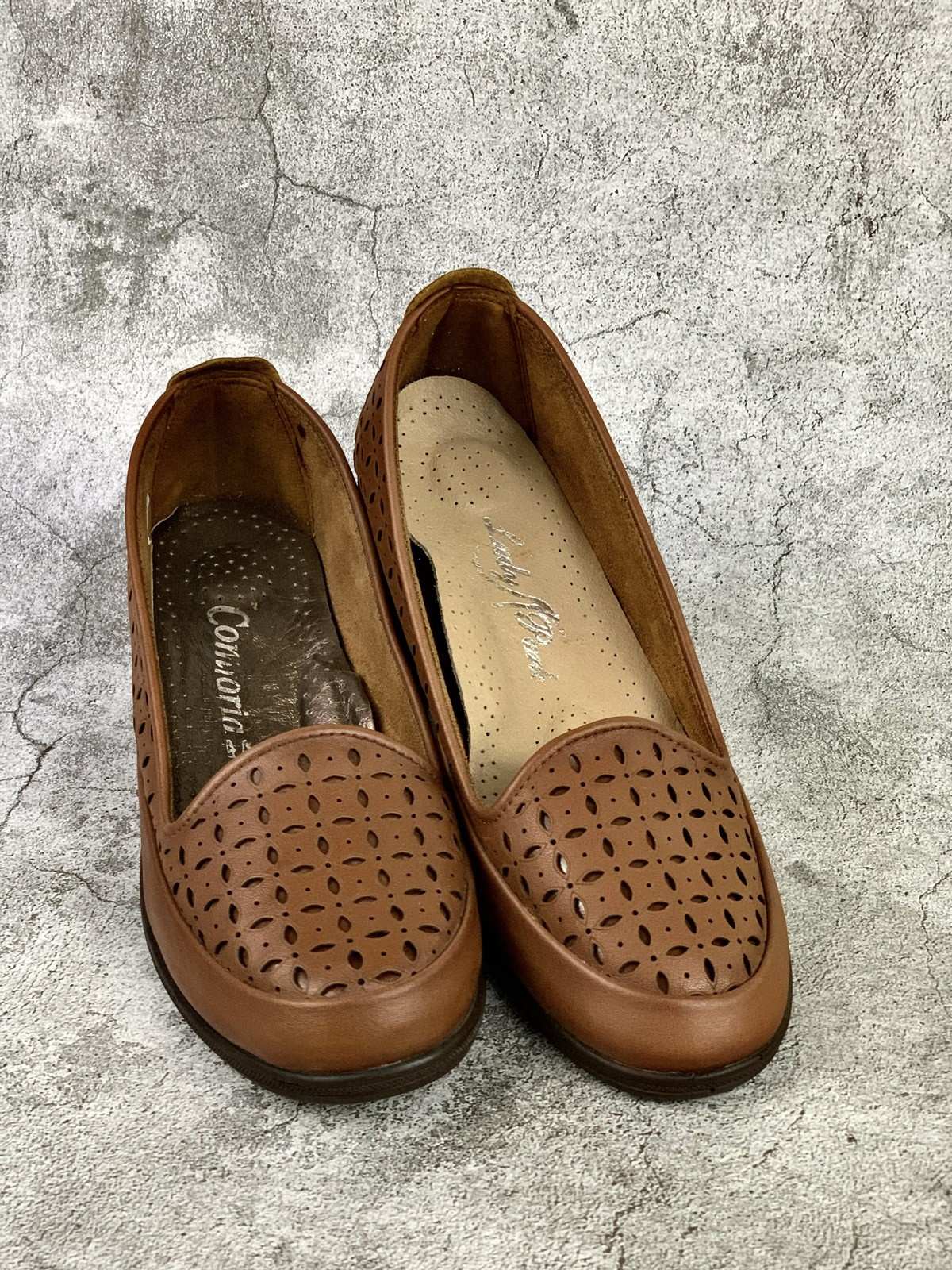 للنساء - حذاء طبي بكعب متوسط ​​بني