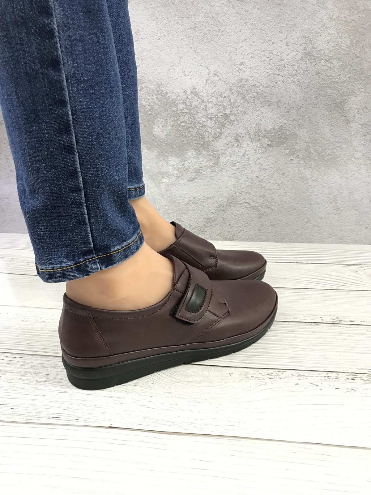 حذاء تيك شاك طبي مريح برباط وكعب متوسط بني اللون للنساء