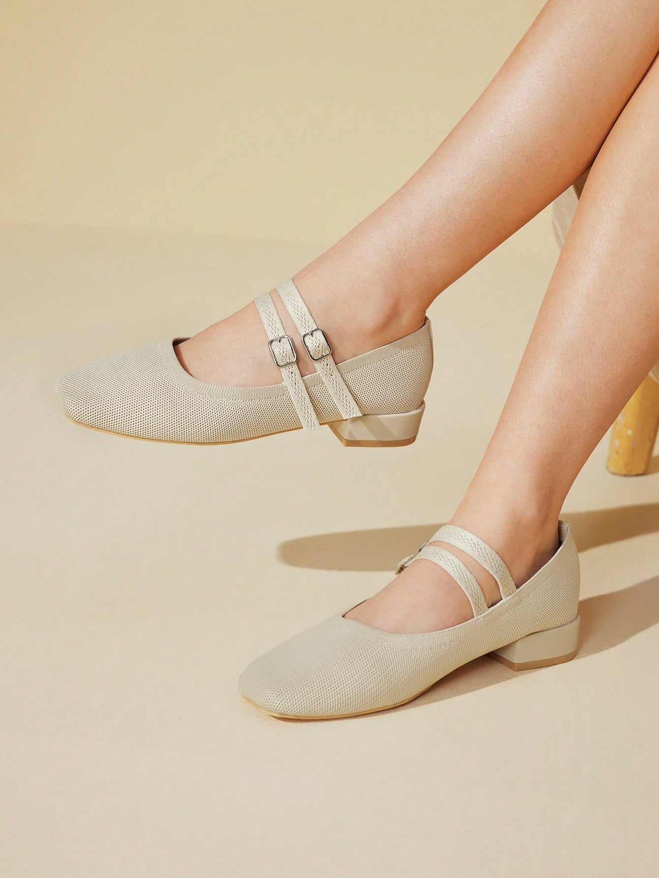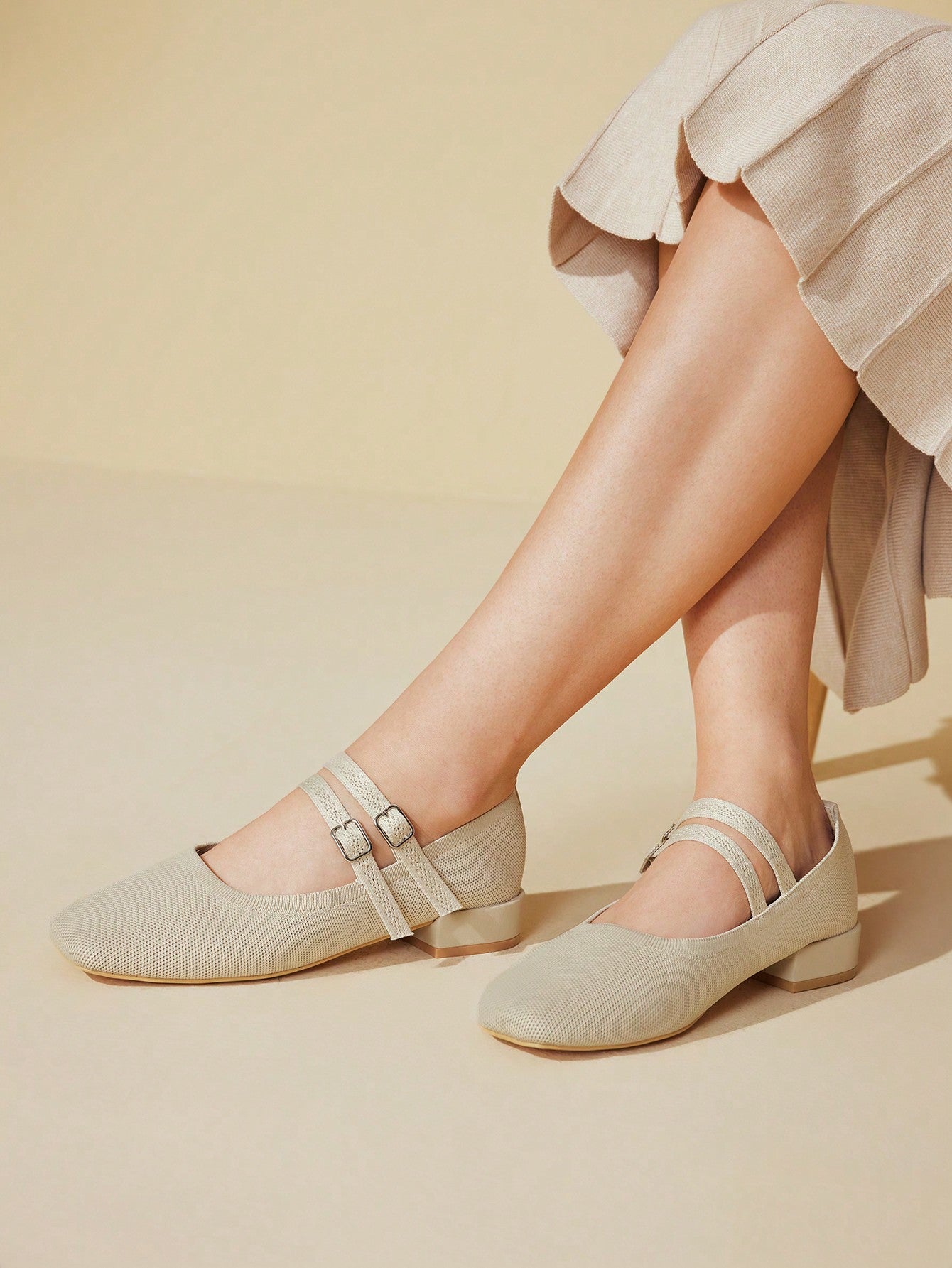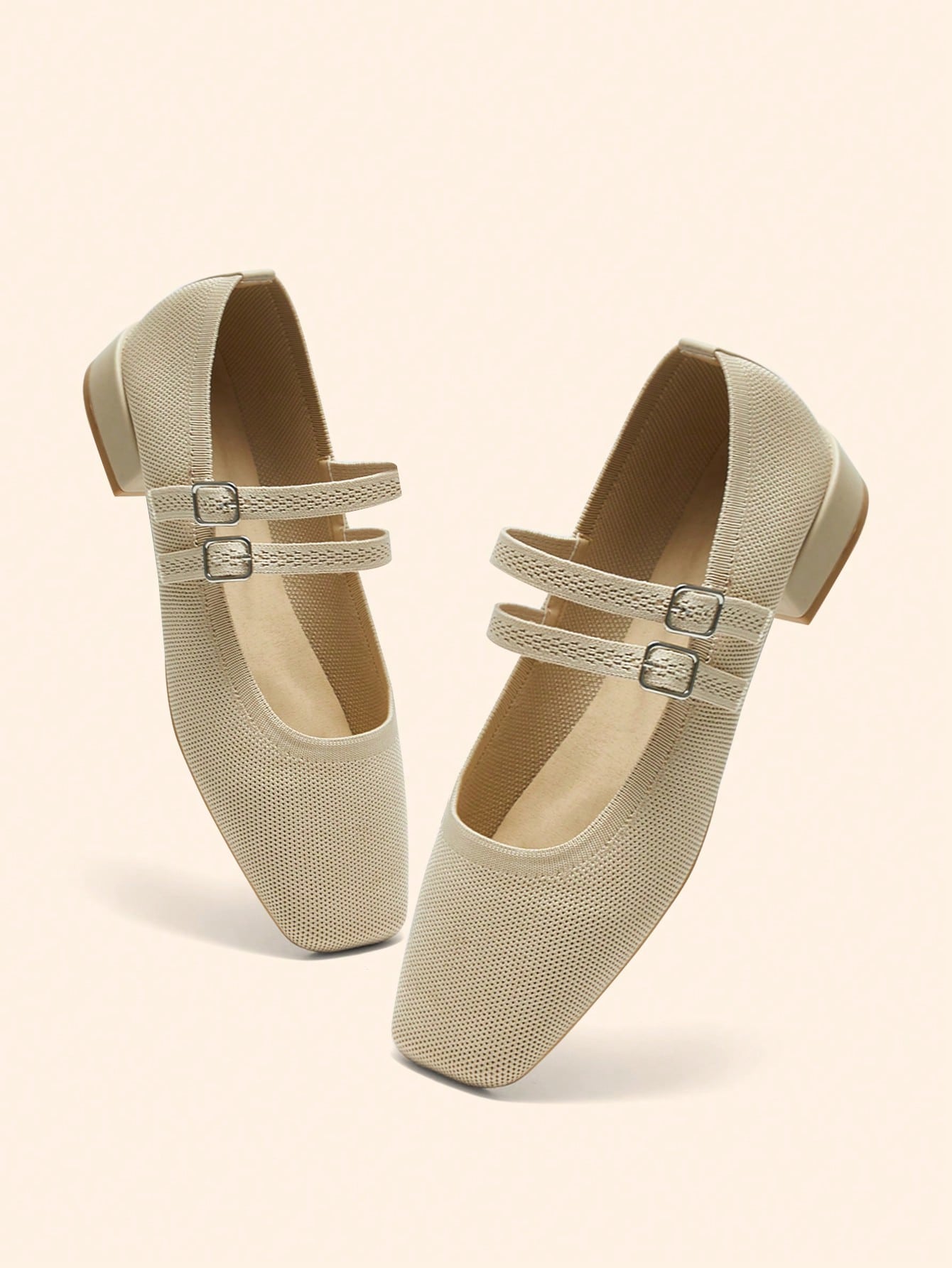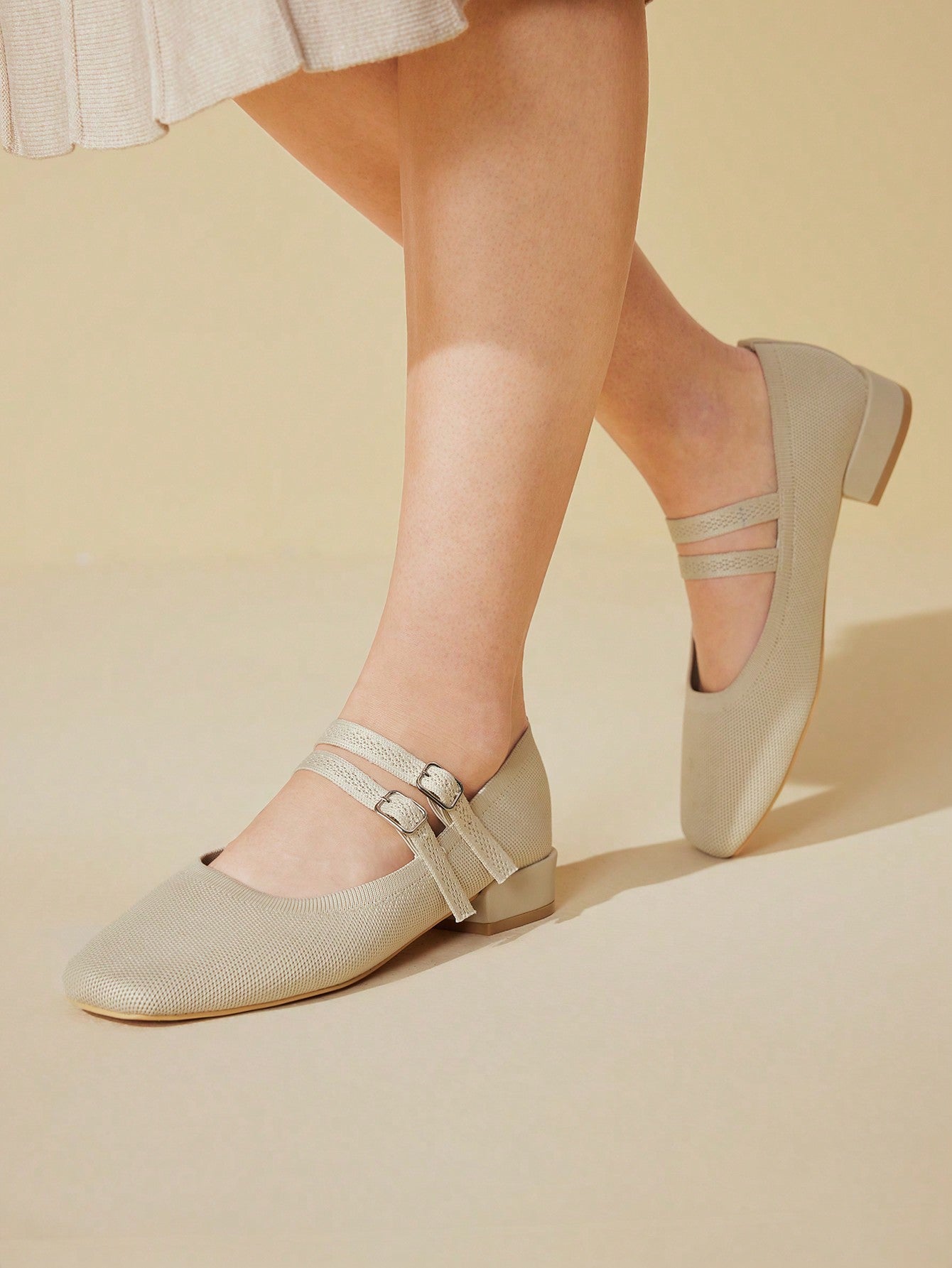 CUCCOO BASICS Fashion Black Metal Mary Jane Low Chunky Heel Flats أحذية الربيع عطلة الربيع عيد الفصح