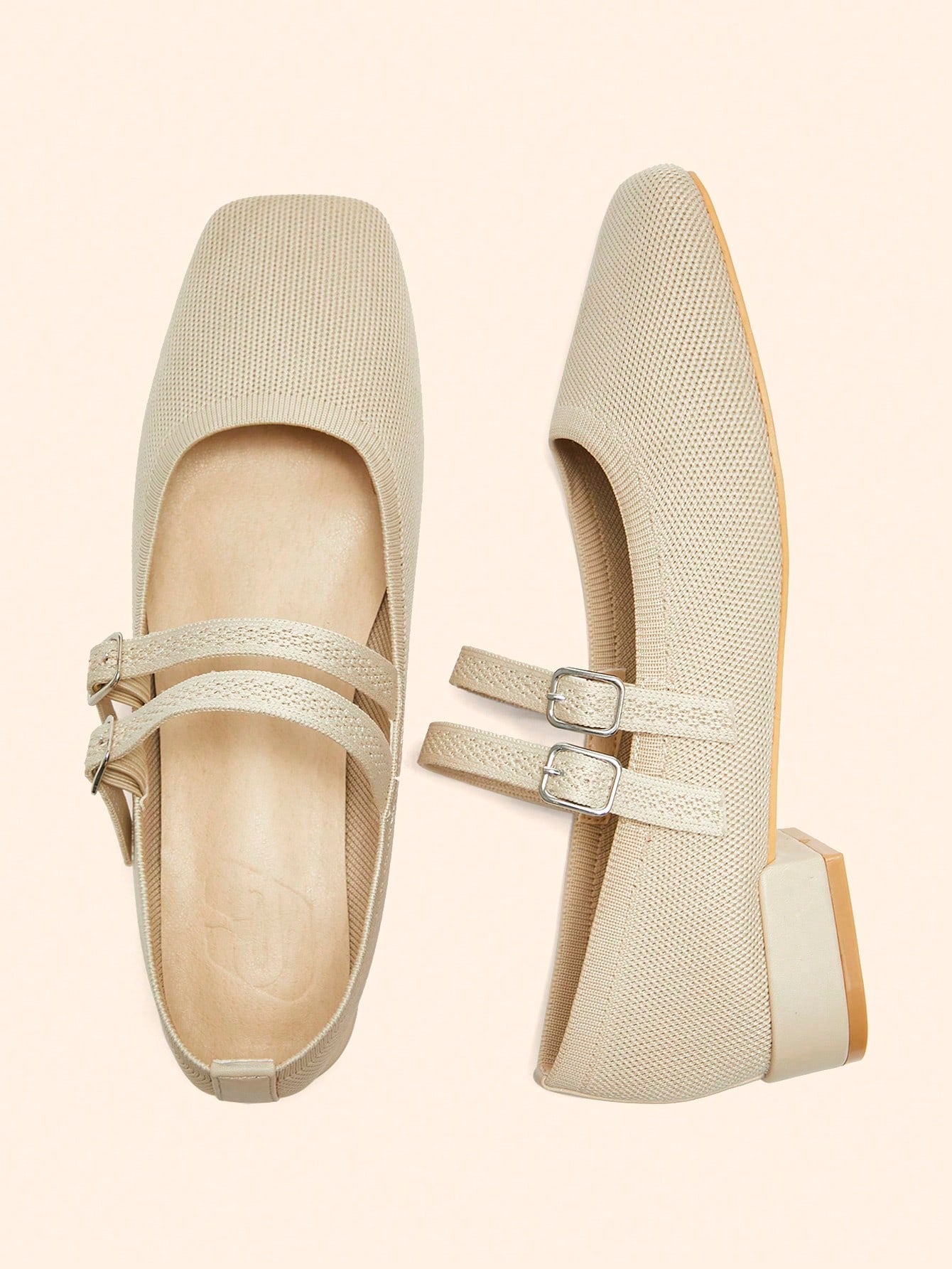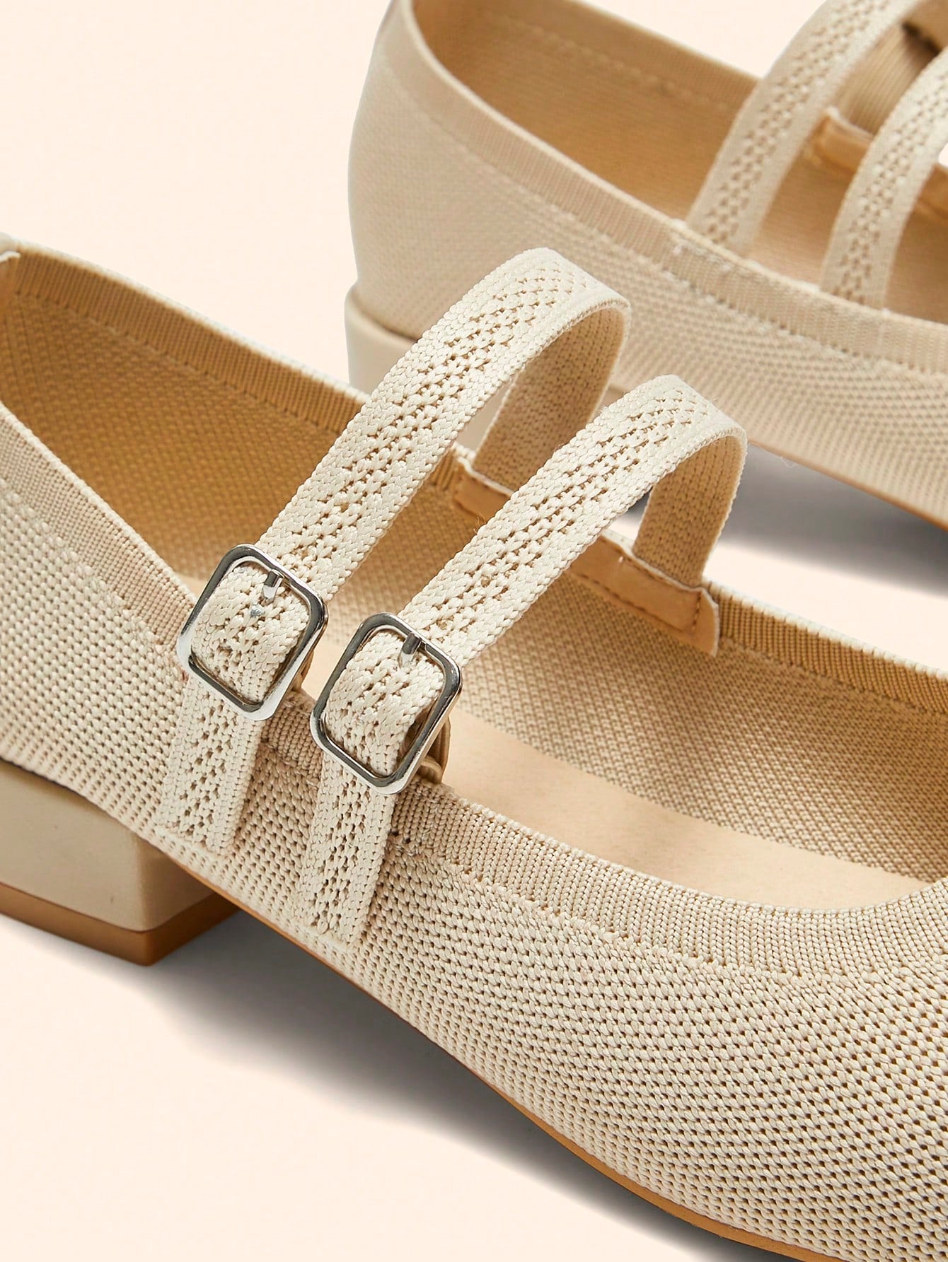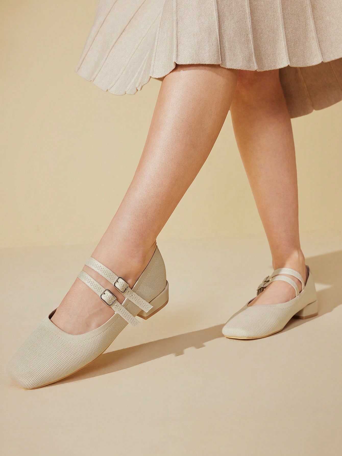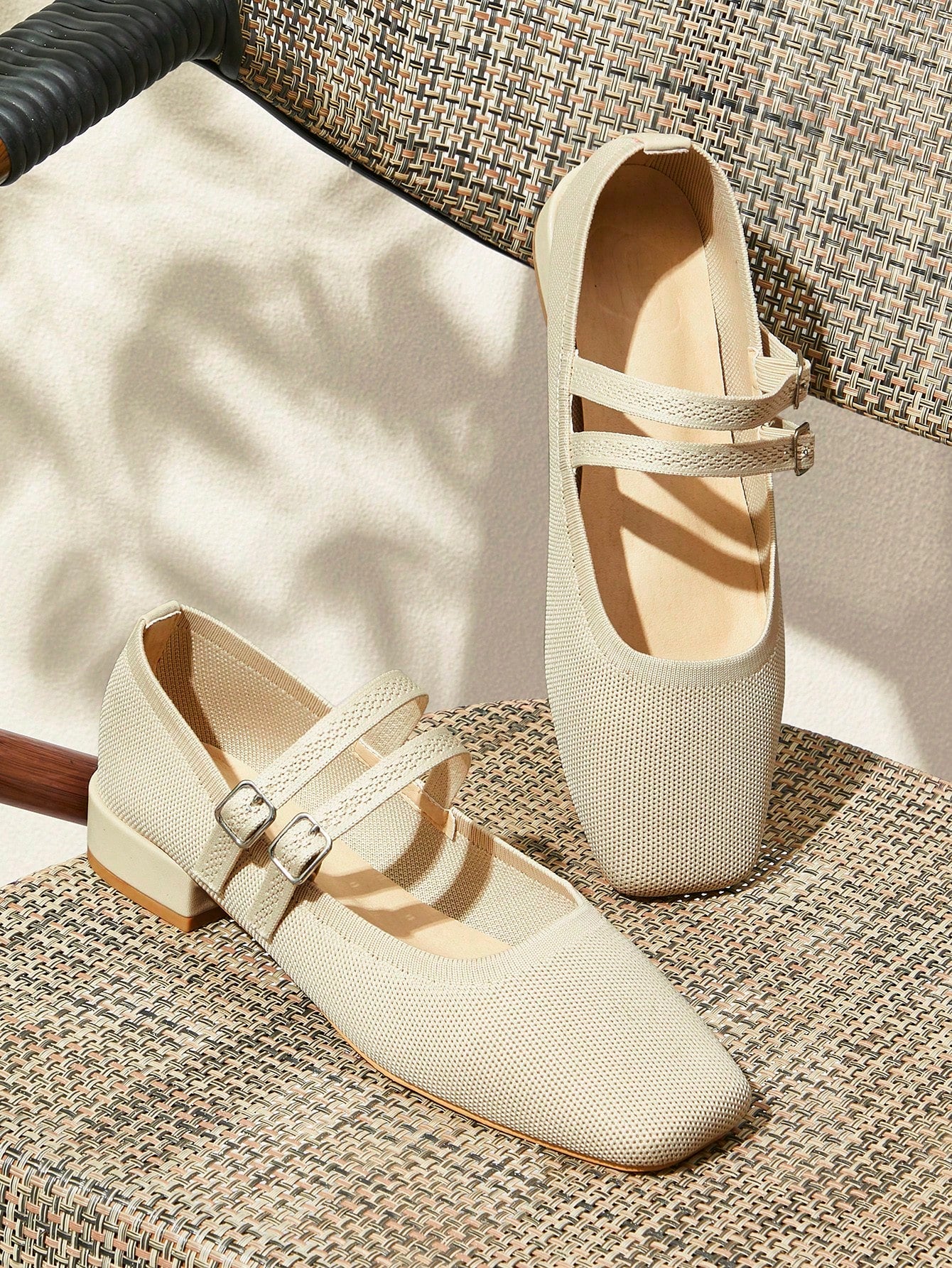 CUCCOO BASICS Fashion Black Metal Mary Jane Low Chunky Heel Flats أحذية الربيع عطلة الربيع عيد الفصح