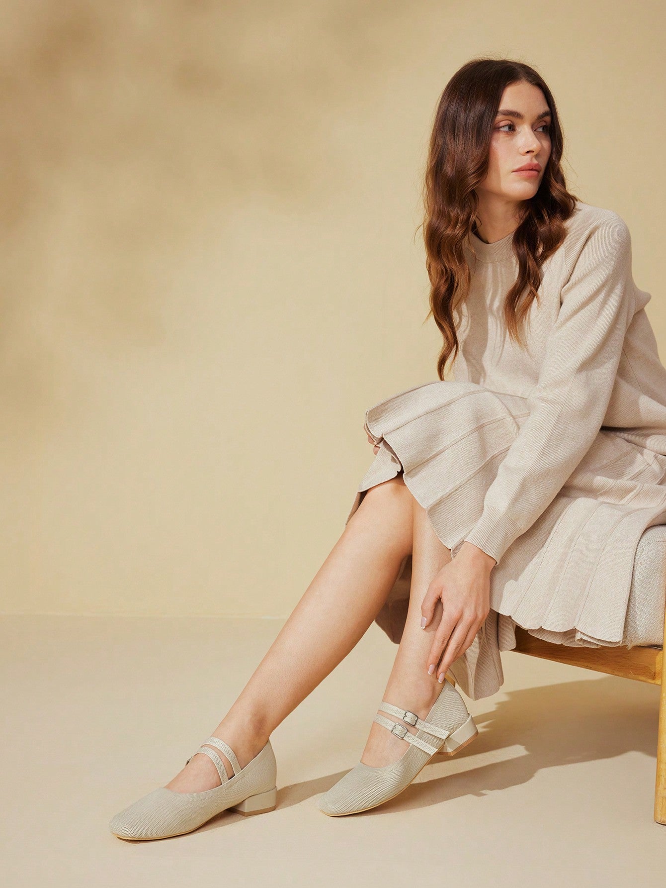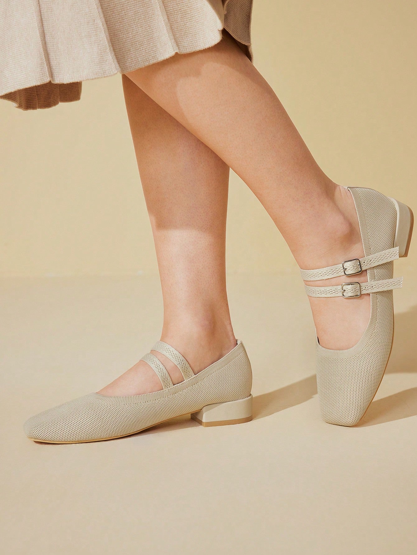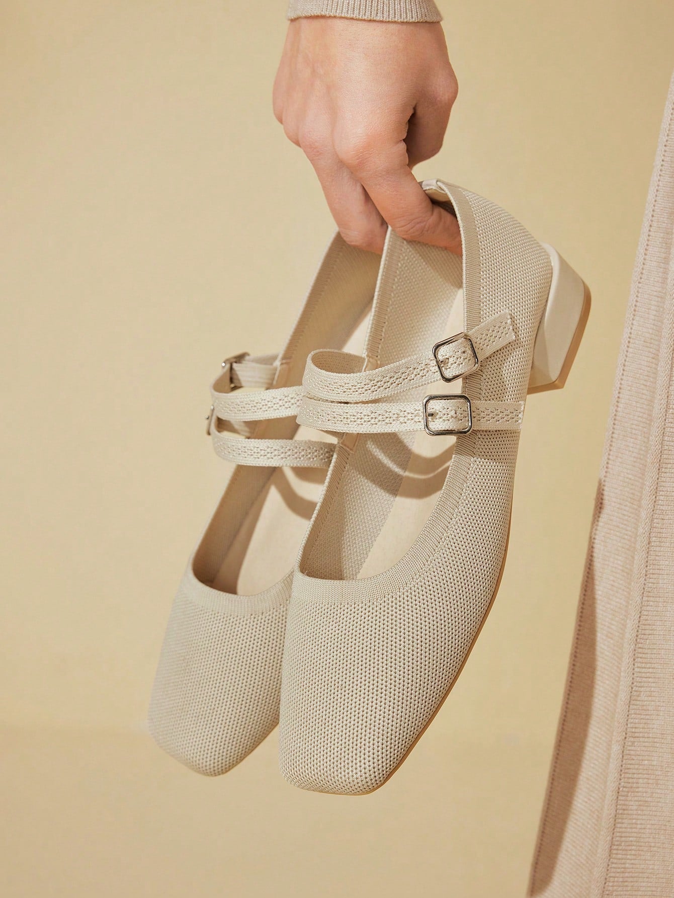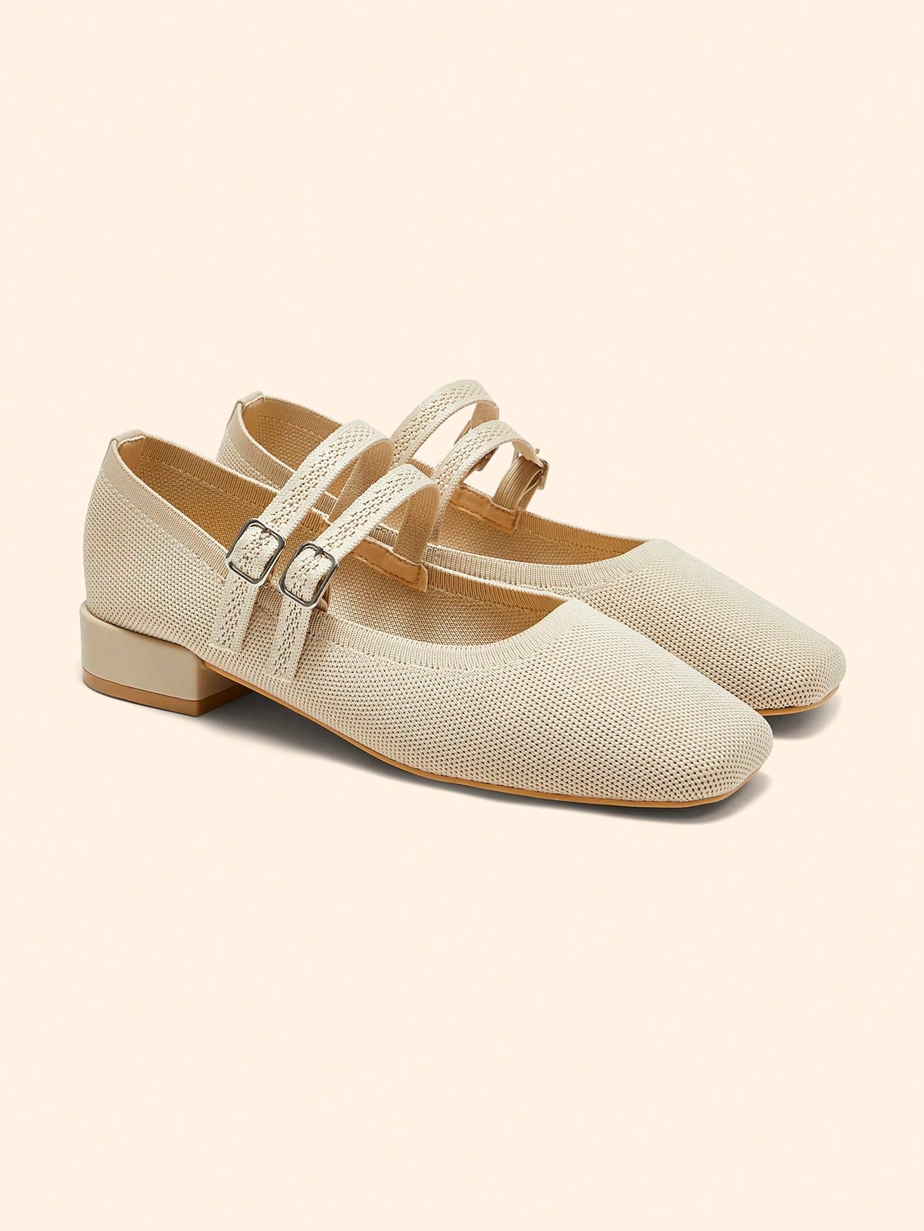 CUCCOO BASICS Fashion Black Metal Mary Jane Low Chunky Heel Flats أحذية الربيع عطلة الربيع عيد الفصح