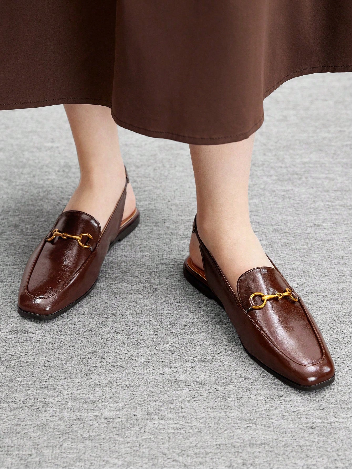 women CUCCOO BIZCHIC Women's Square Toe Fashion Commuter Elegant Buckle Decor Flat Slip-On Ballet Flats