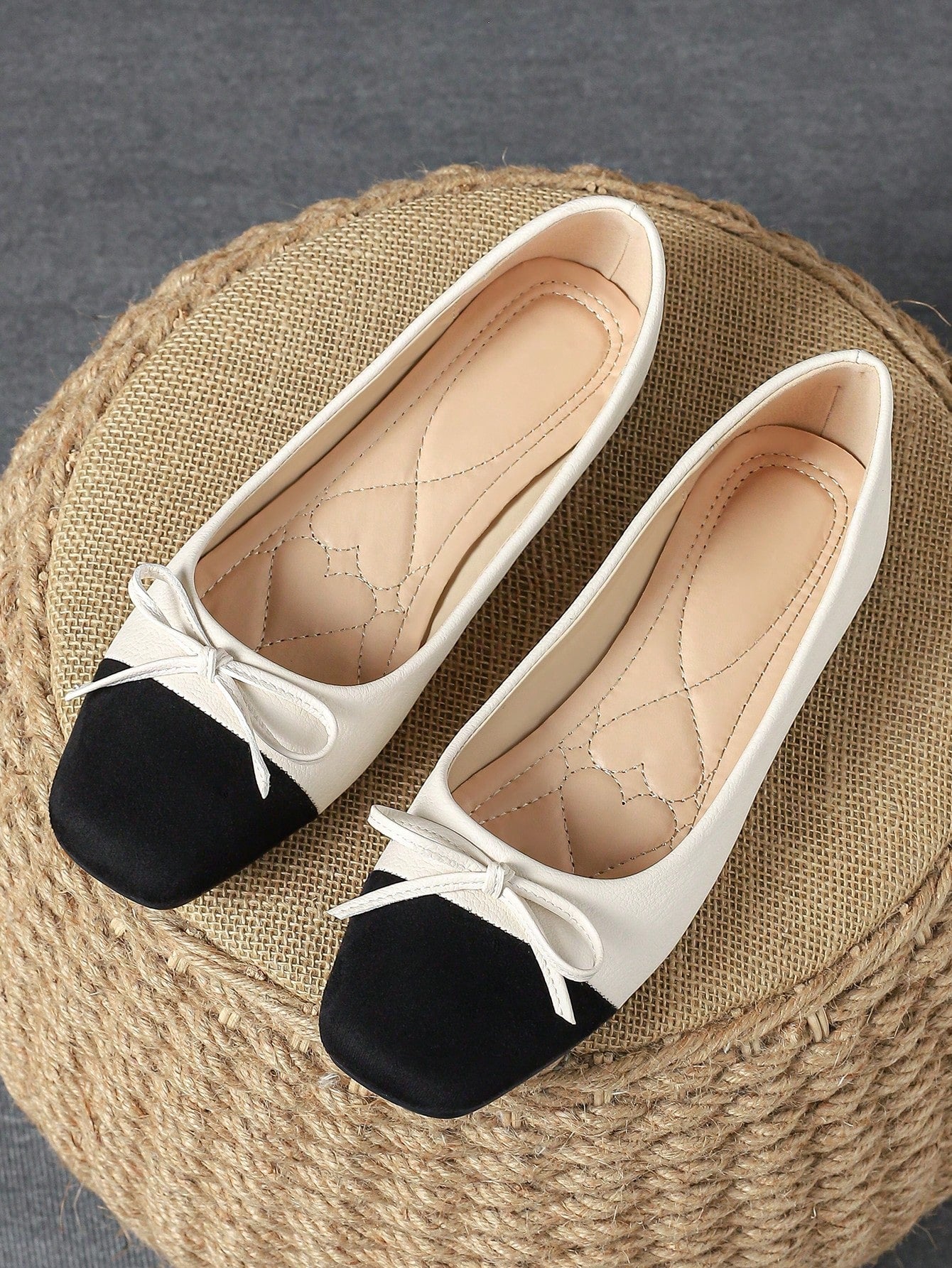 women Fashion Square Toe Light Pink Flat Shoes For Women