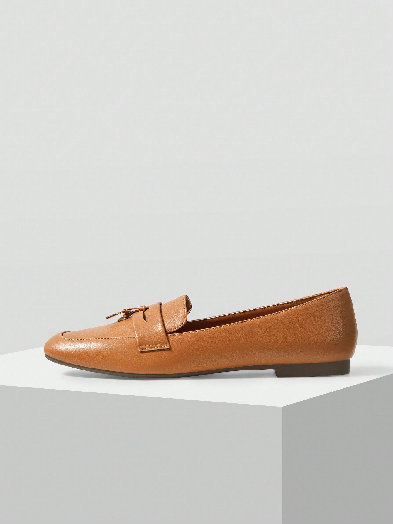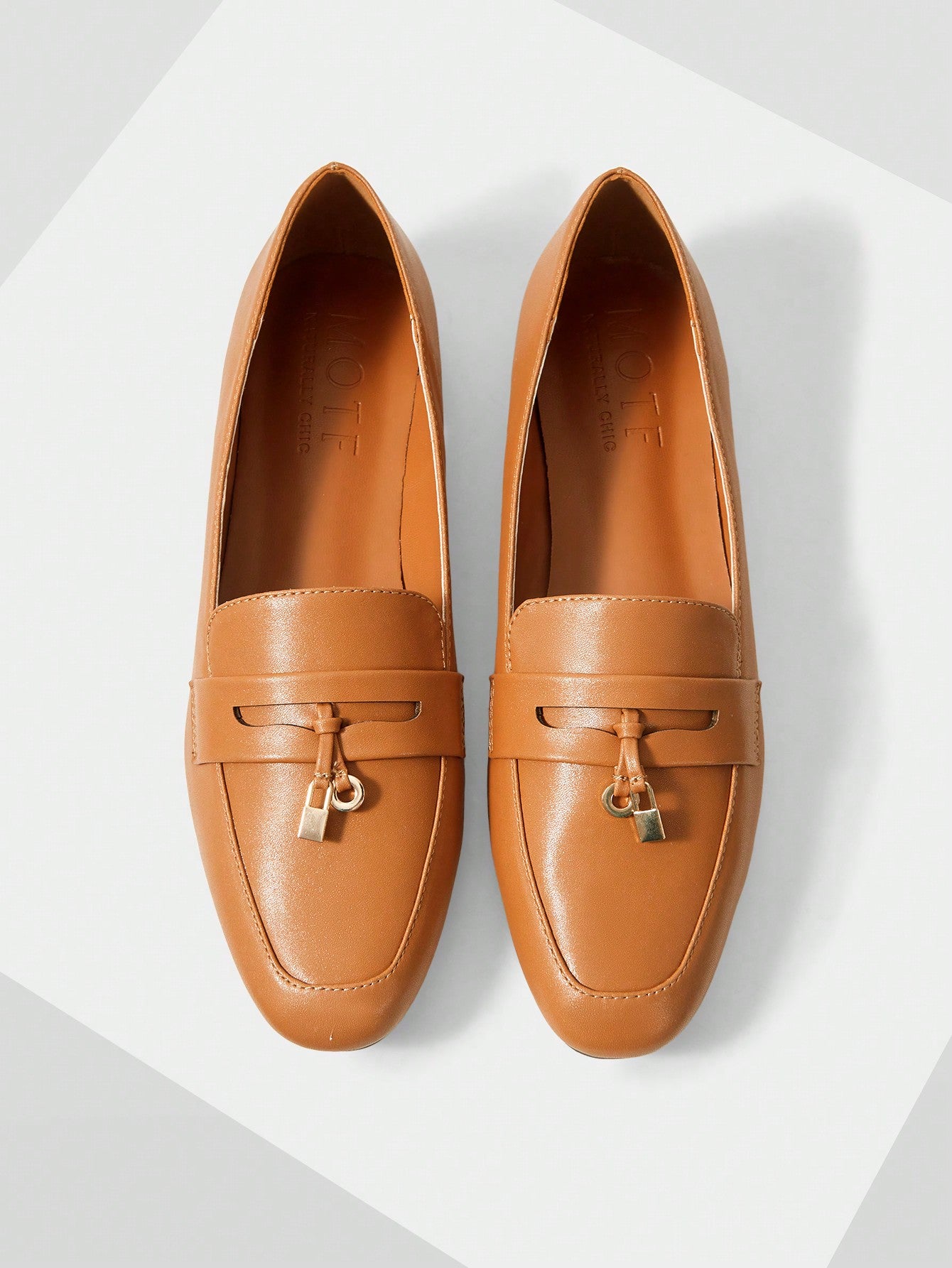 حذاء مسطح بسيط بأصابع مربعة وتفاصيل معدنية فاخرة من MOTF