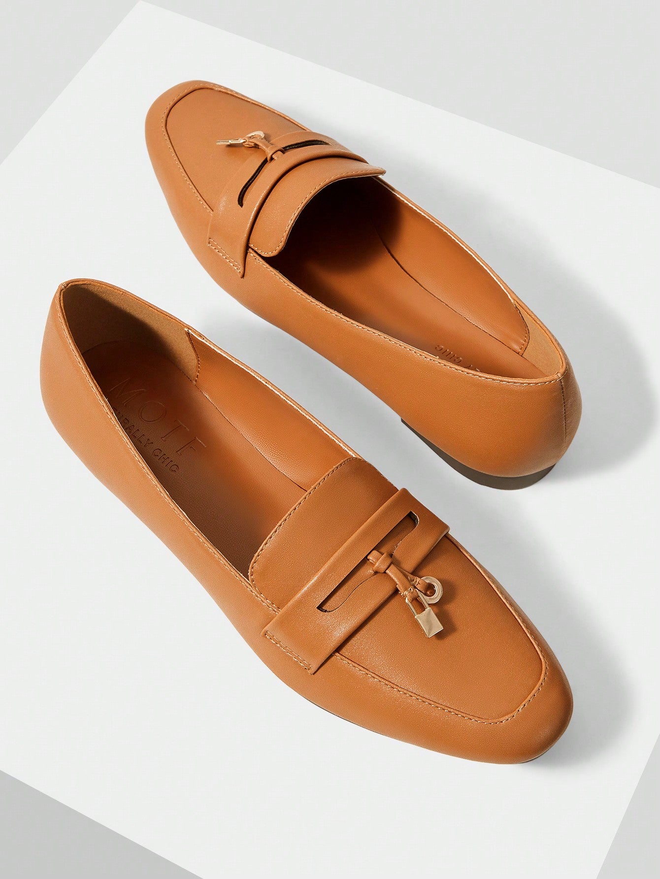 women MOTF PREMIUM METAL DETAIL SQUARE TOE MINIMALIST FLAT SHOES