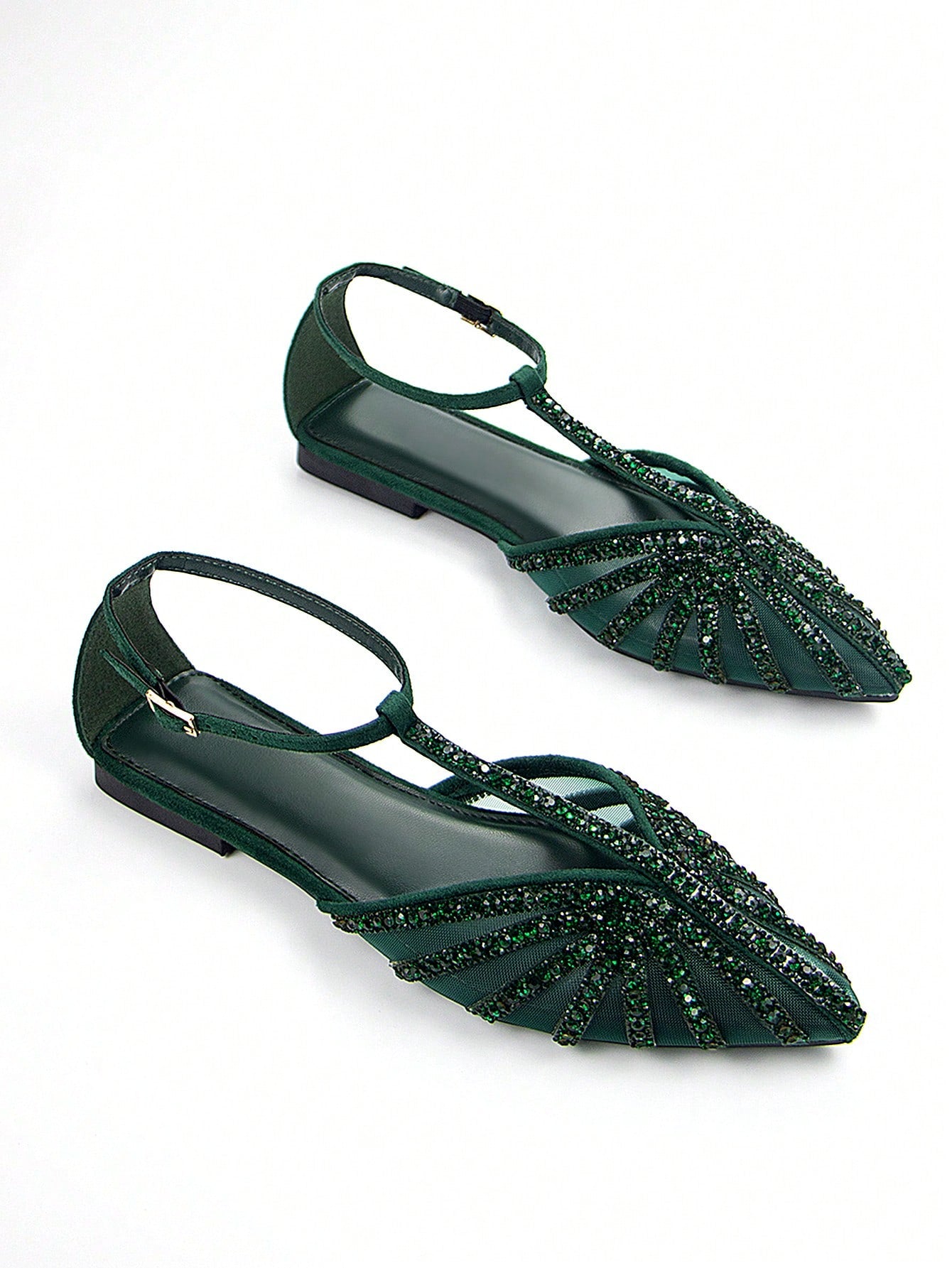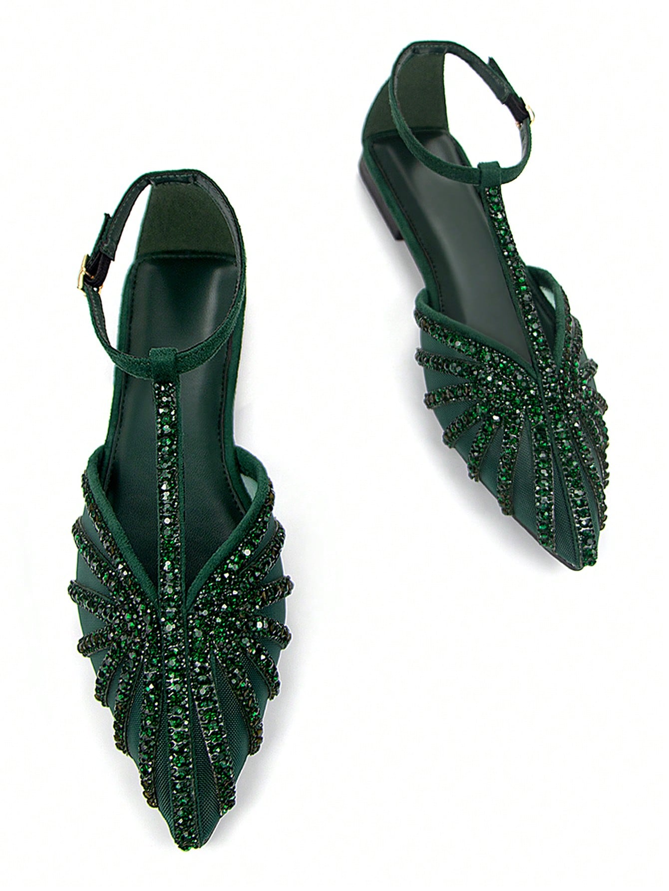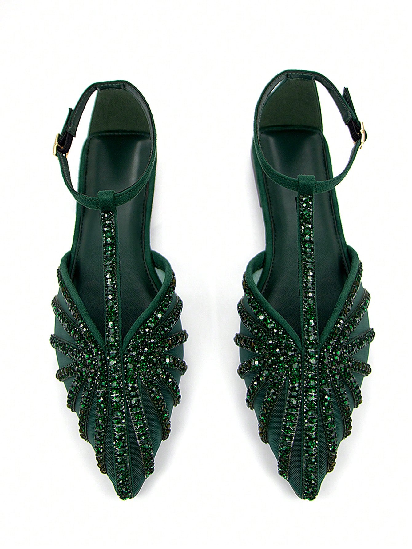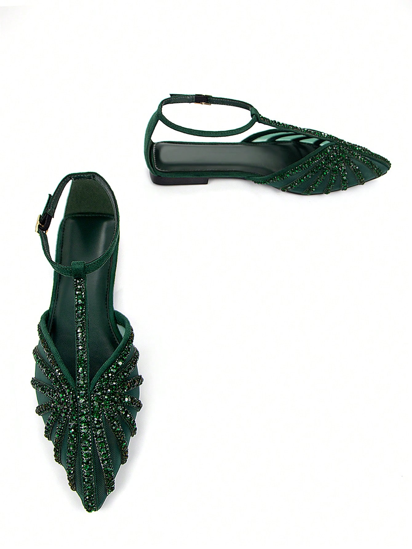 حذاء مسطح أنيق للنساء ذو مقدمة مدببة وحزام كاحل مجوف