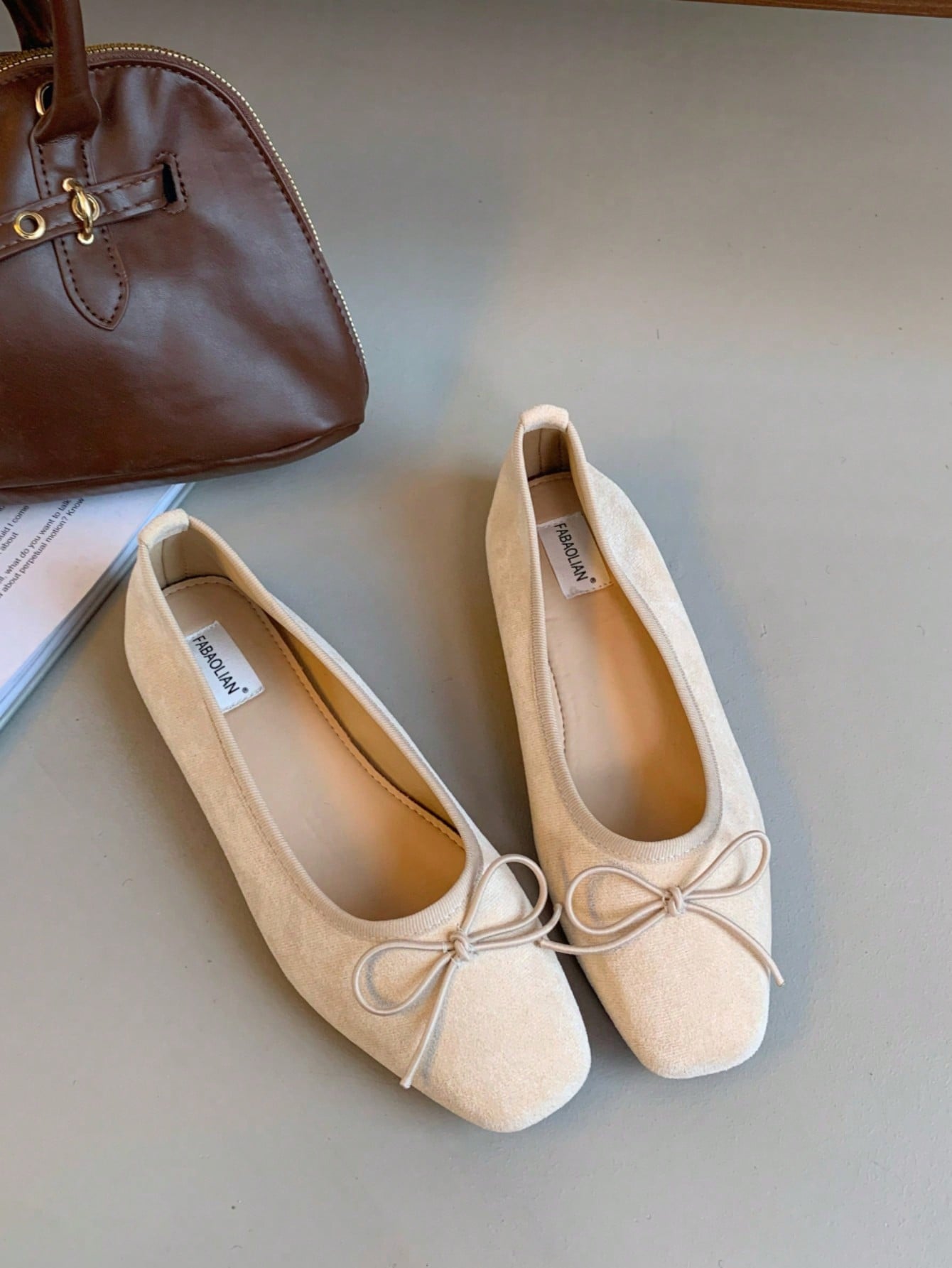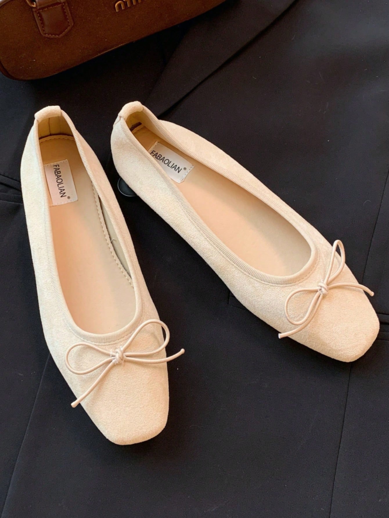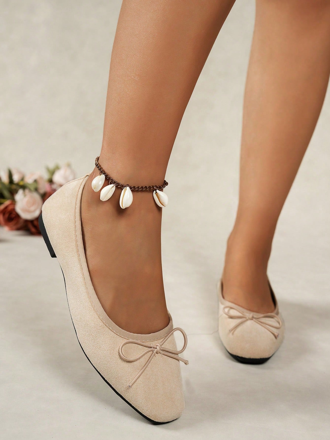 حذاء مسطح أنيق وبسيط للنساء باللون البيج