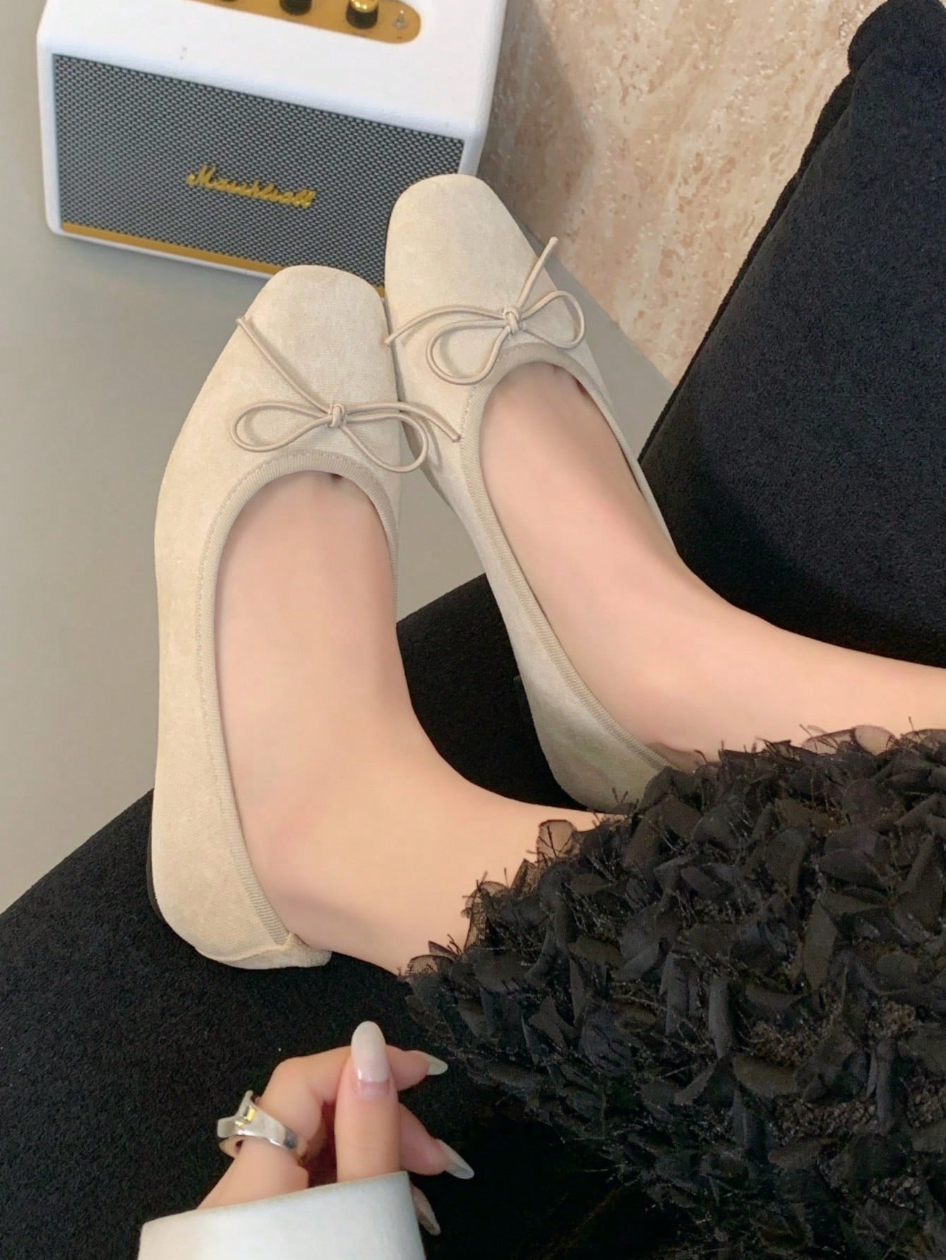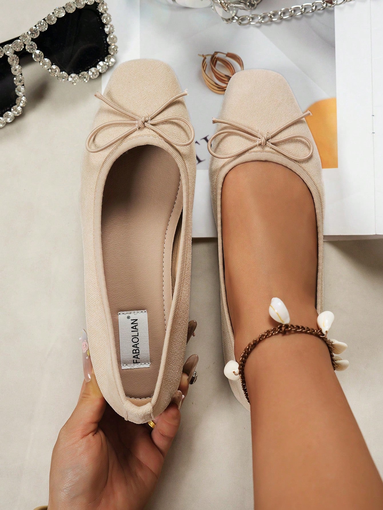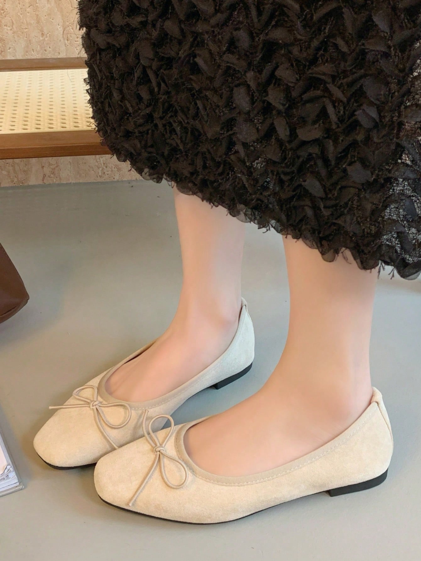 حذاء مسطح أنيق وبسيط للنساء باللون البيج