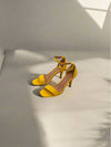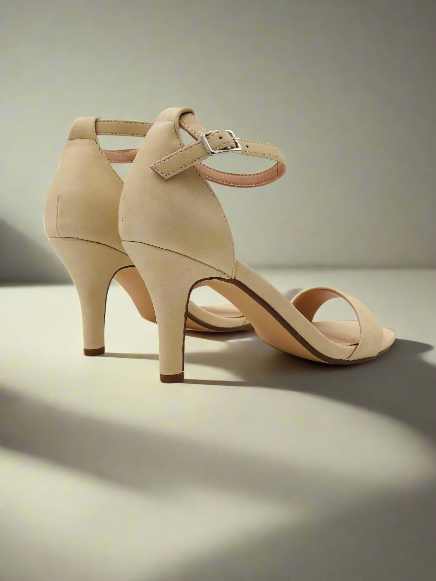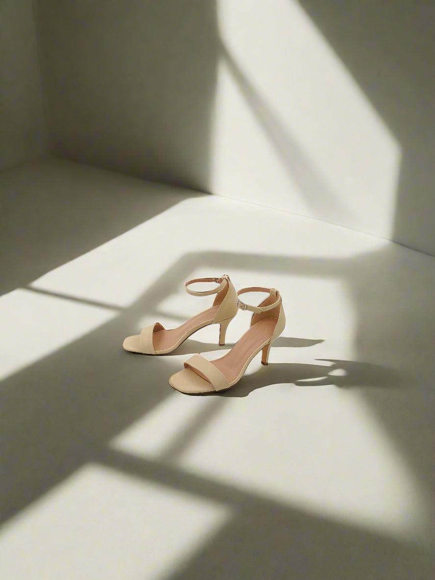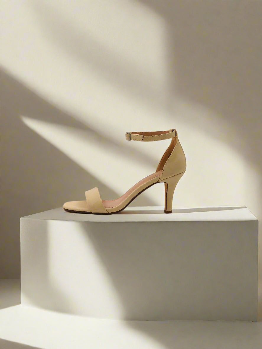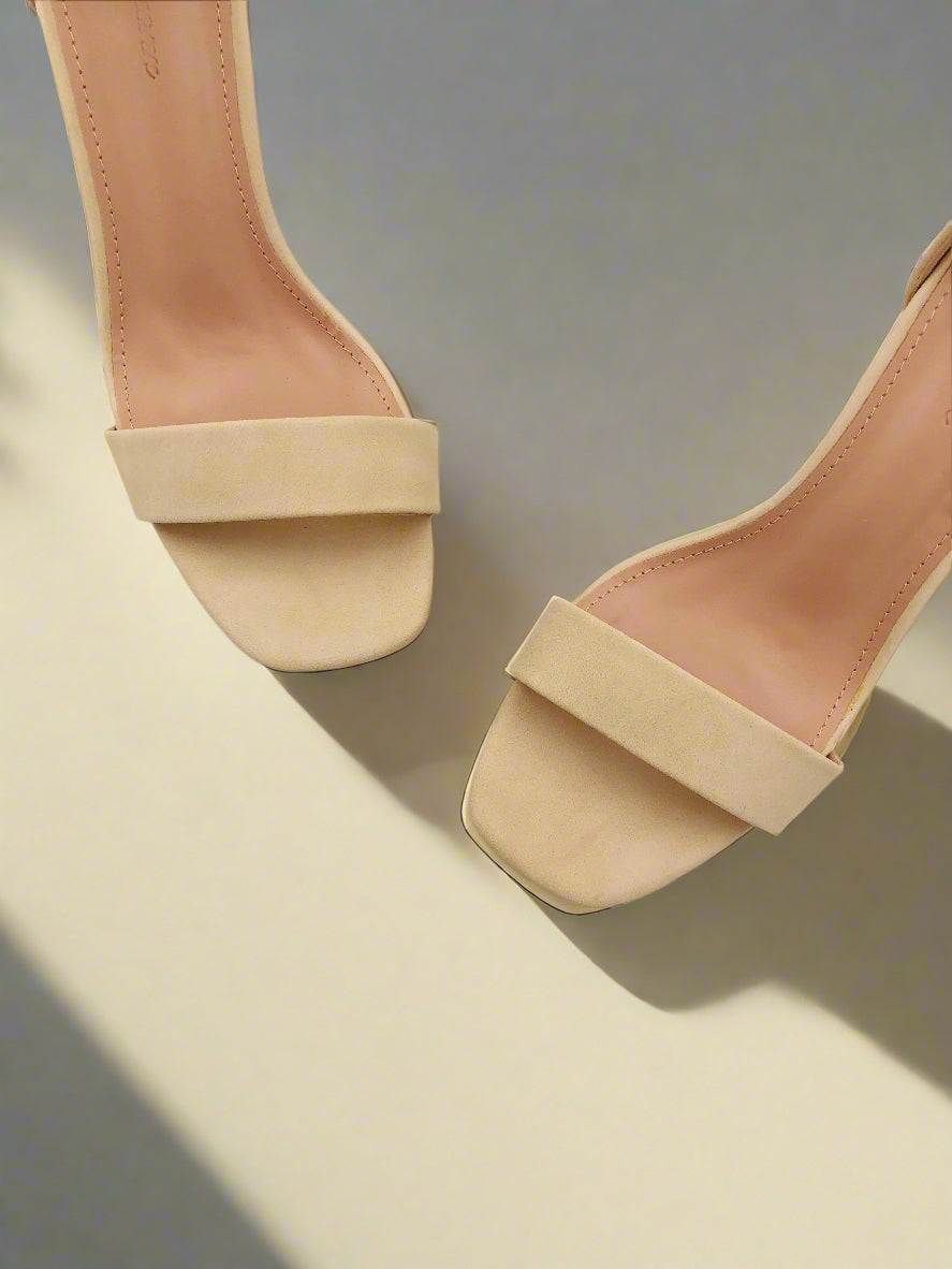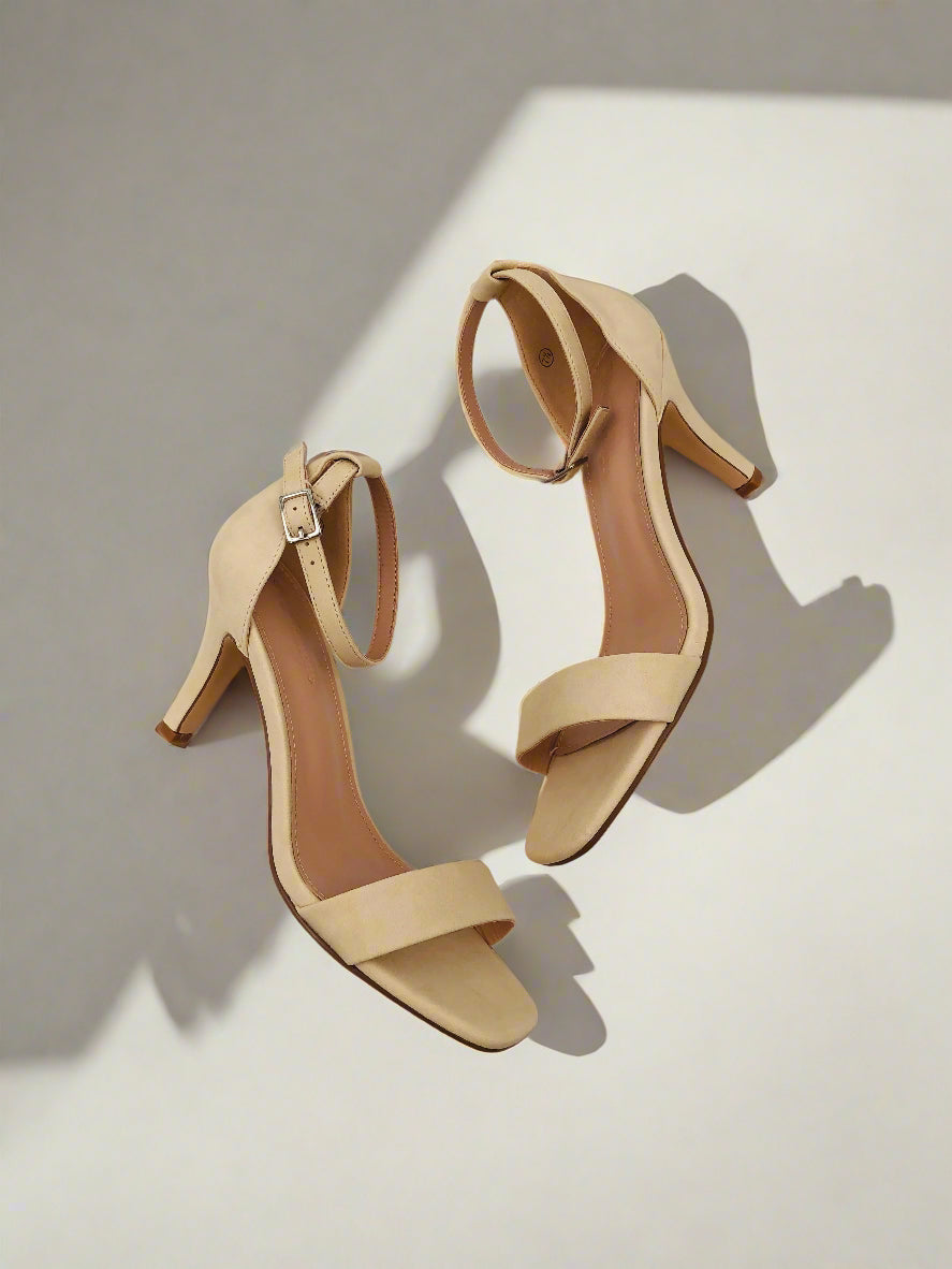 صندل باللون المشمشي بمقدمة مربعة وكعب متوسط الارتفاع وحزام قابل للتعديل عند الكاحل للنساء. مثالي لجميع المناسبات.
