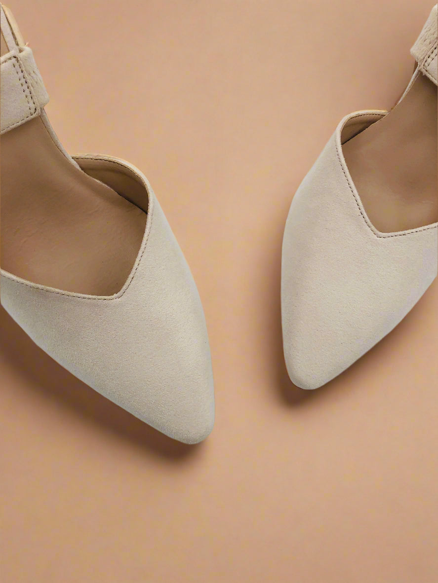 ميولز باللون البيج بكعب مدبب وبكلة مرصعة بأحجار الراين