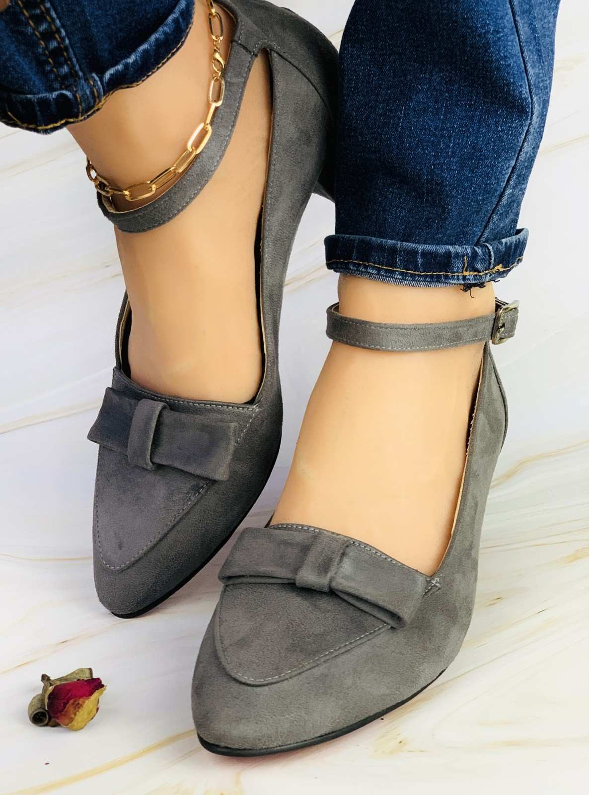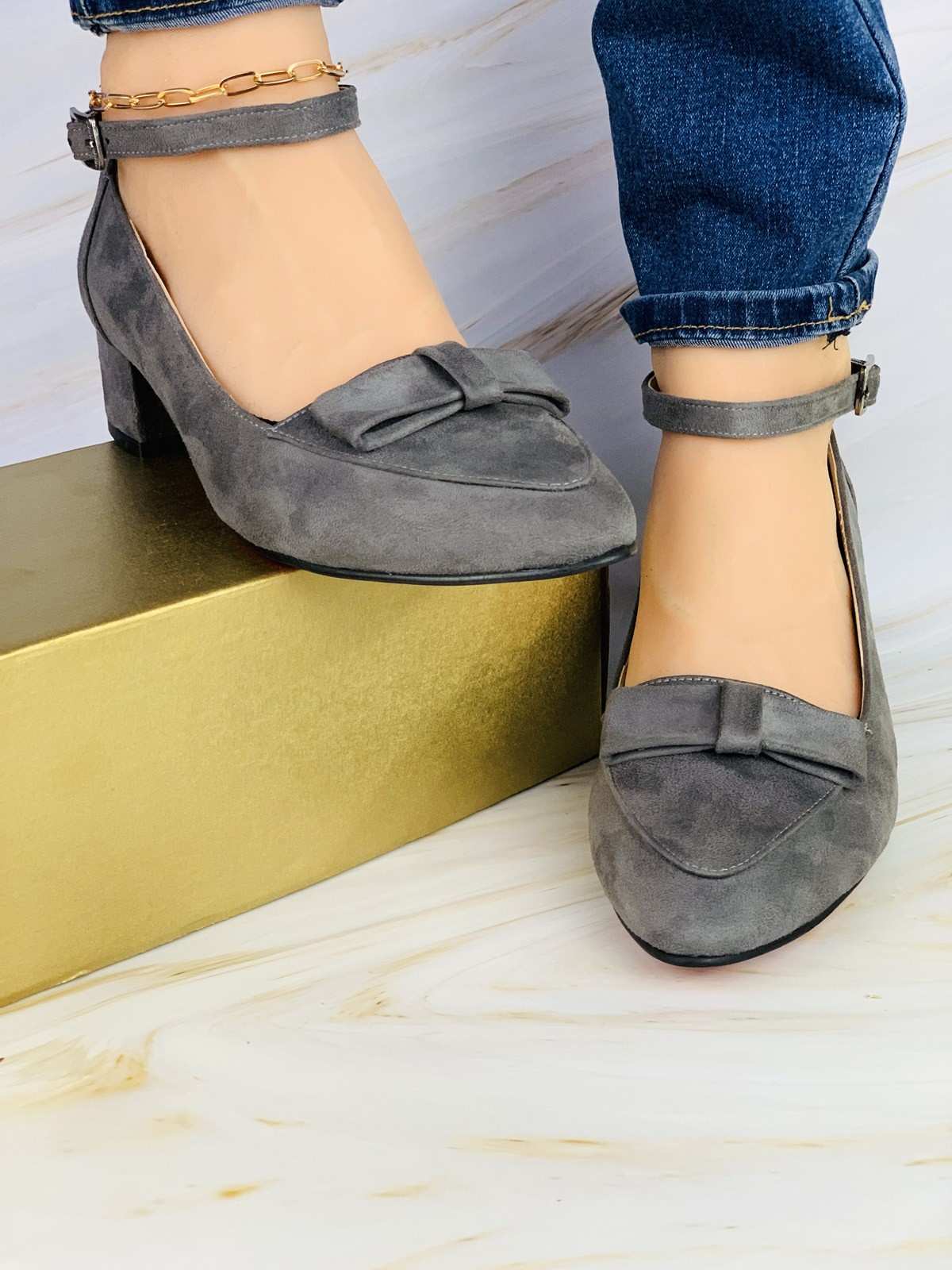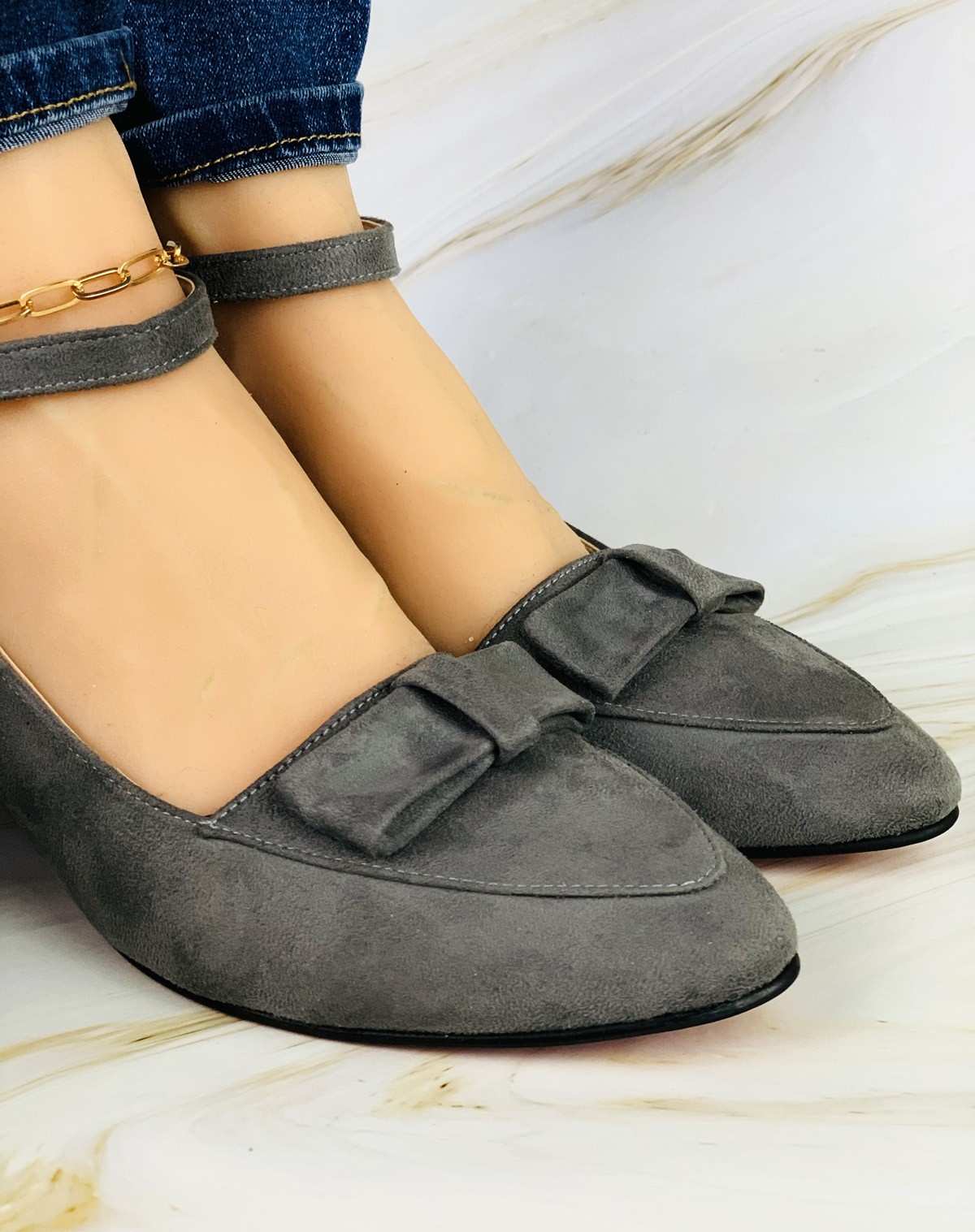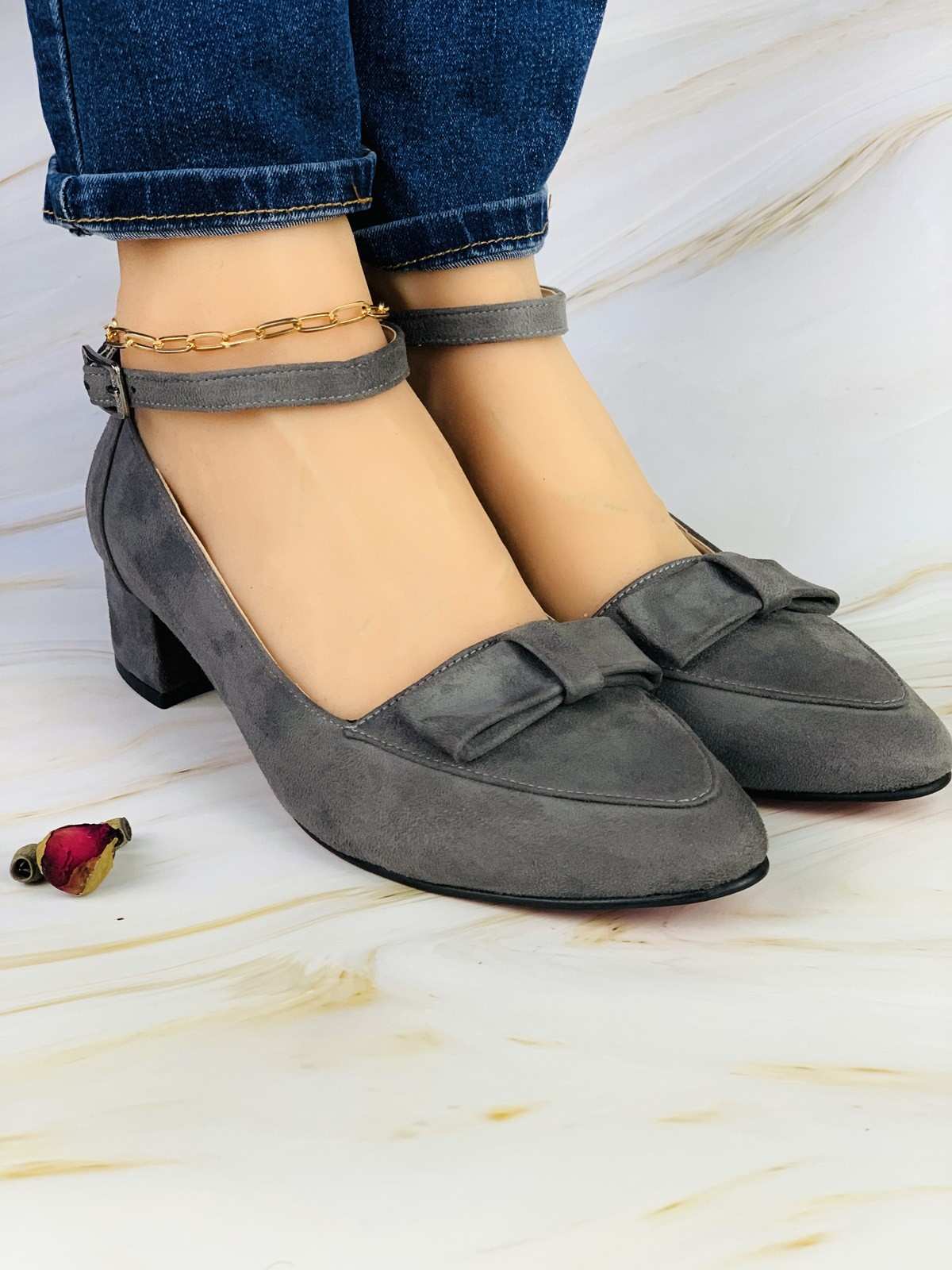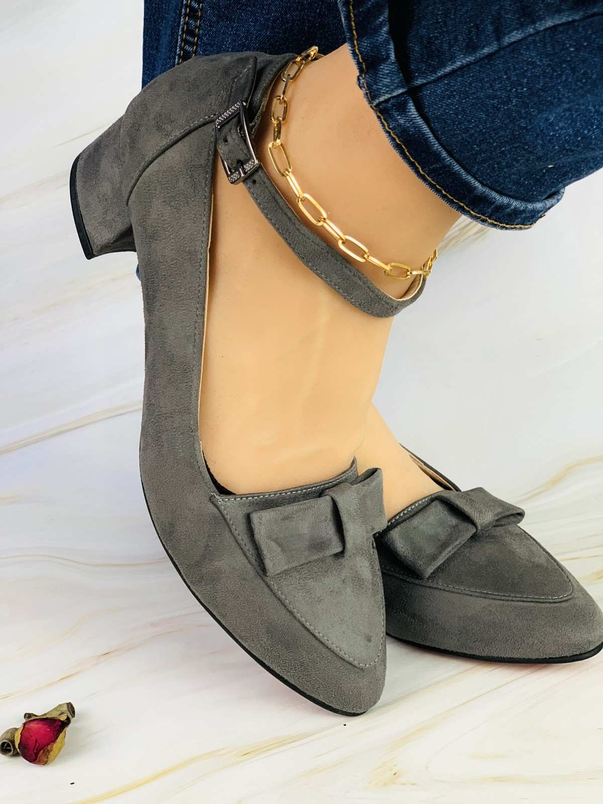 حذاء نسائي مخملي رمادي مريح، كعب متوسط طبي