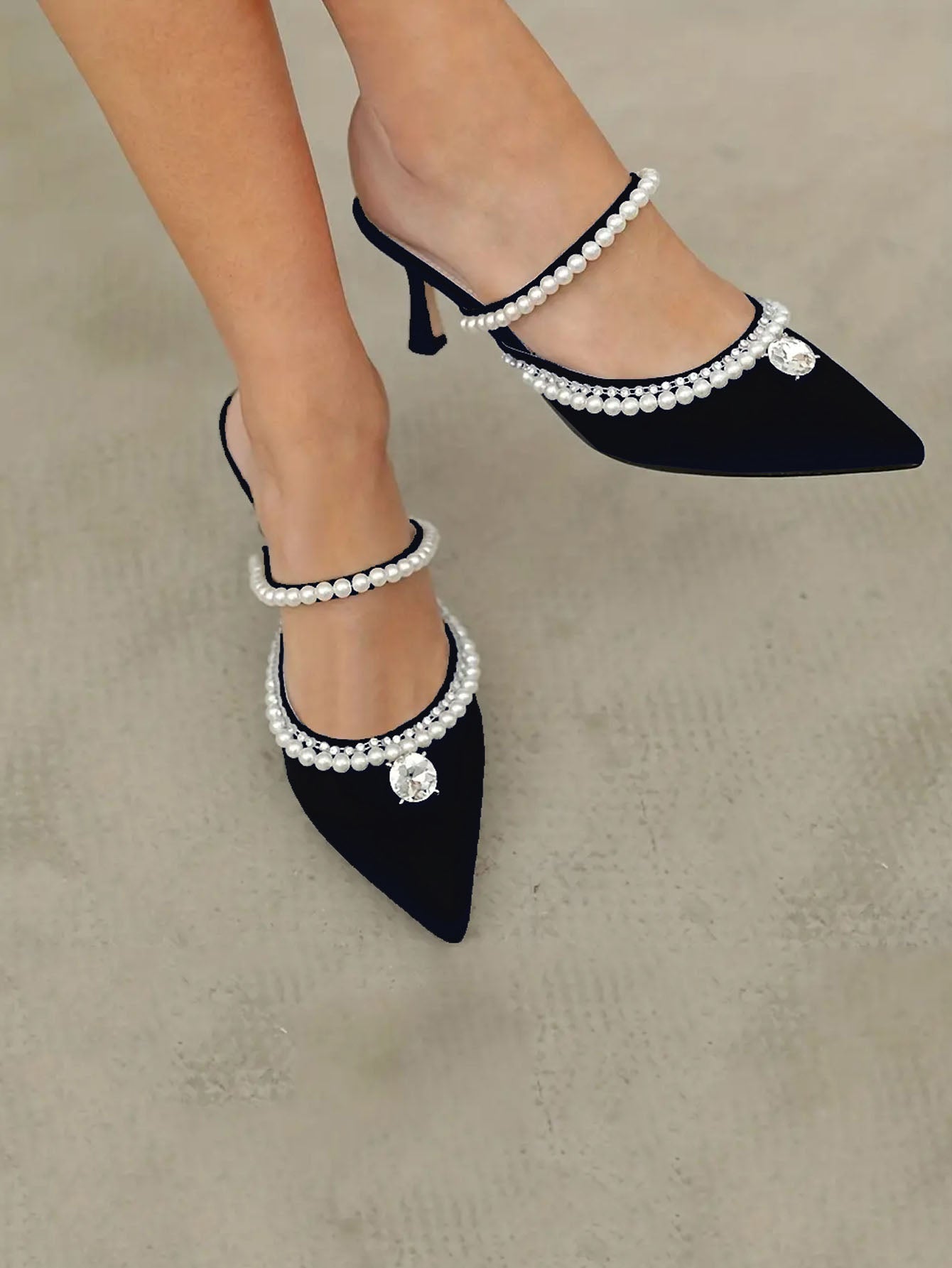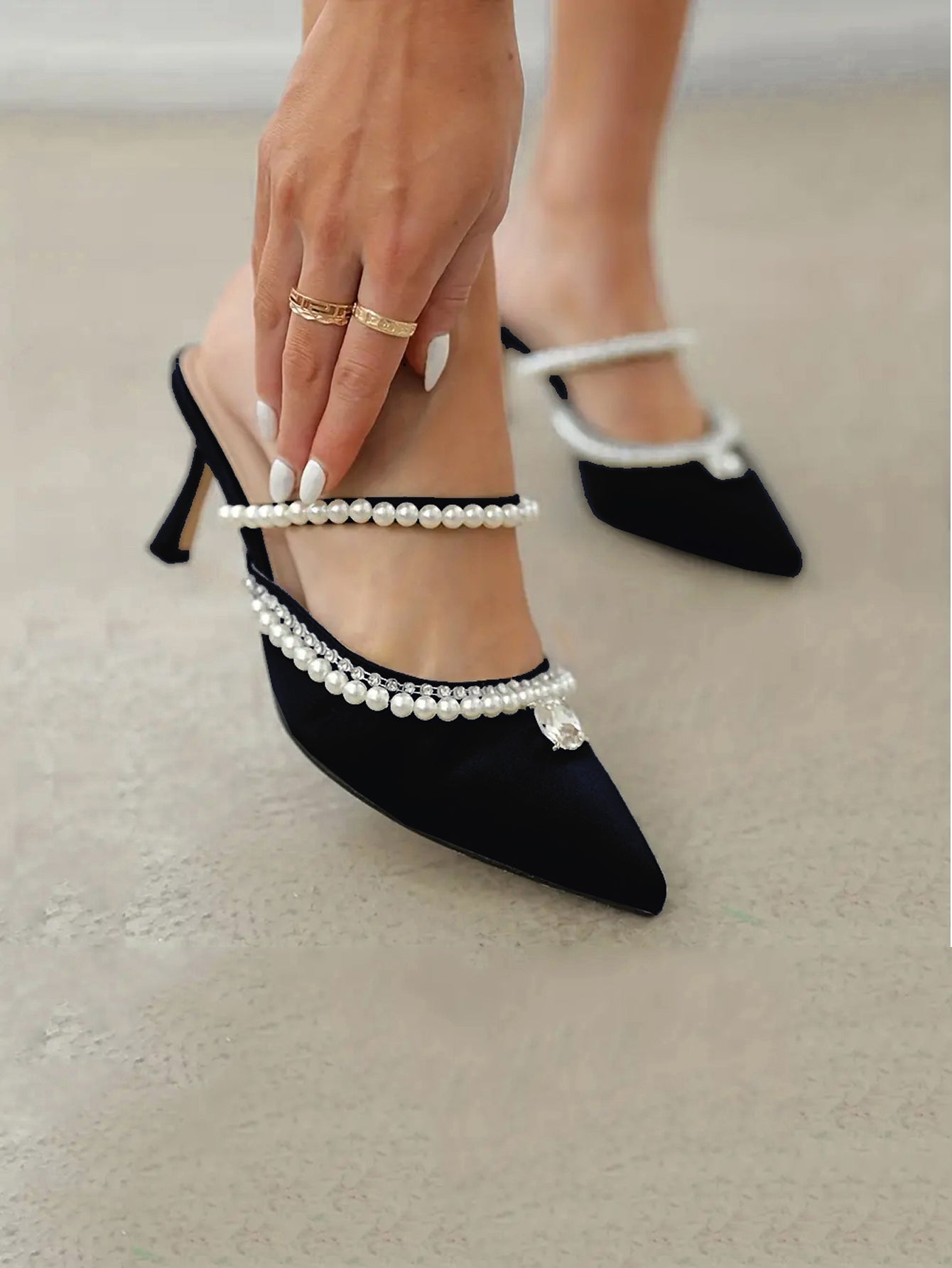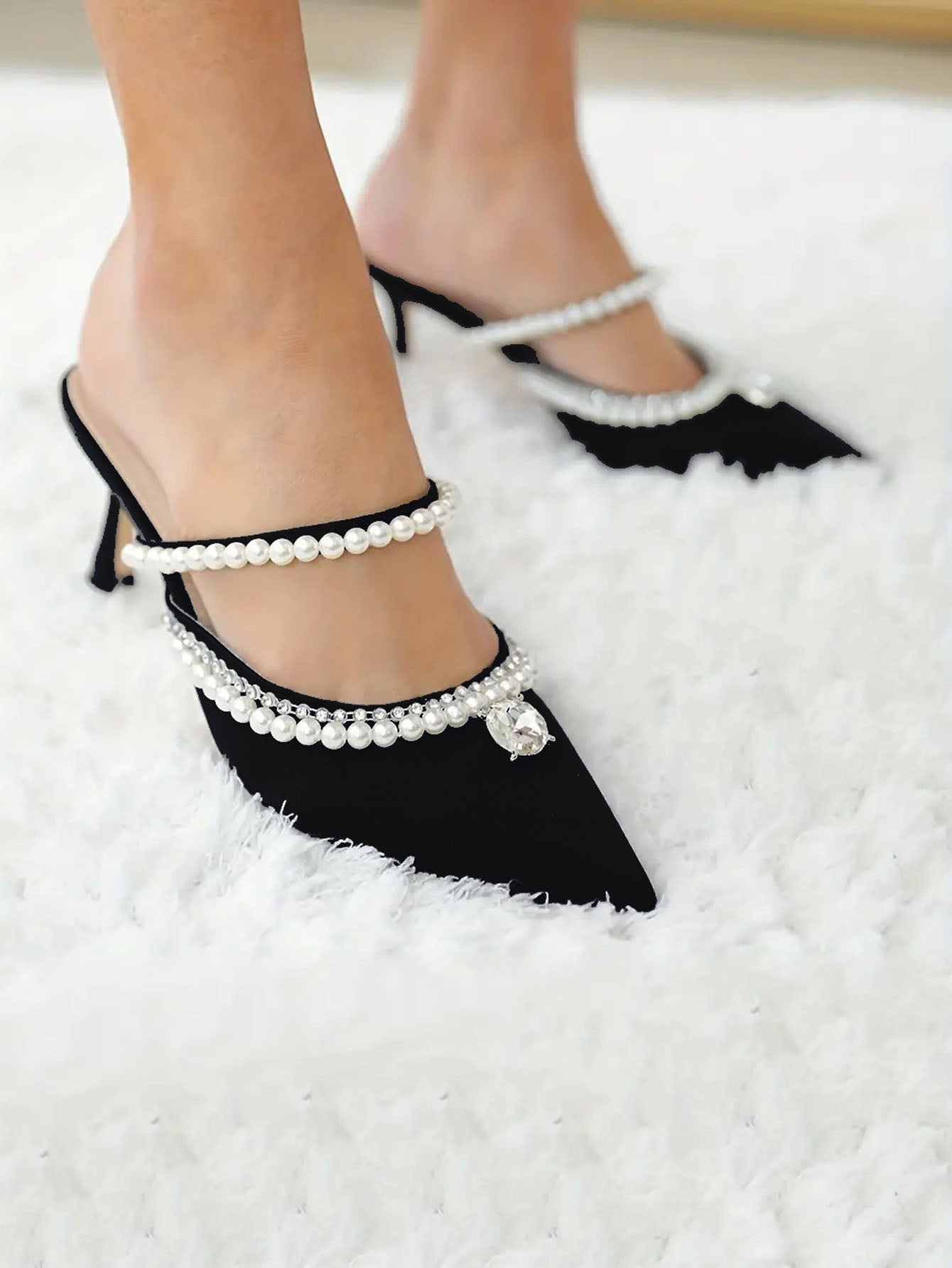 ميولز مدببة مع تفاصيل لؤلؤية - أسود