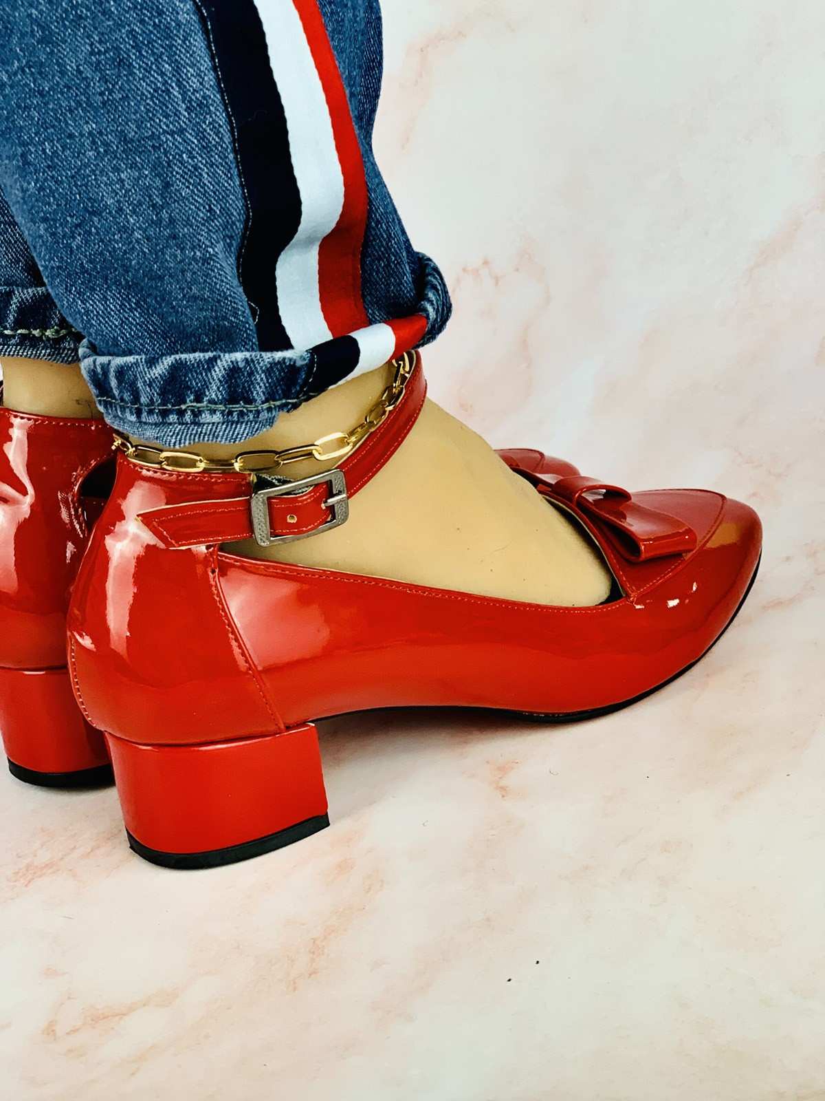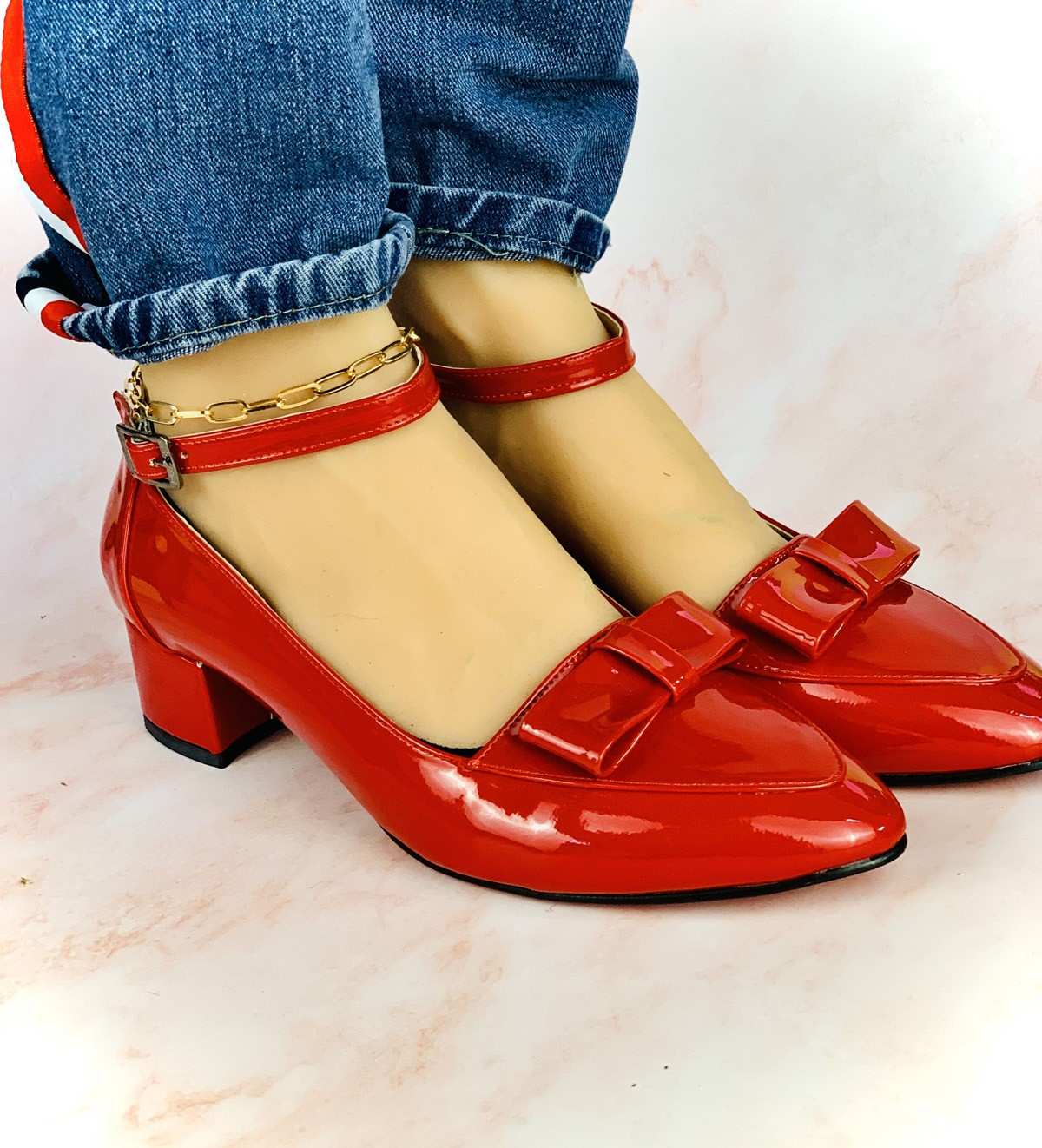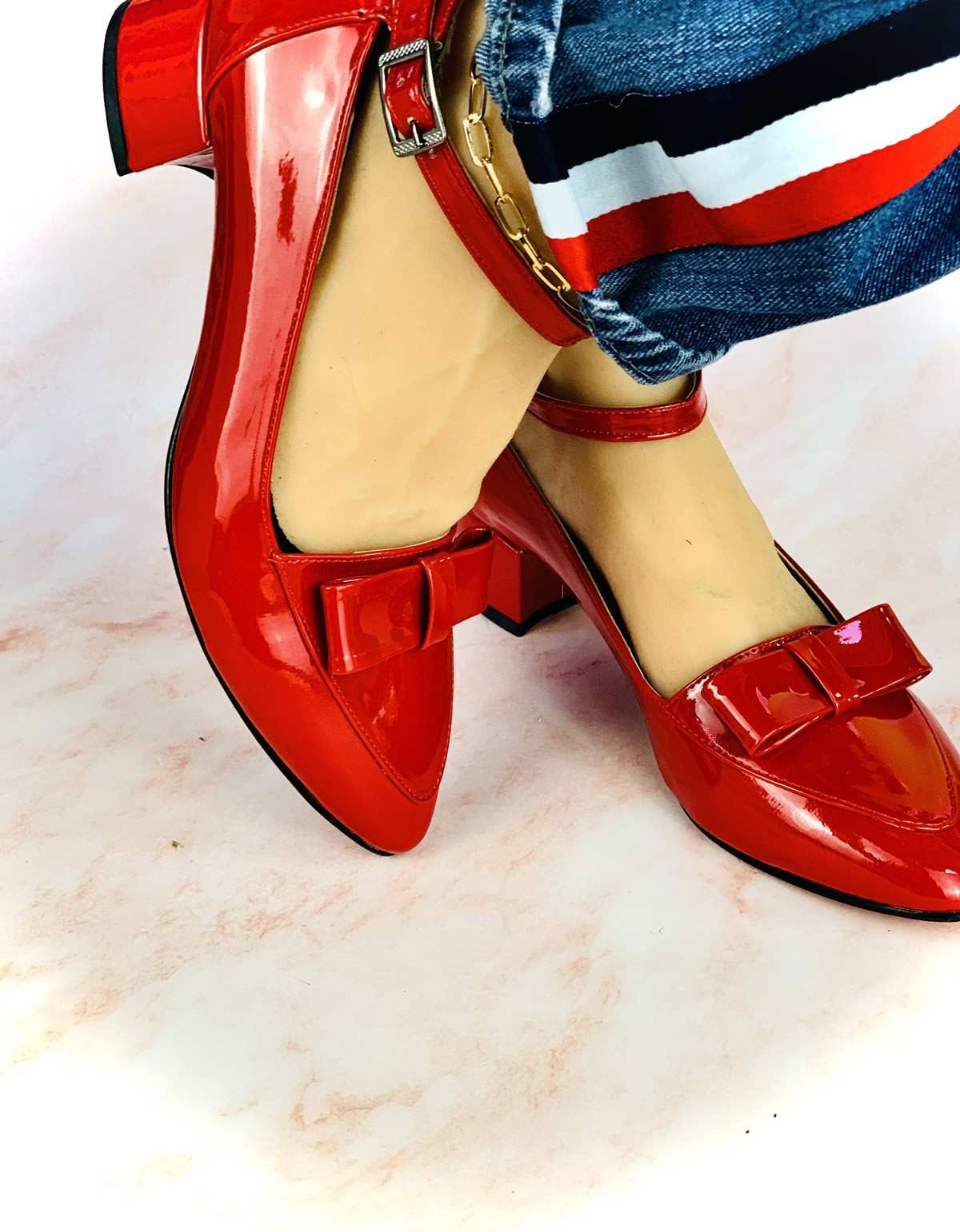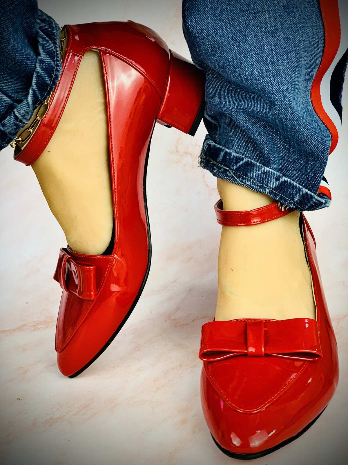 حذاء طبي نسائي مريح أحمر بكعب متوسط