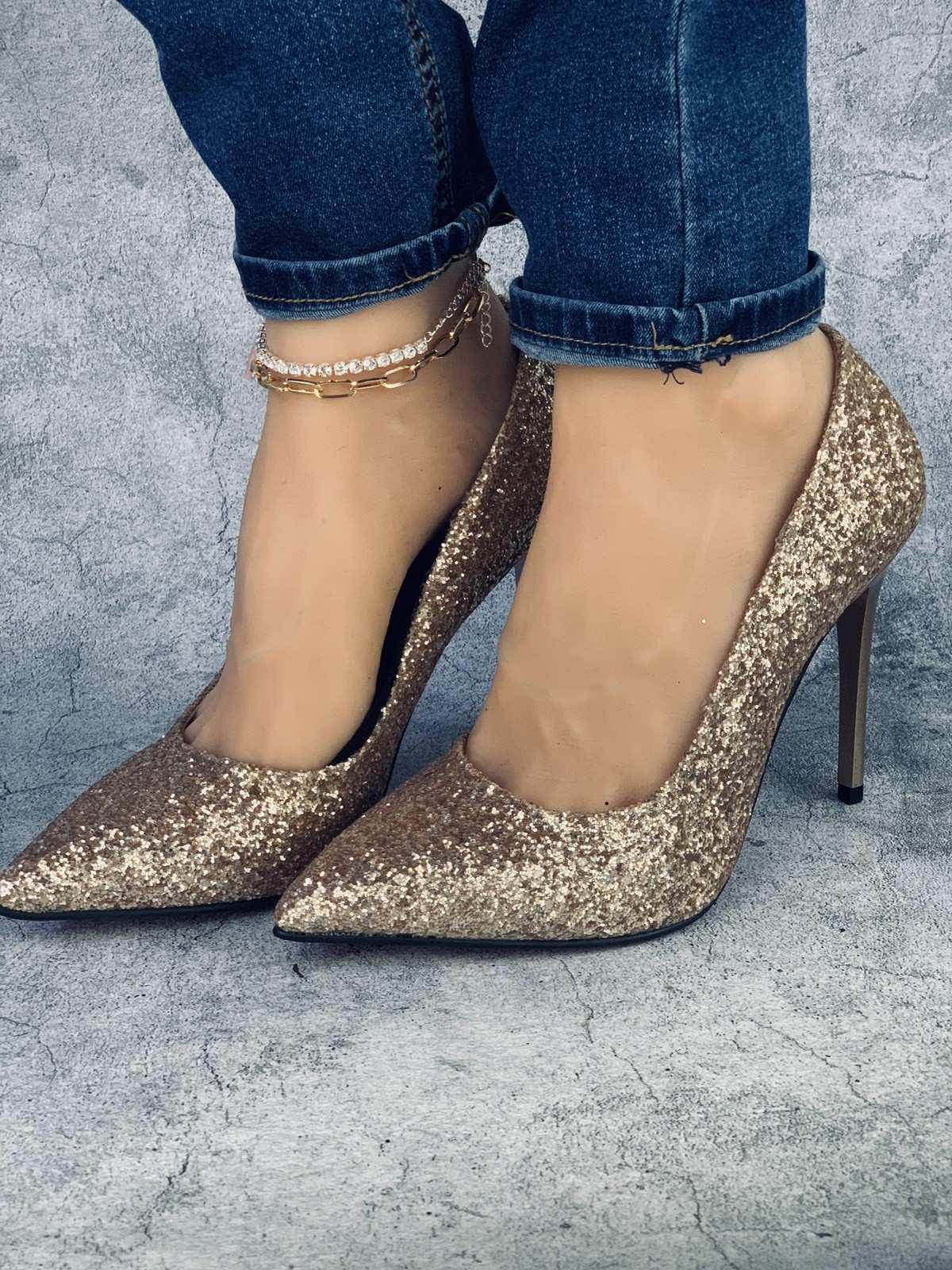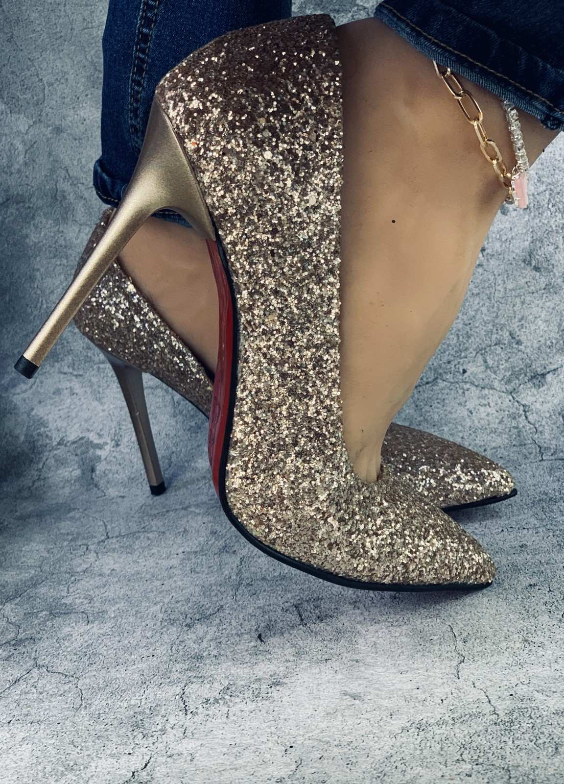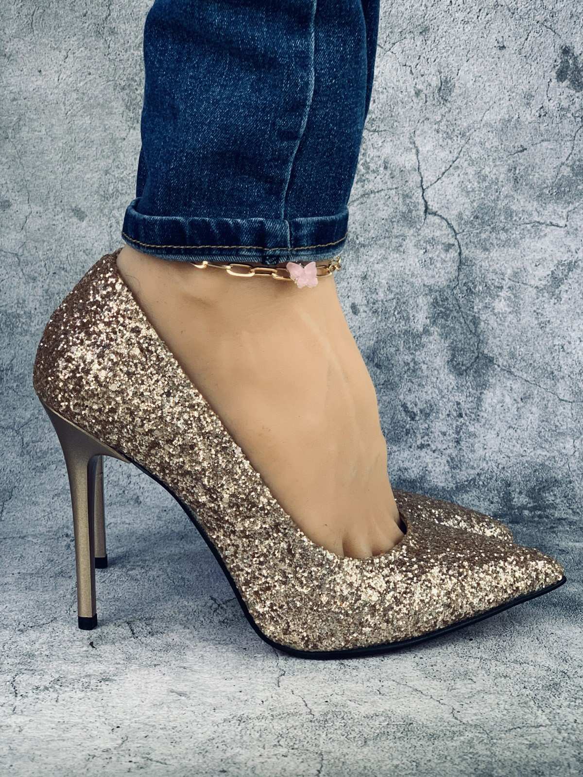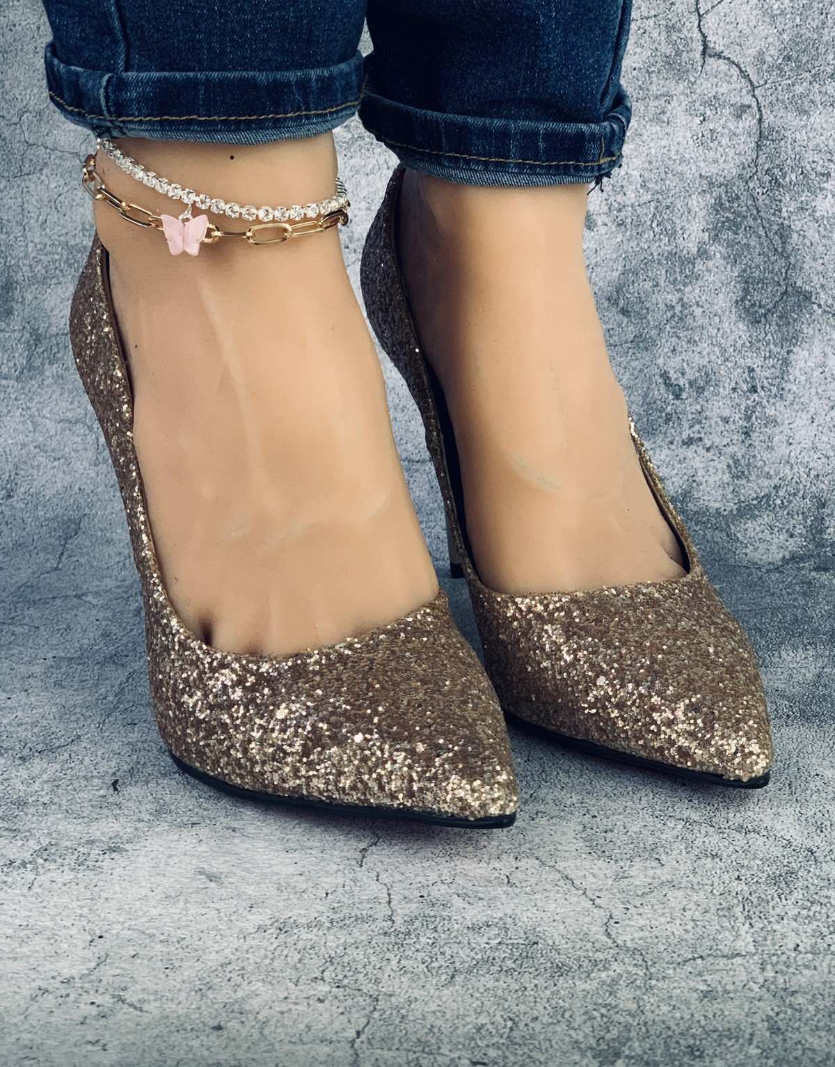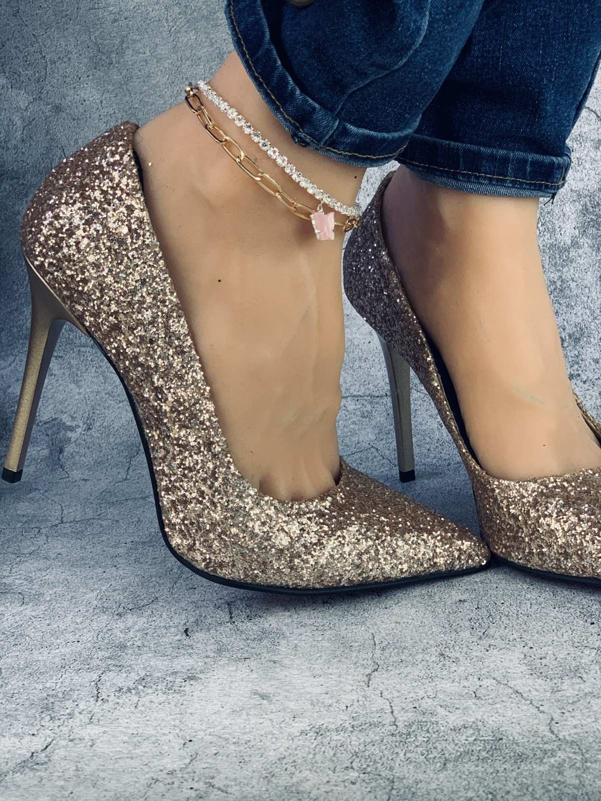 حذاء نسائي للمناسبات بكعب عالي ذهبي داكن لامع