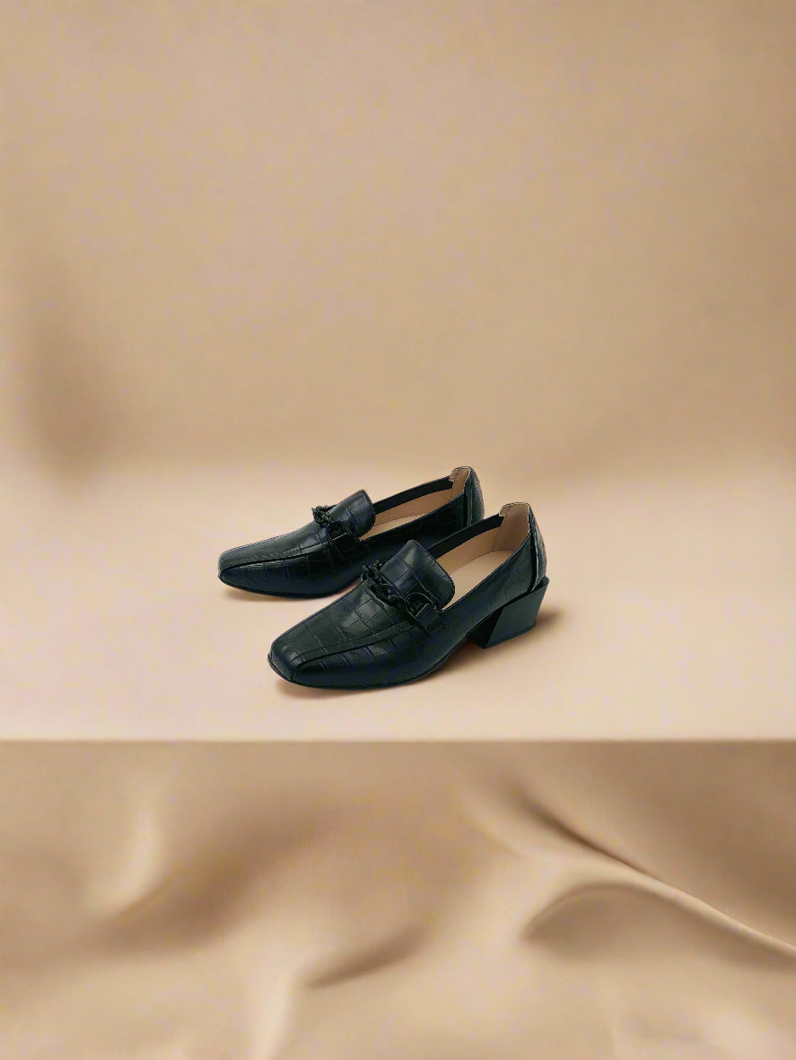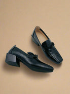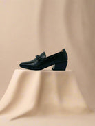 حذاء لوفر كلاسيكي ذو كعب للنساء - أسود
