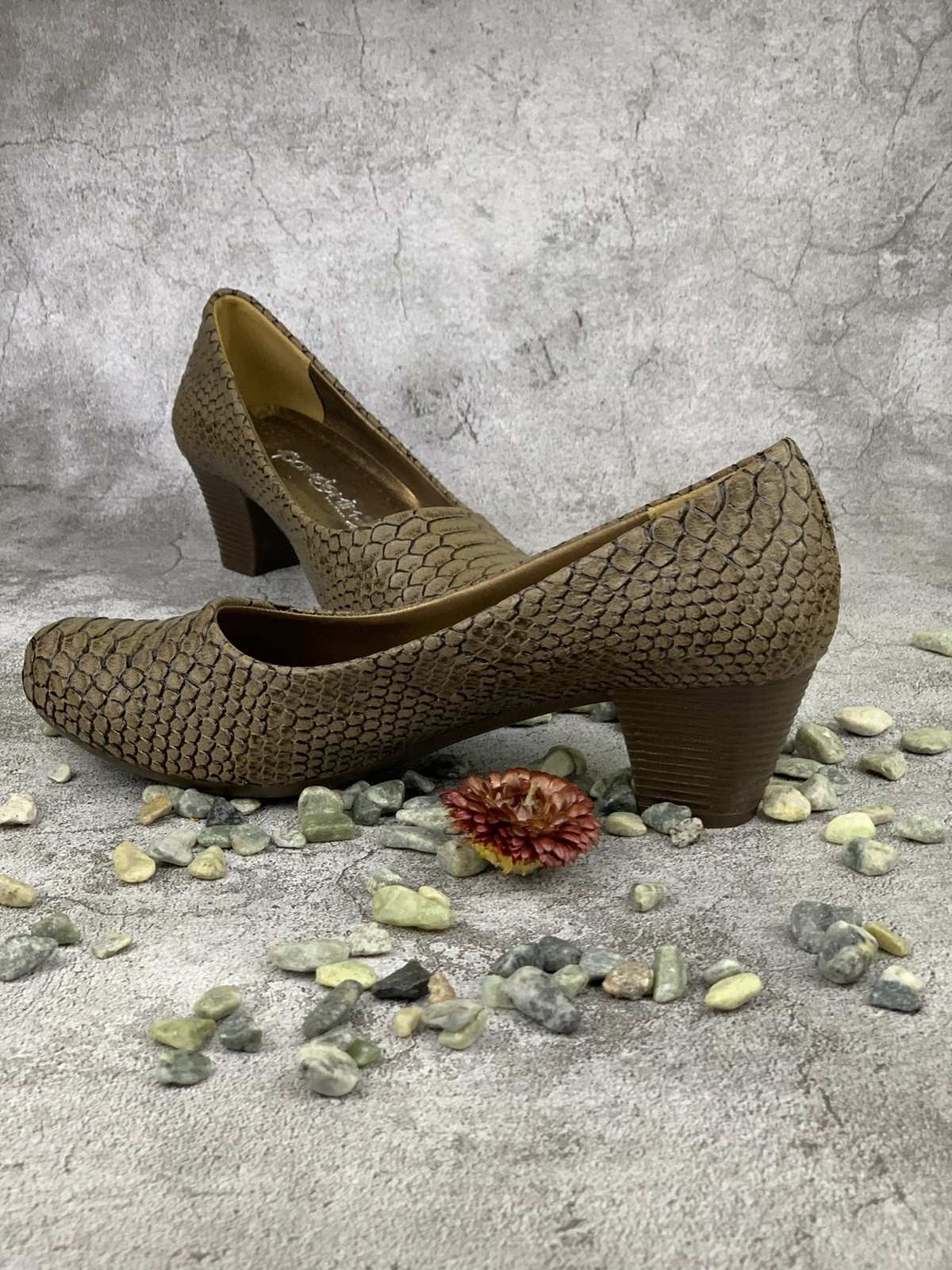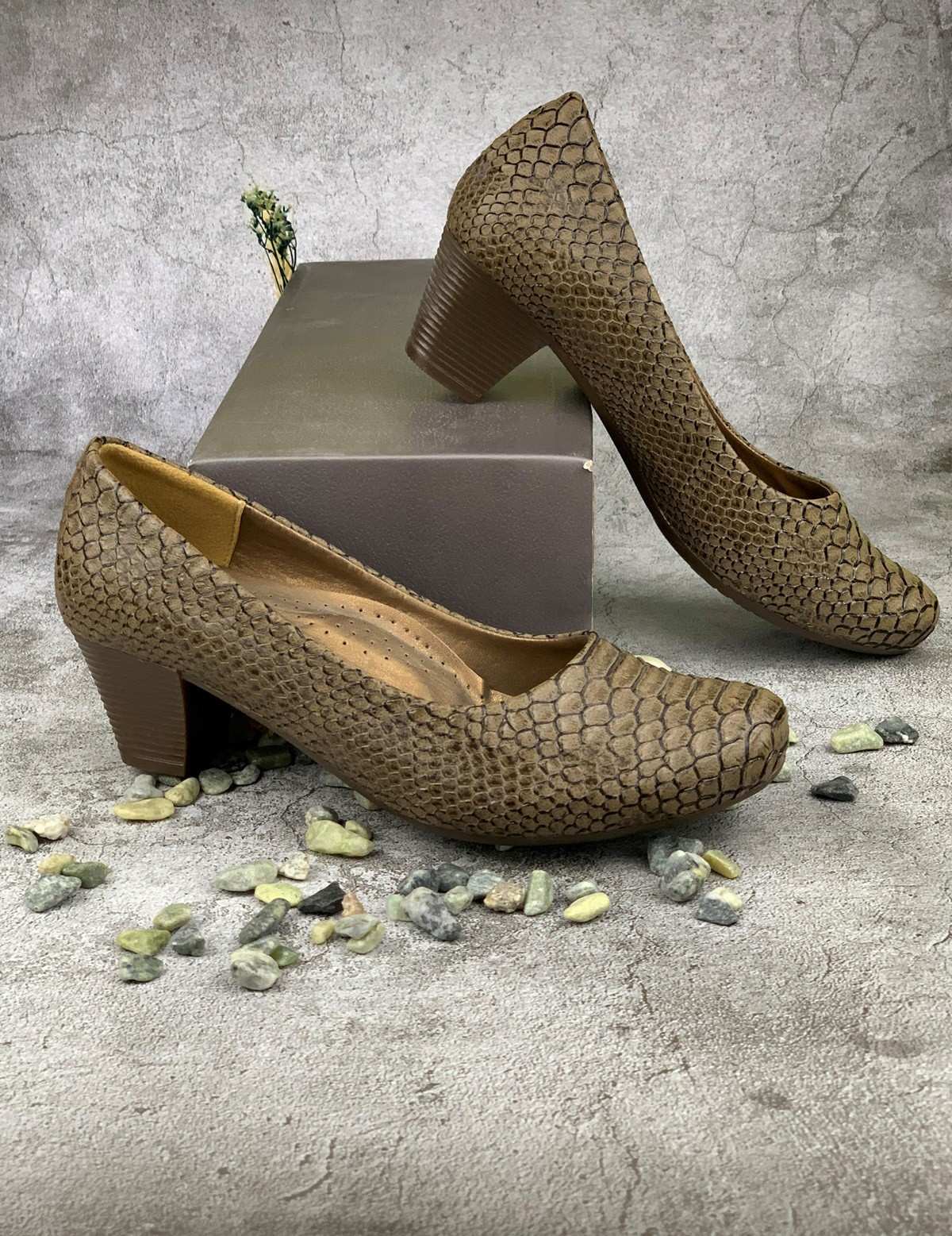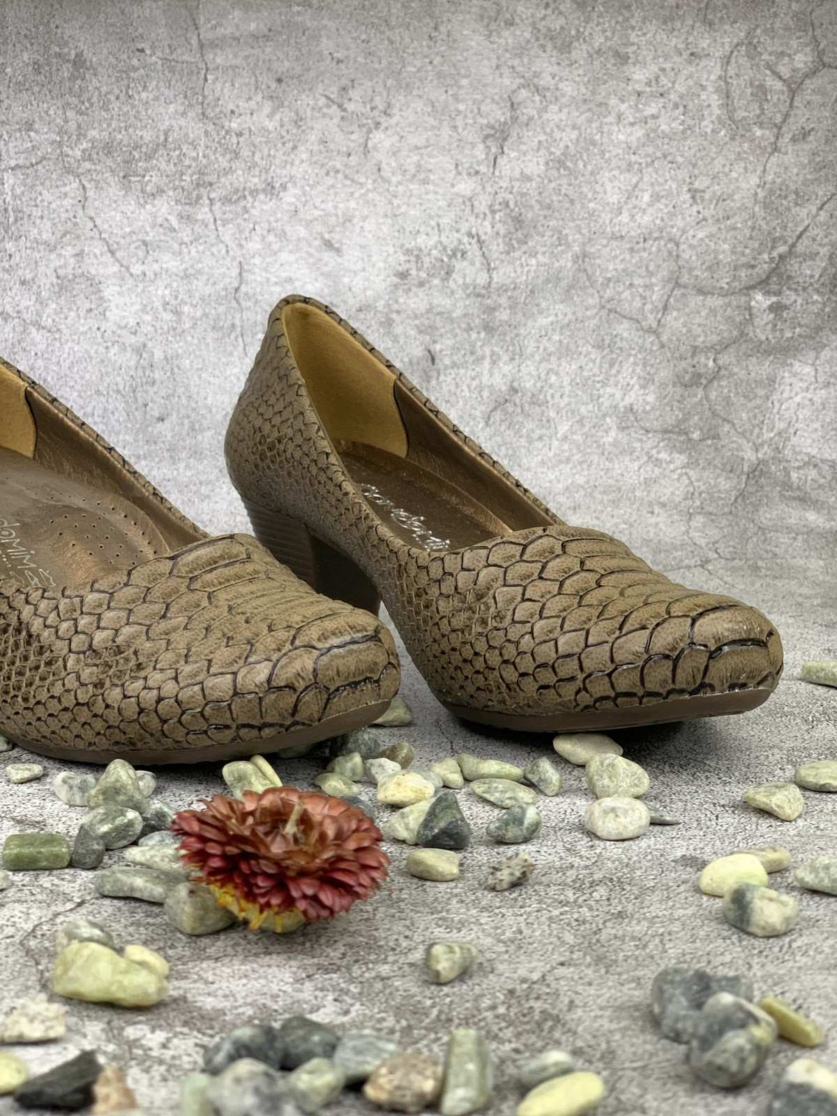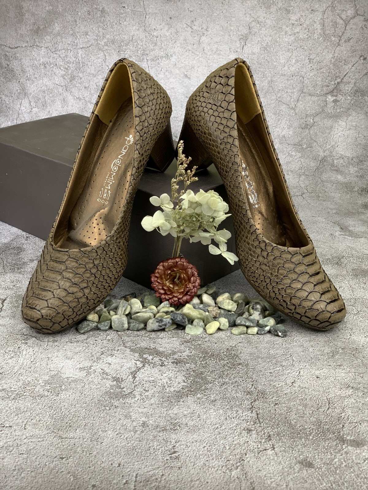 حذاء طبي مريح بكعب عالي مصنوع من جلد الثعبان باللون البني للنساء