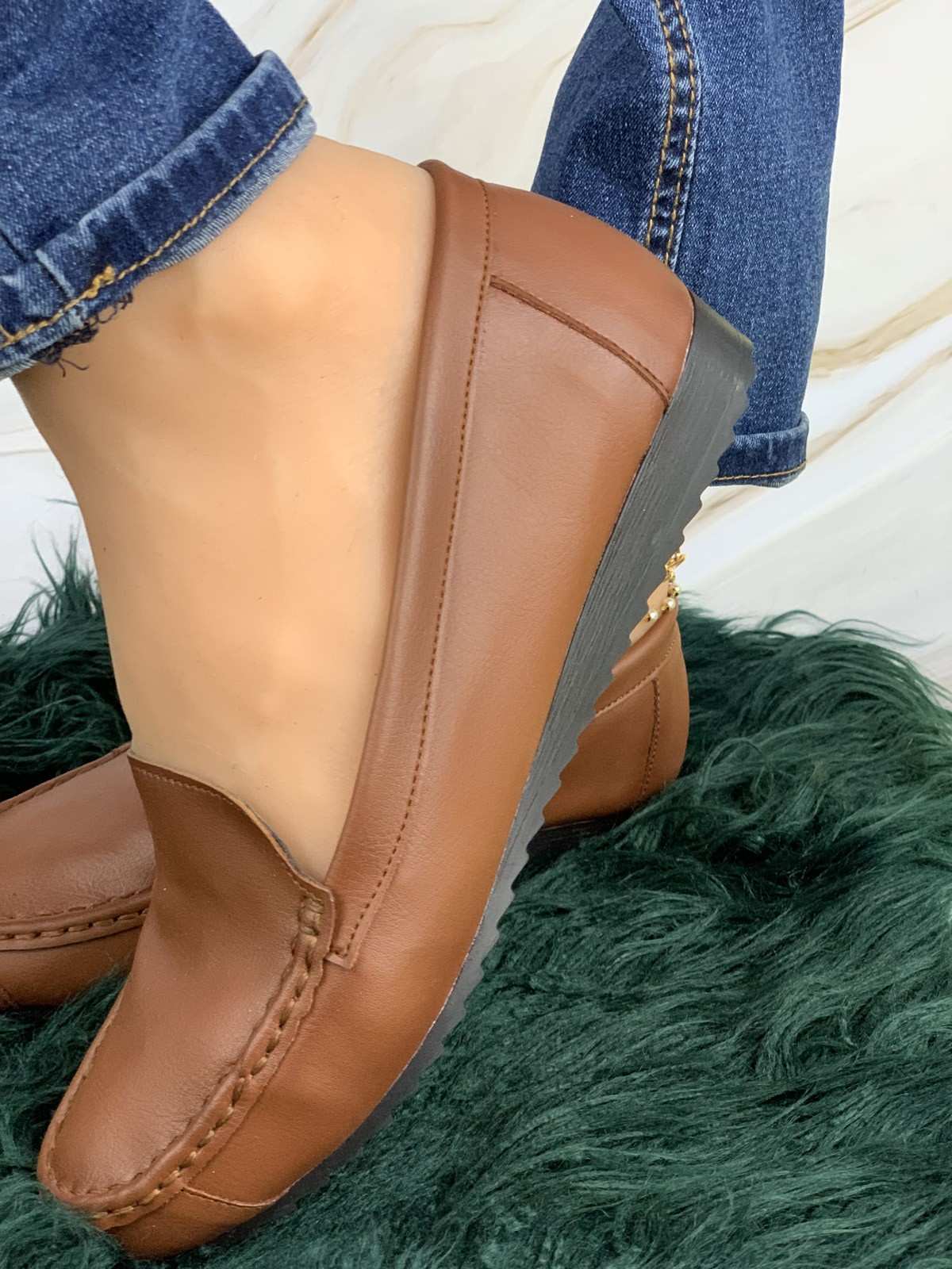 حذاء تركي من الجلد الطبيعي بنعل طبي مع بقعة سيليكون لراحة الكعب وتنفس مريح