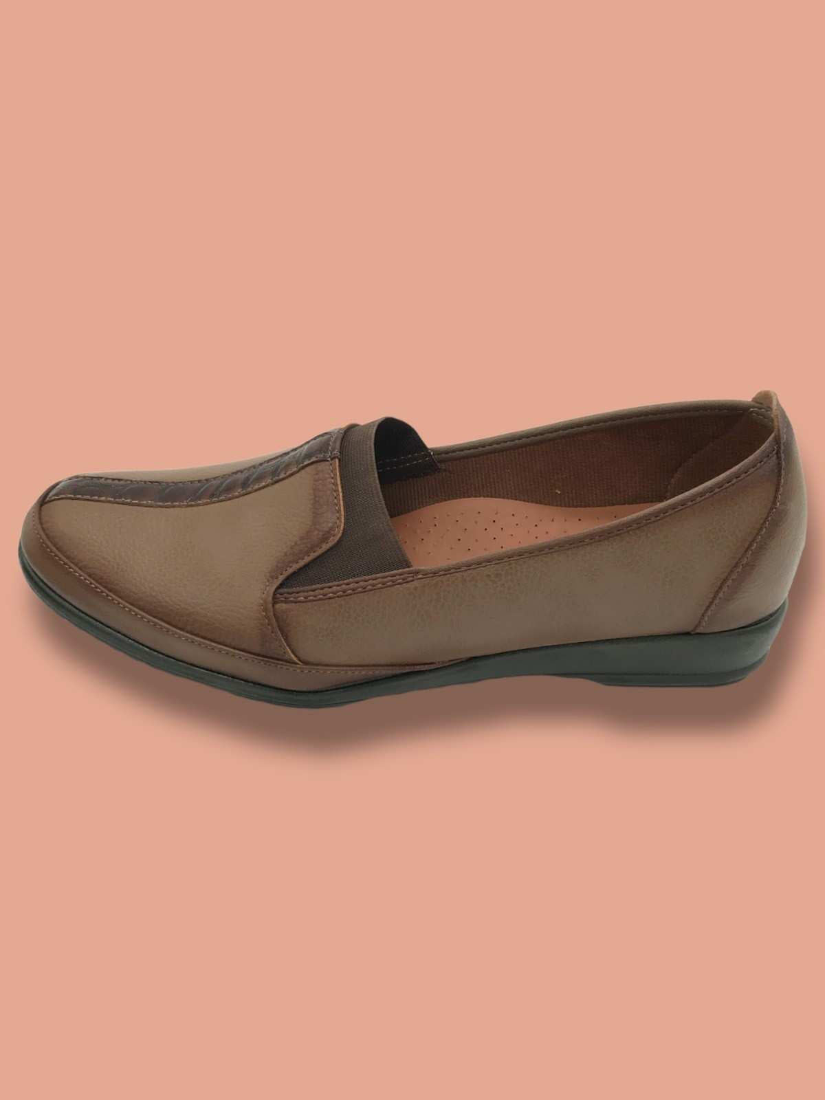 حذاء نسائي مريح بني فاتح بحزام جلد في المنتصف، كعب طبي متوسط