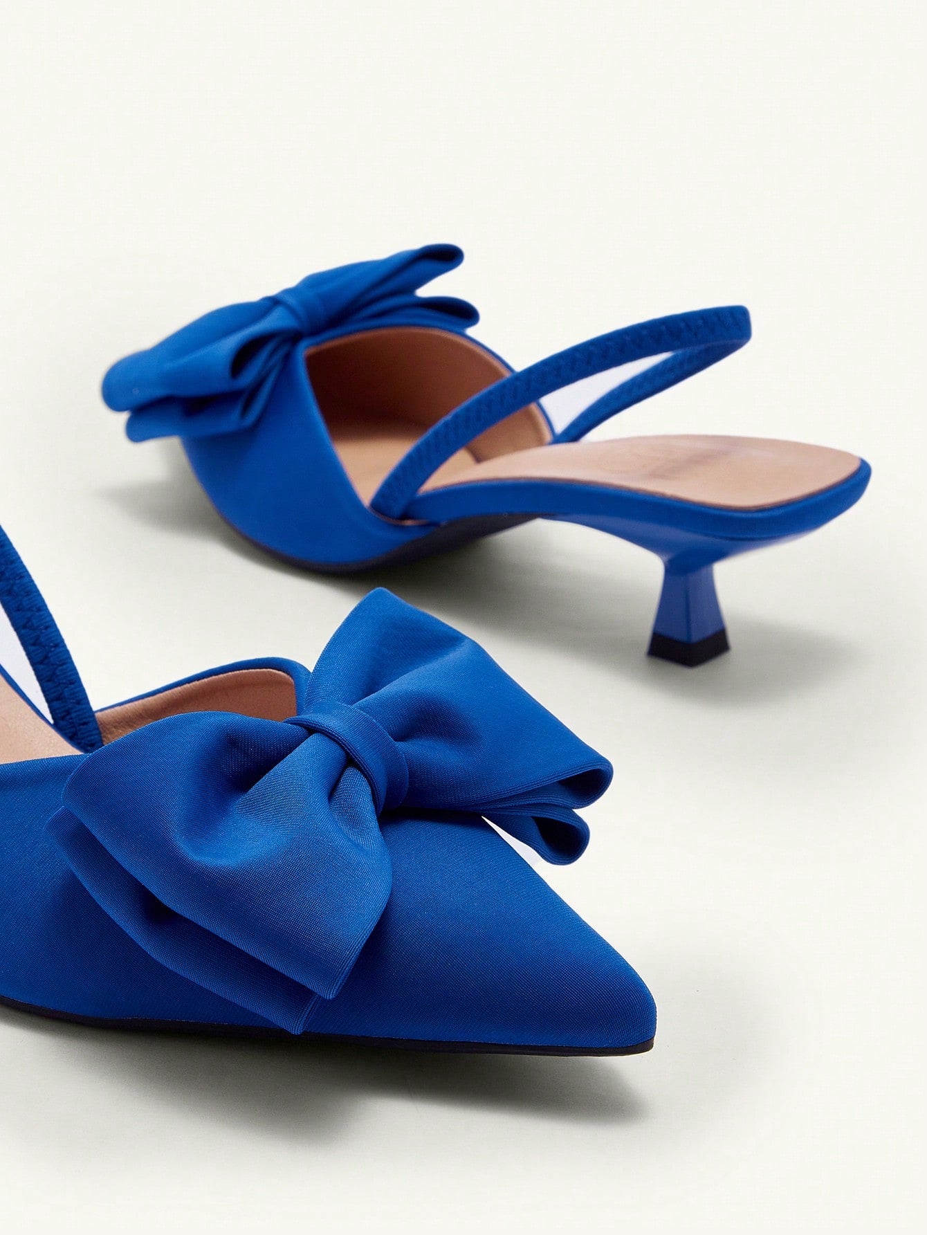 women CUCCOO CHICEST Women's Pointed Toe Kitten Heel High Heels With Bow Decor
