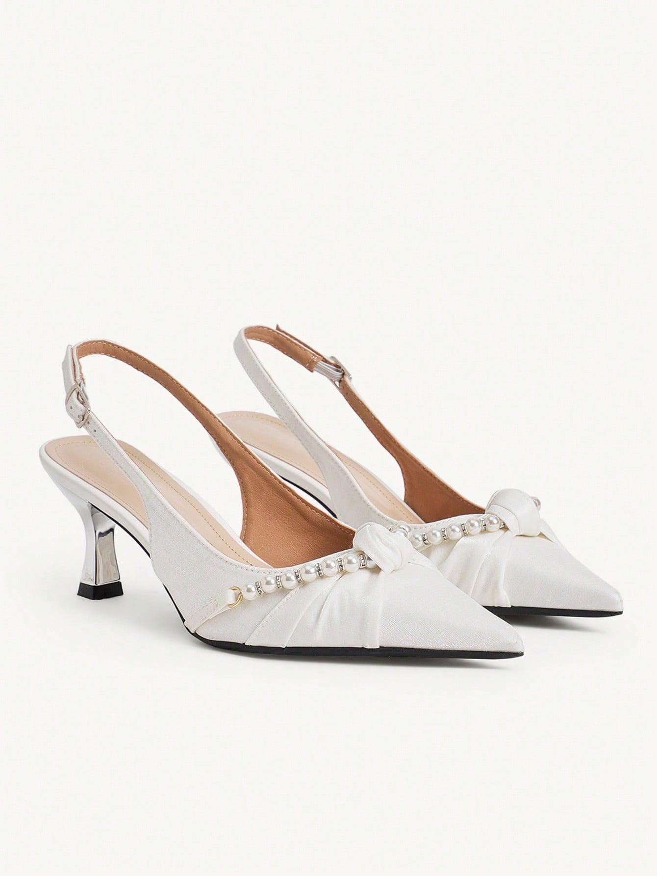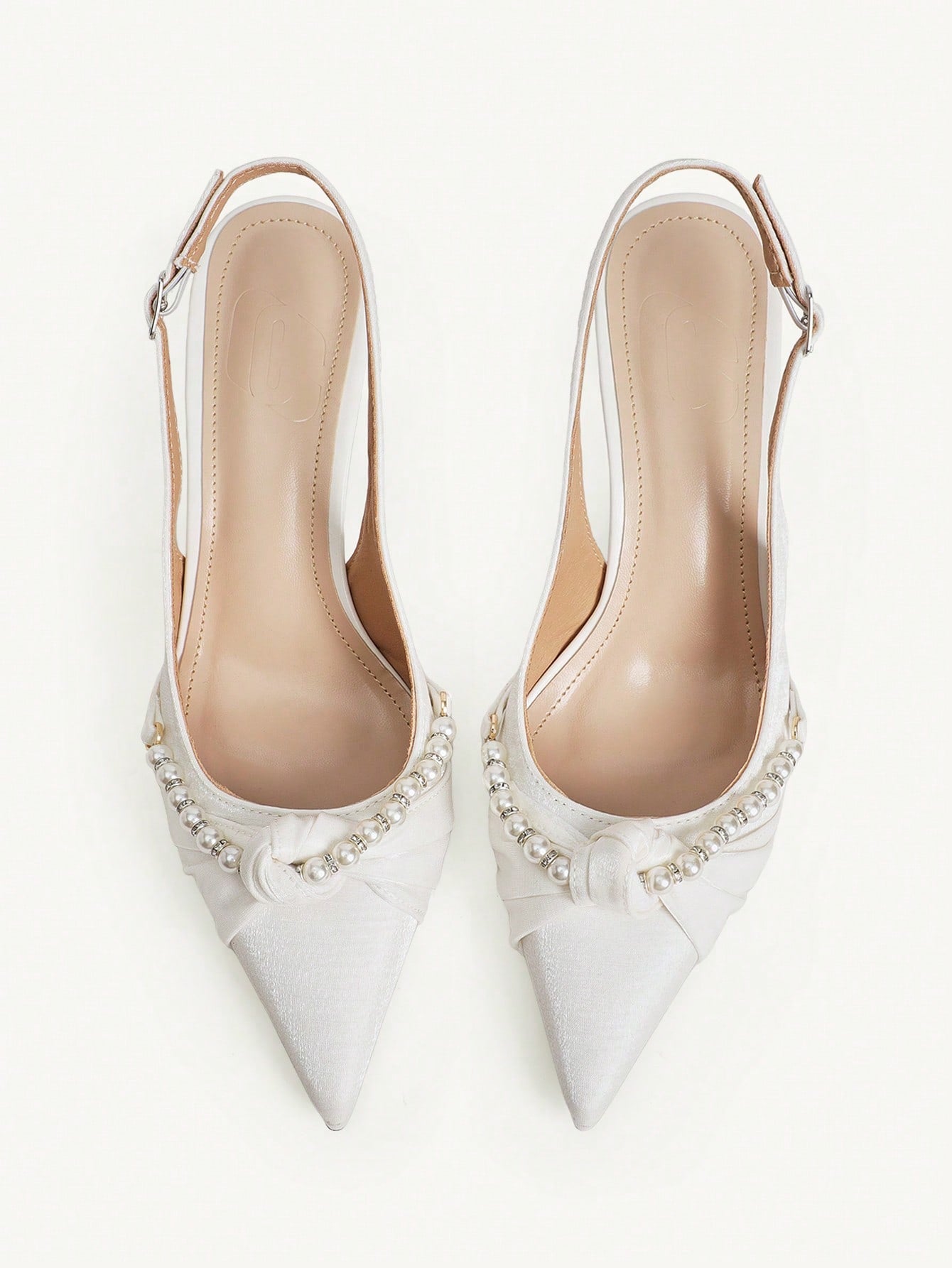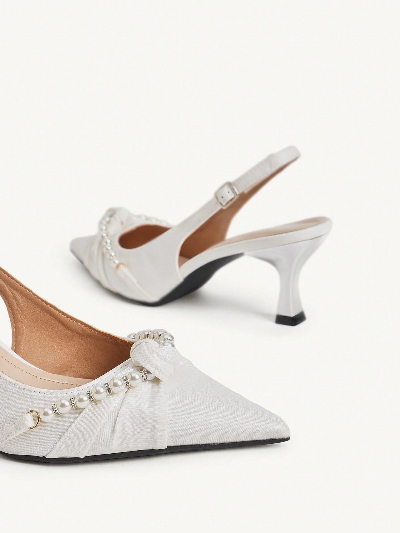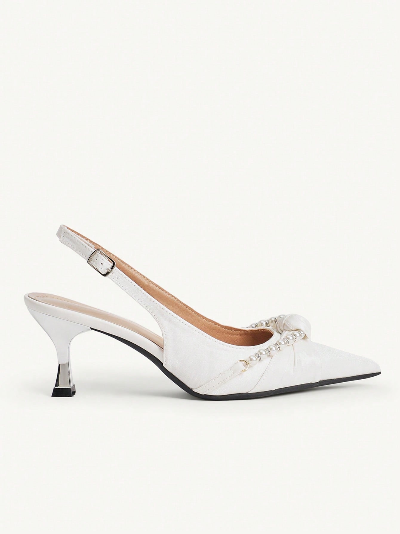 حذاء نسائي أنيق بكعب عالٍ مدبب بسيط مزين باللؤلؤ الصناعي من CUCCOO CHICEST