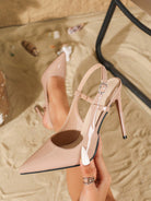 Fall/Winter 2025 11cm Pointed Toe Elegant Stiletto High Heels Pumps, Ankle Strap, PU Material, Apricot