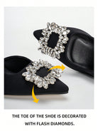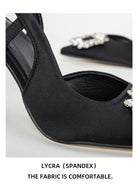 صنادل نسائية أنيقة باللون الأسود بكعب عالٍ ومقدمة مدببة مزينة بعقدة وأحجار الراين، مناسبة لعيد الحب