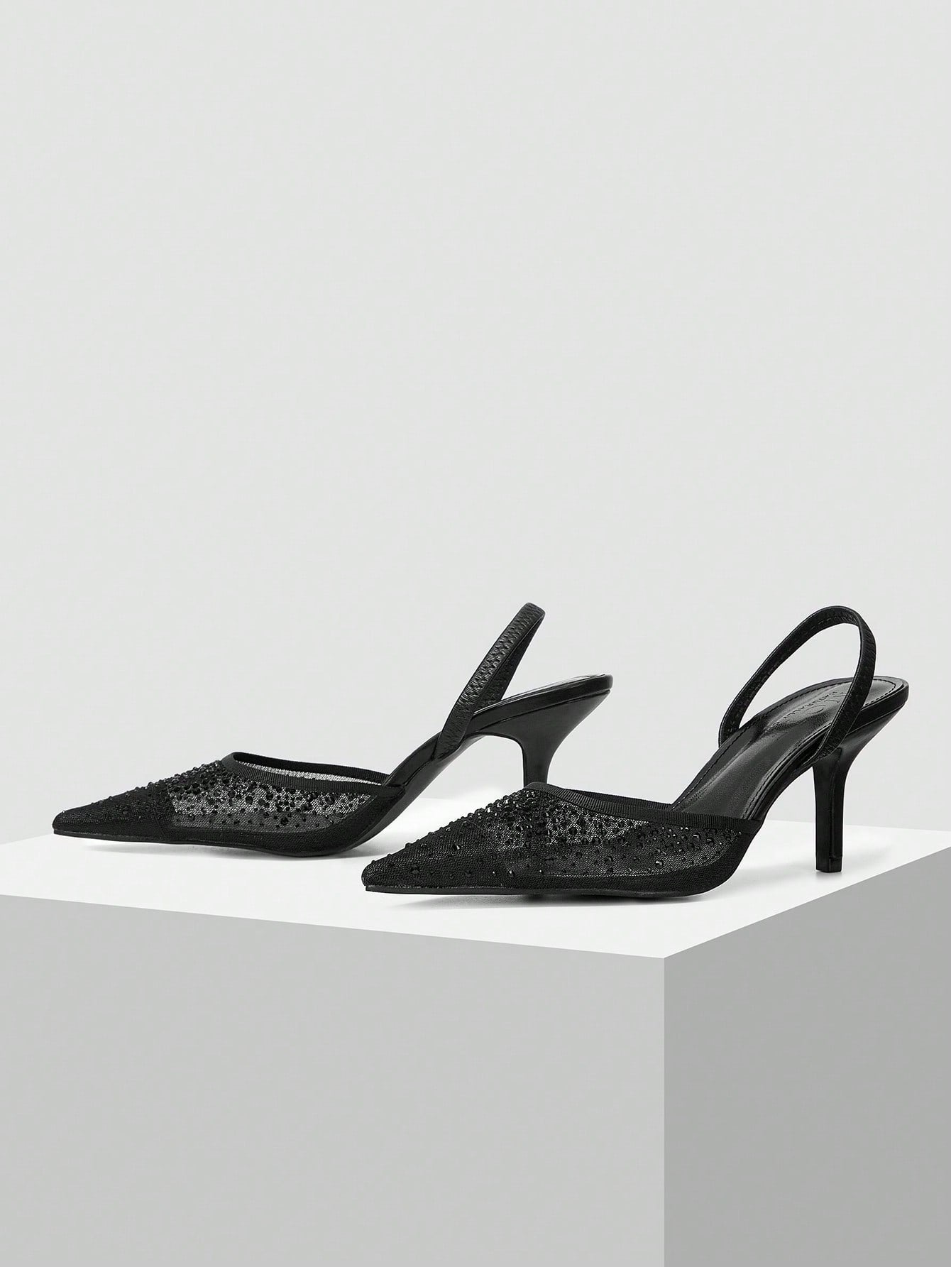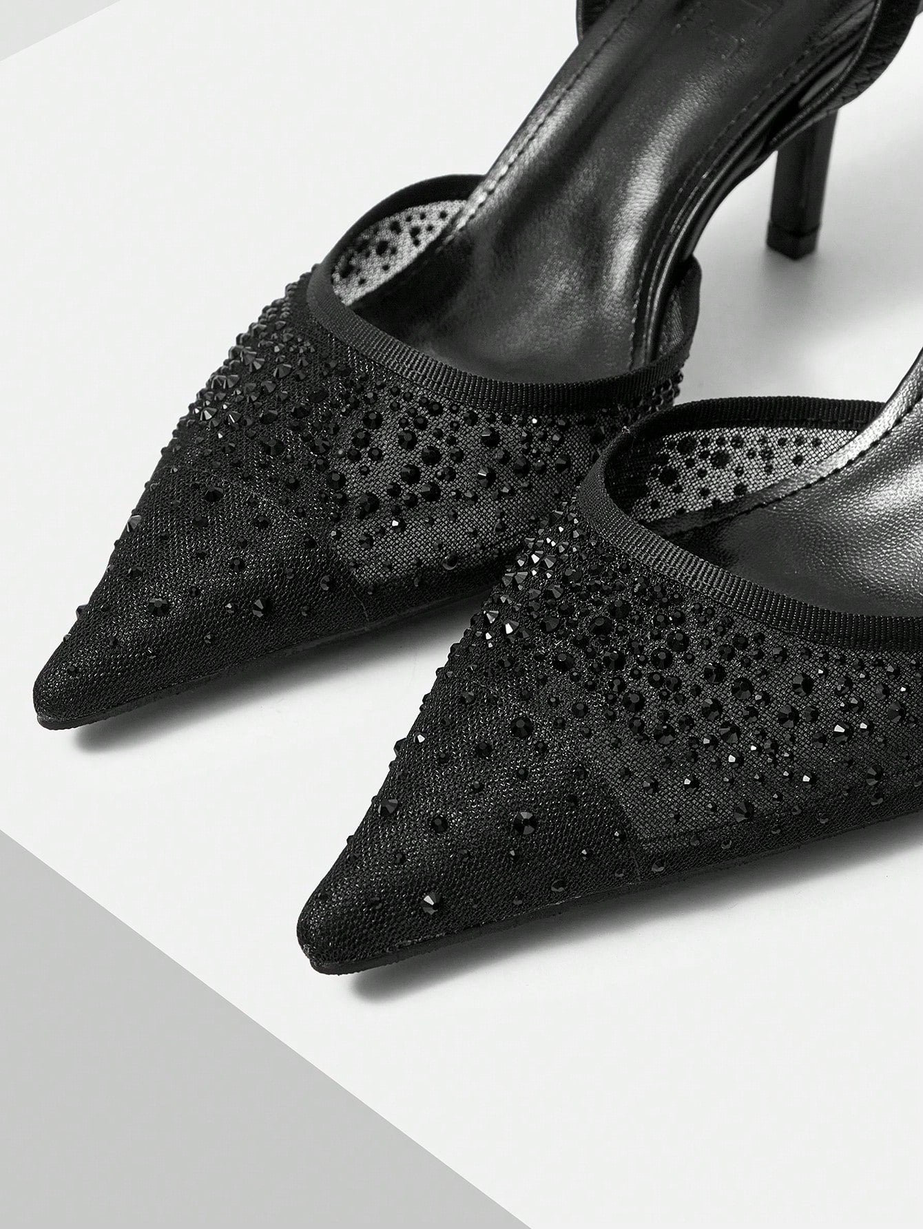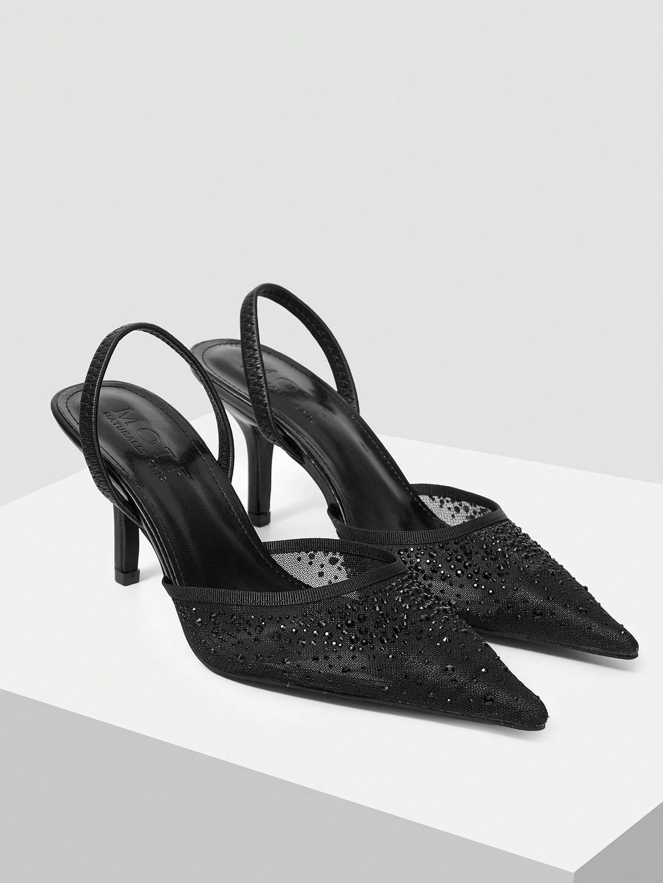 حذاء نسائي MOTF PREMIUM FASHION NET MESH RHINESTONE CUTOUTH STILETTO HEEL للحفلات المسائية