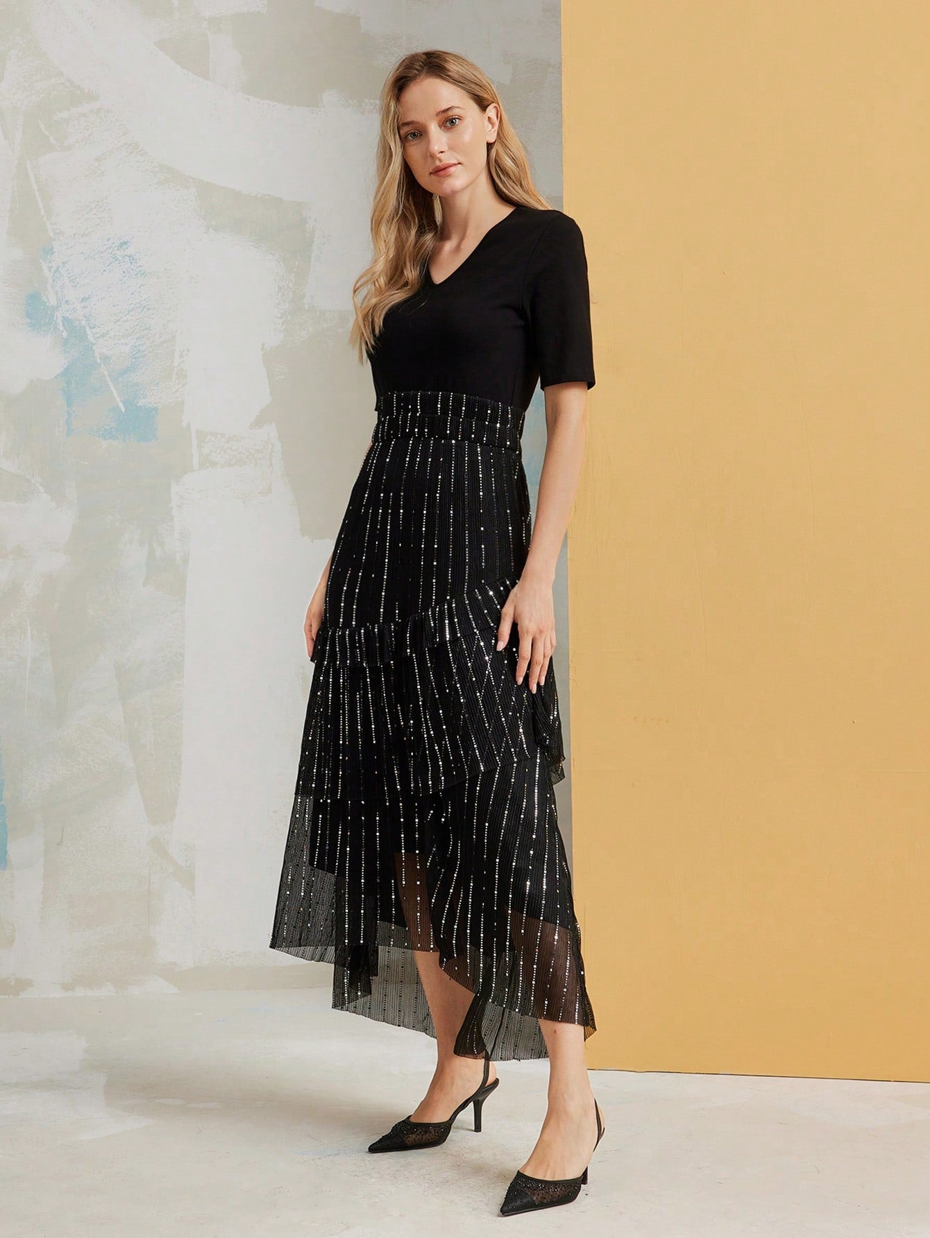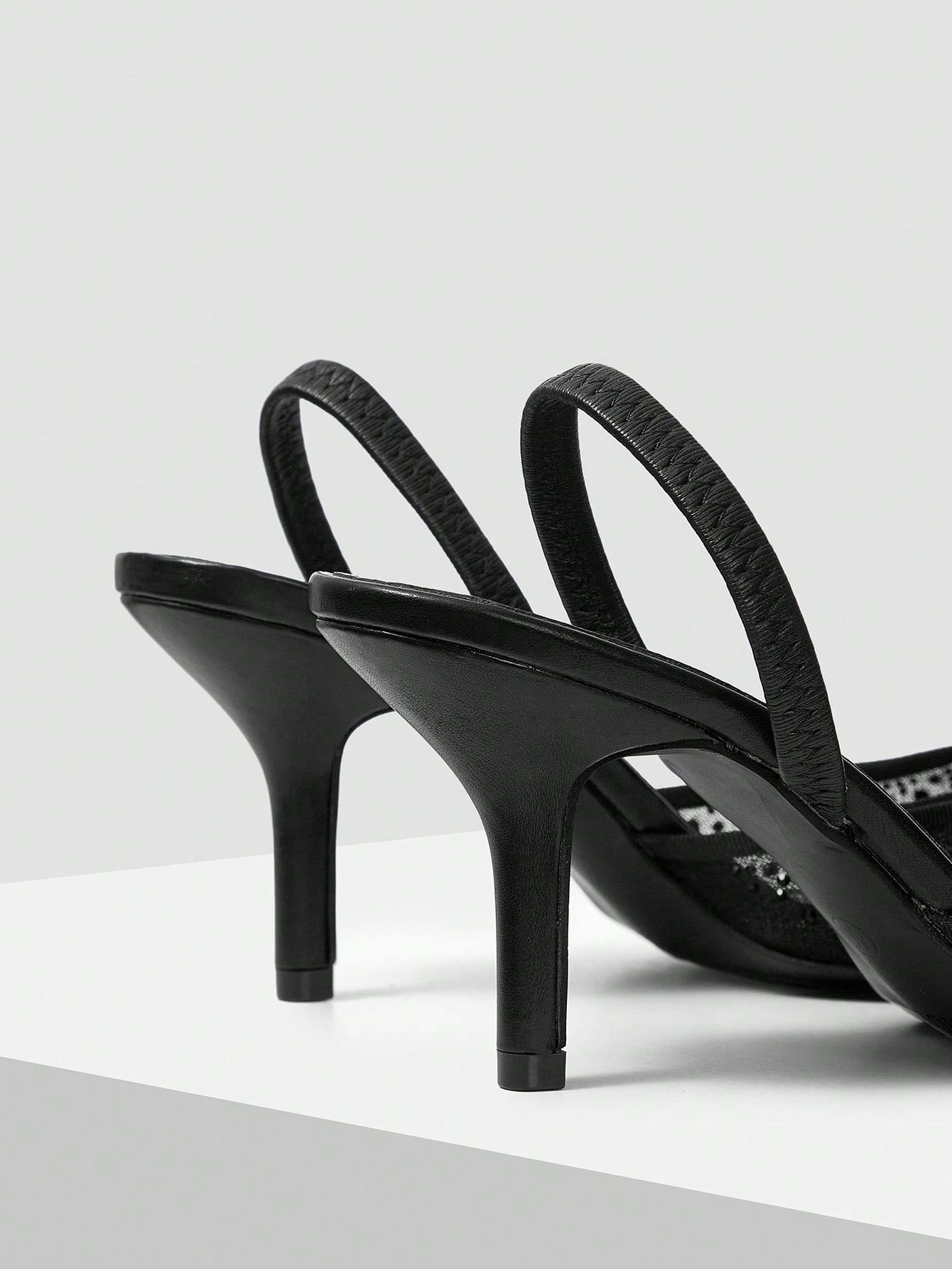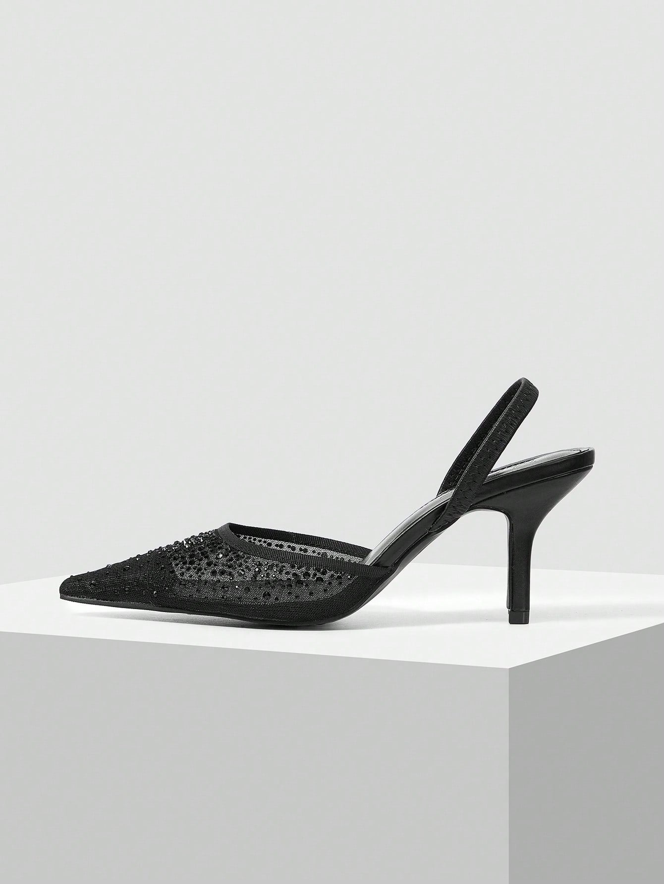 حذاء نسائي MOTF PREMIUM FASHION NET MESH RHINESTONE CUTOUTH STILETTO HEEL للحفلات المسائية