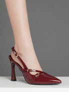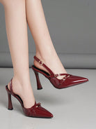 حذاء ربيعي جديد بكعب عالٍ ومقدمة مدببة باللون العنابي