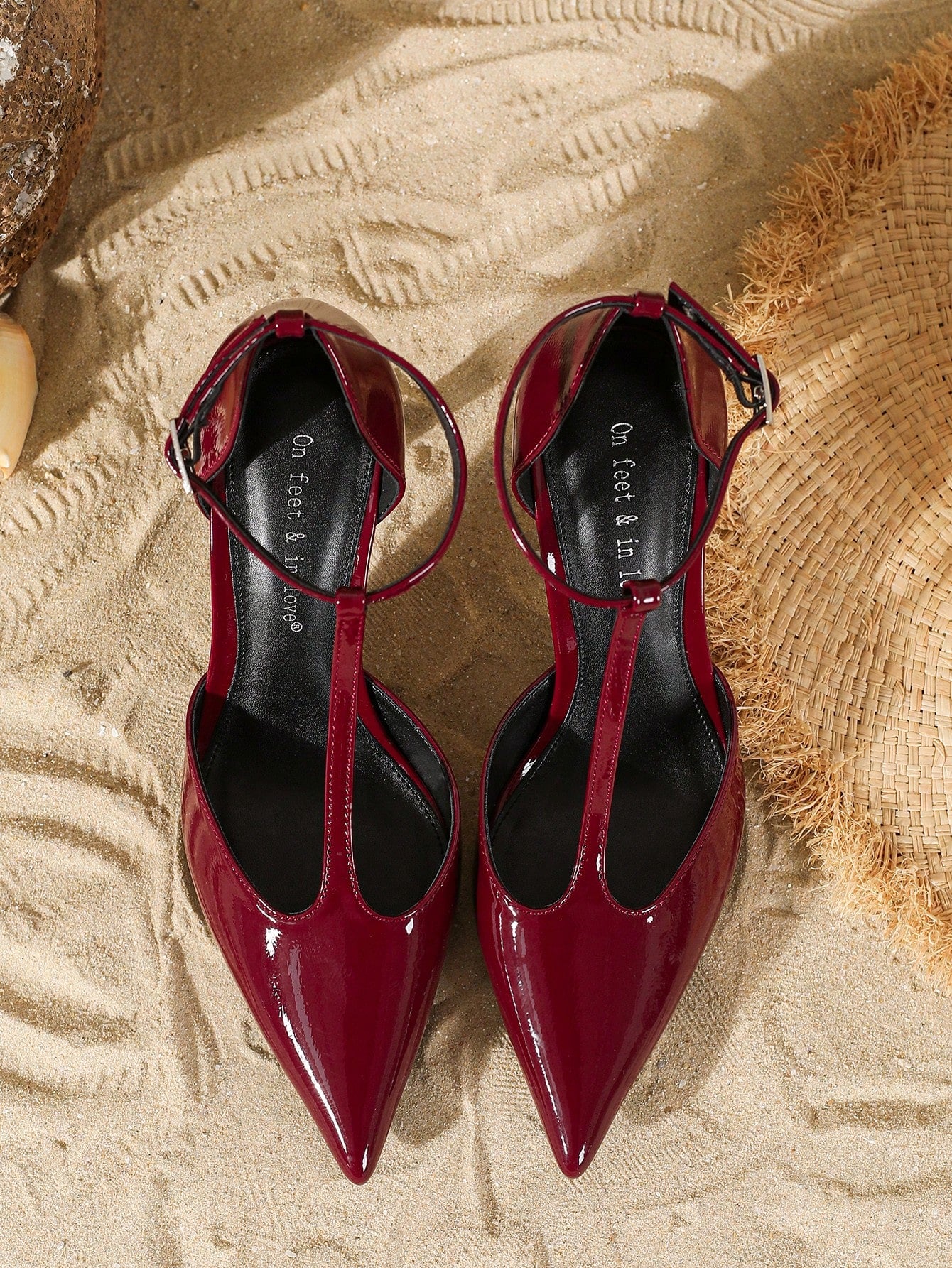 women On feet& in love Women's Elegant Fashion One-Buckle Open-Toe Pointed Toe Stiletto High Heel Pumps