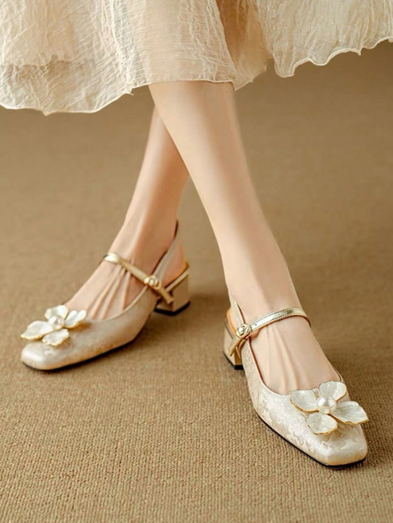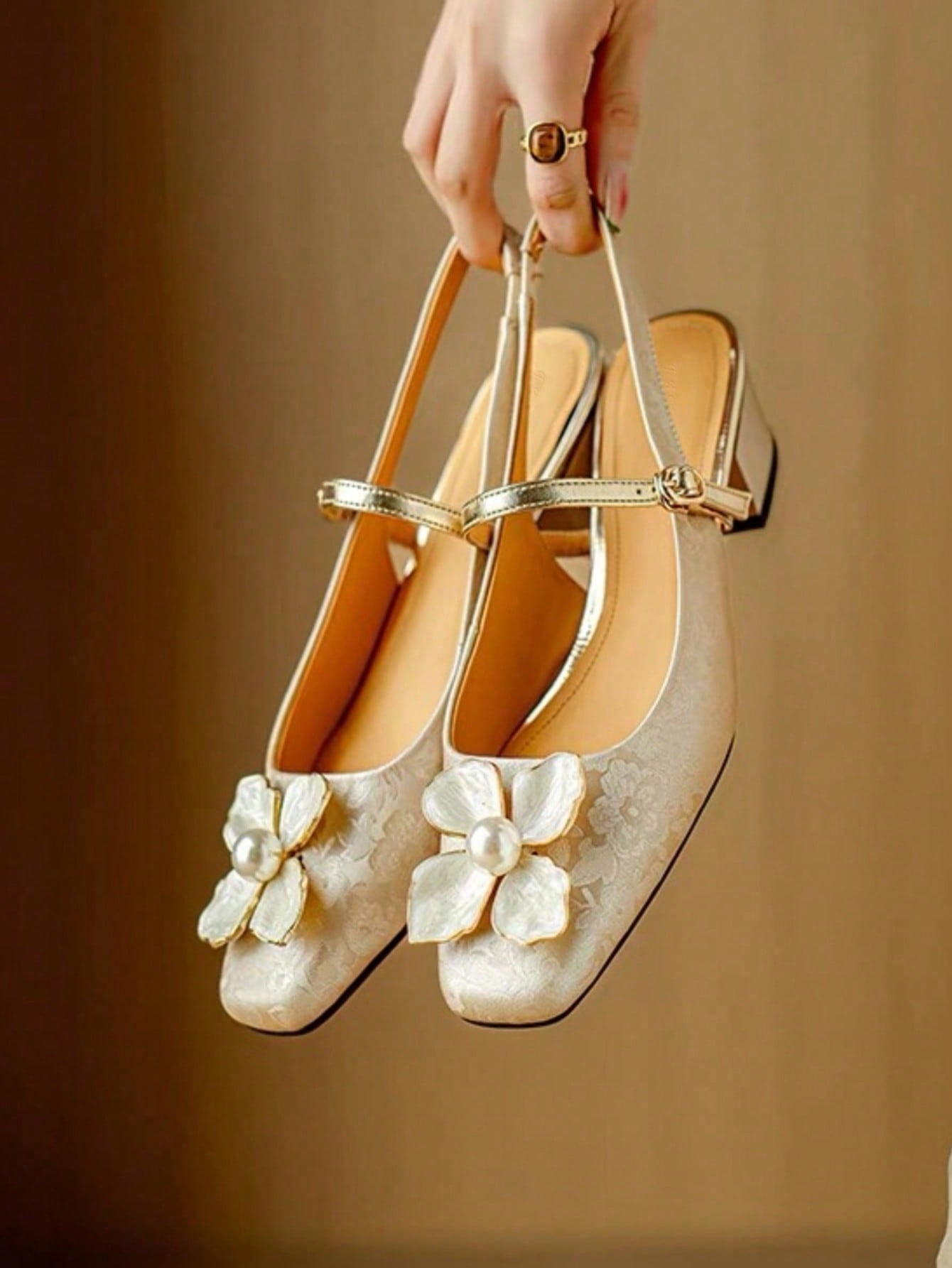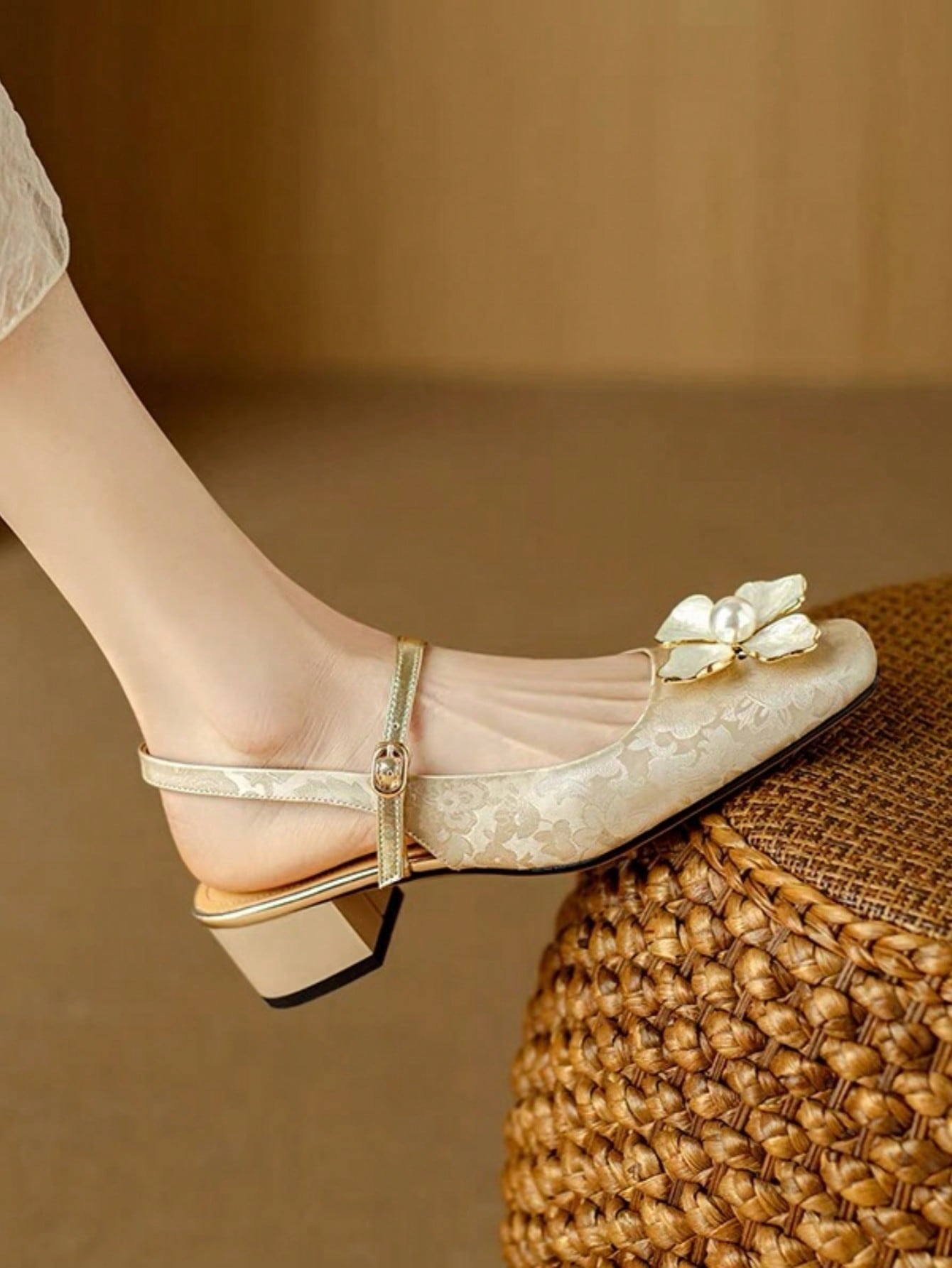 صندل نسائي مزين باللؤلؤ والكاميليا