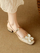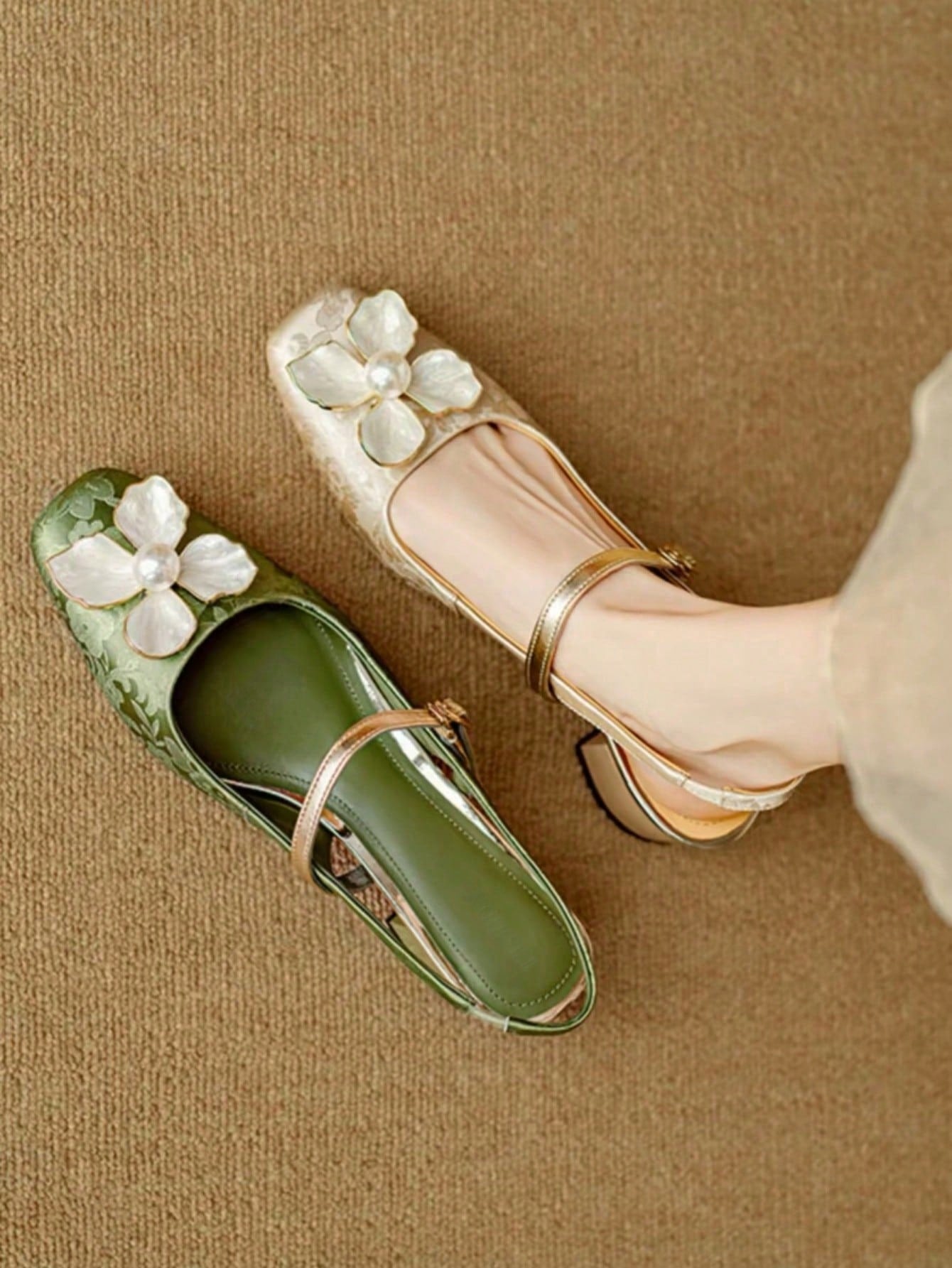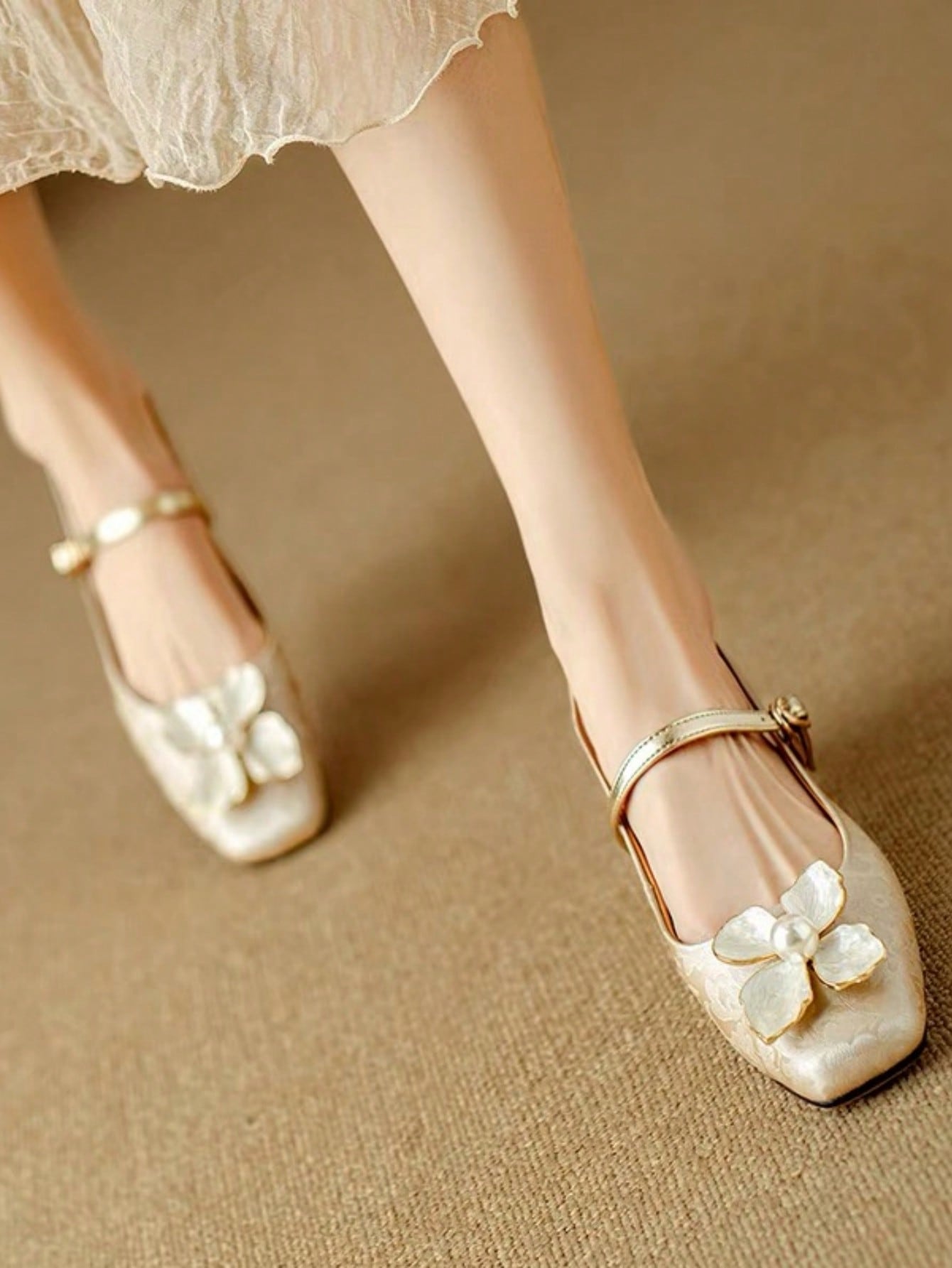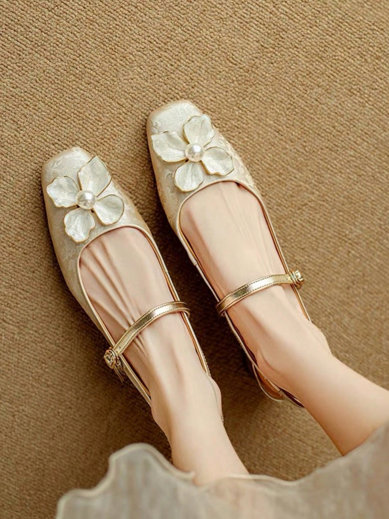 صندل نسائي مزين باللؤلؤ والكاميليا