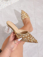 women Plus Size Women's Gold Pointed Toe High Heels With Rhinestone