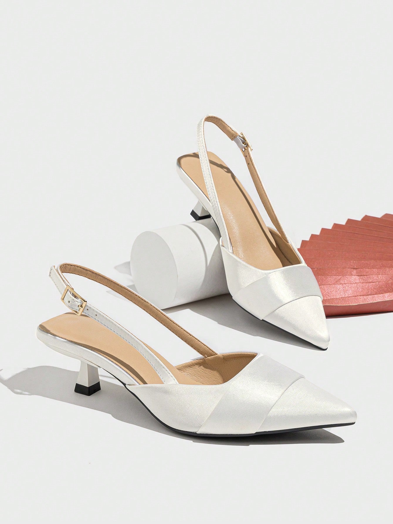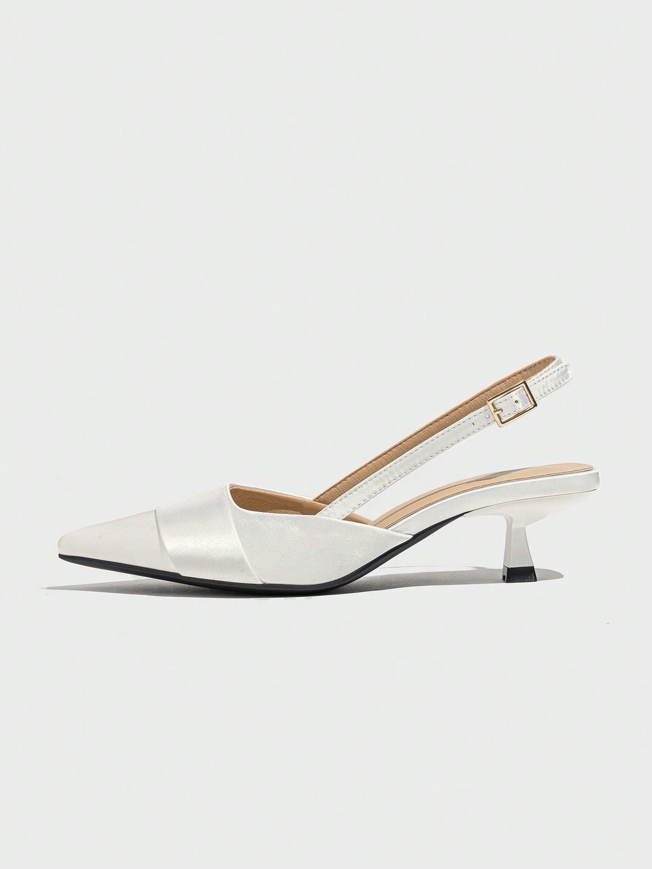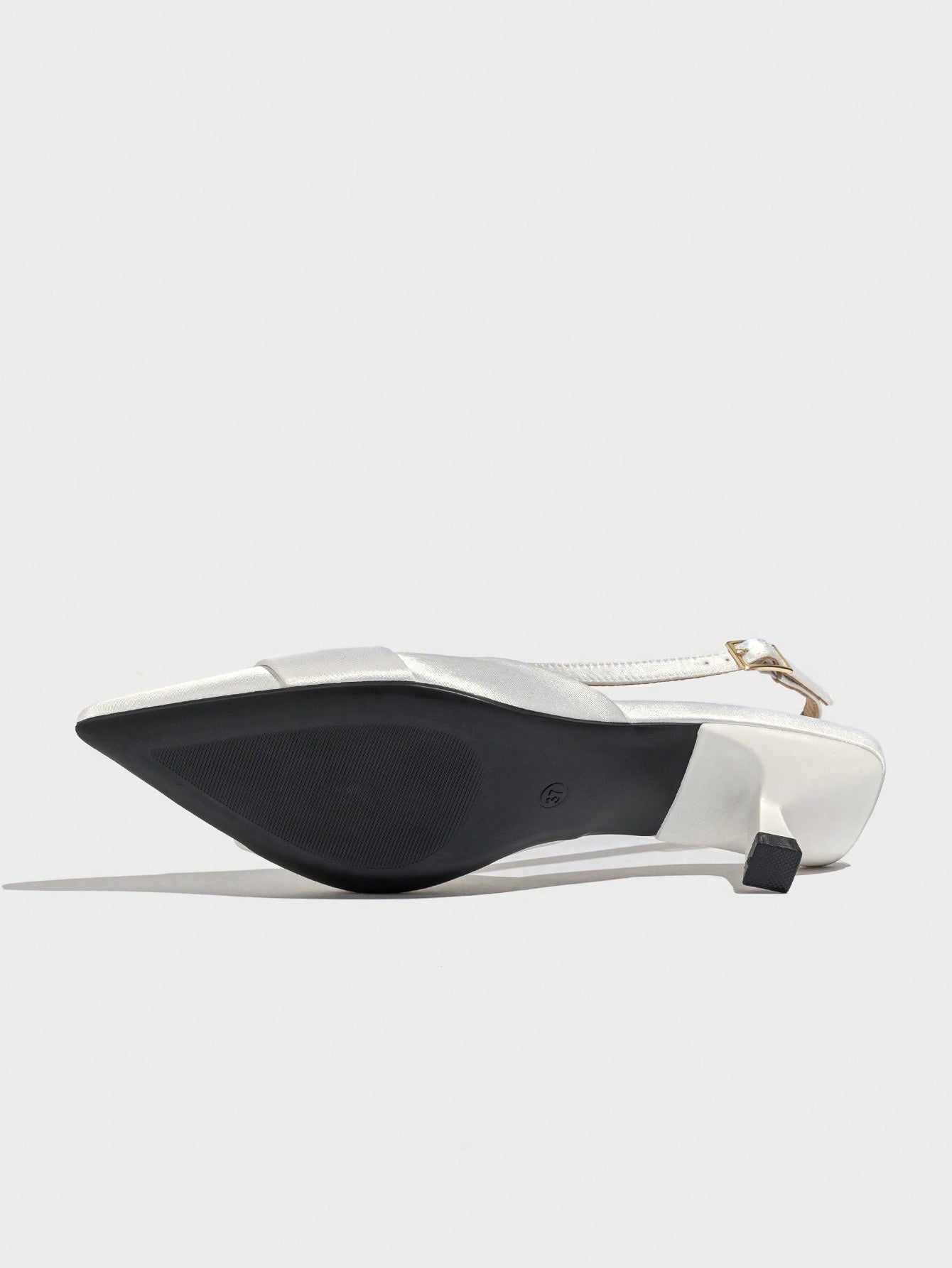 women Women's Buckle Design Solid Pointed Toe Slingback High Heel Pumps Elegant For Daily Wear