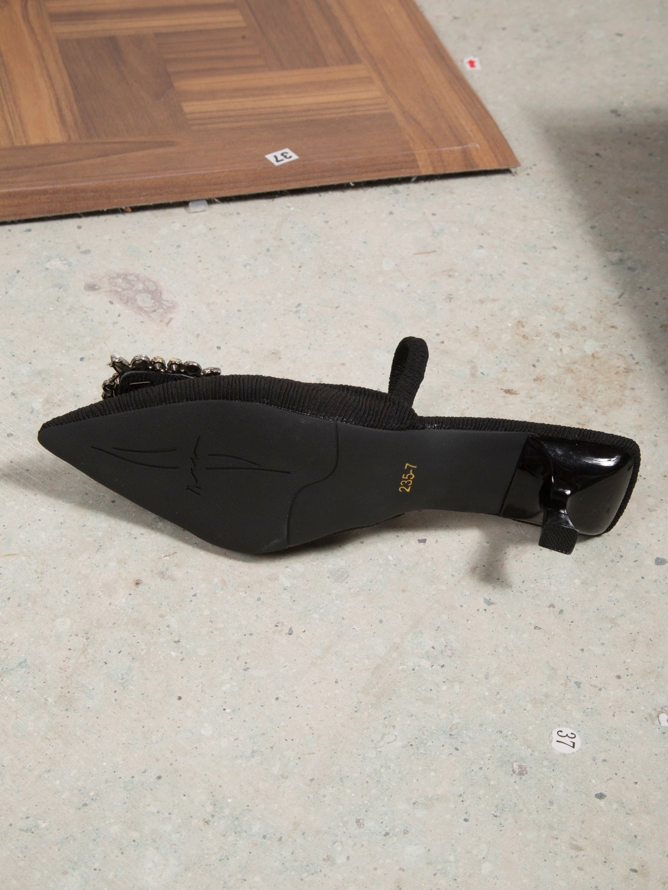 صنادل نسائية بكعب ستيليتو مغلق من الأمام مع إبزيم من أحجار الراين لفصل الصيف