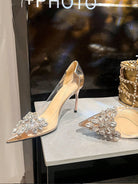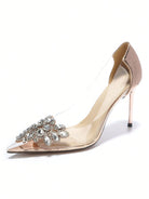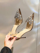 women Women's Handmade Crystal Embellished Transparent High Heel Pointed Toe Stilettos
