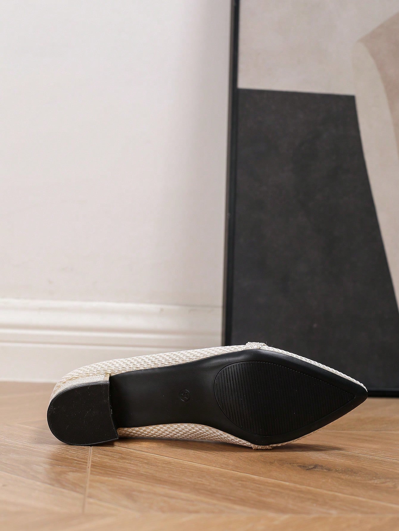 حذاء ماري جين مسطح أنيق للنساء بمقدمة مدببة وكعب سميك وإبزيم معدني