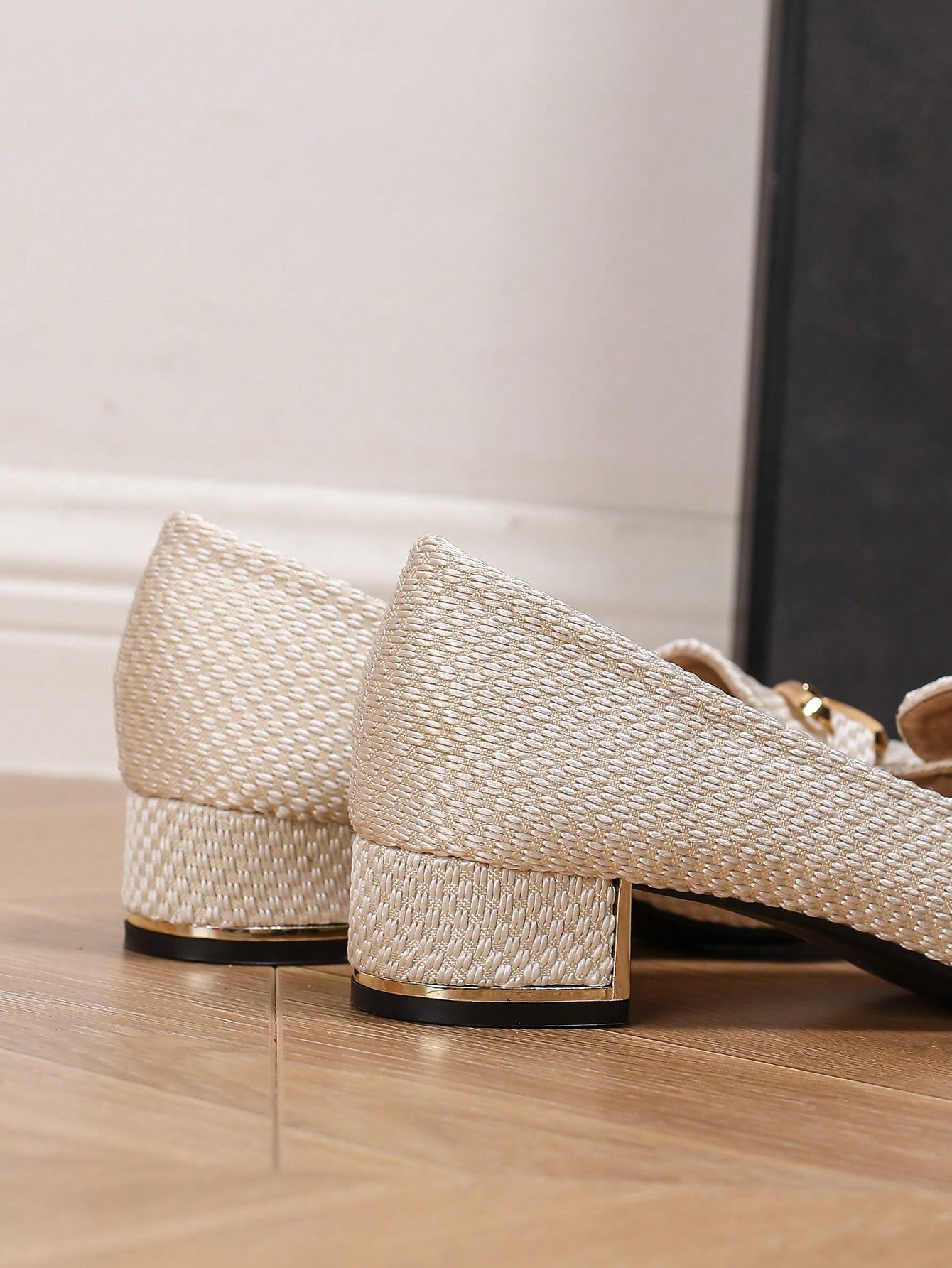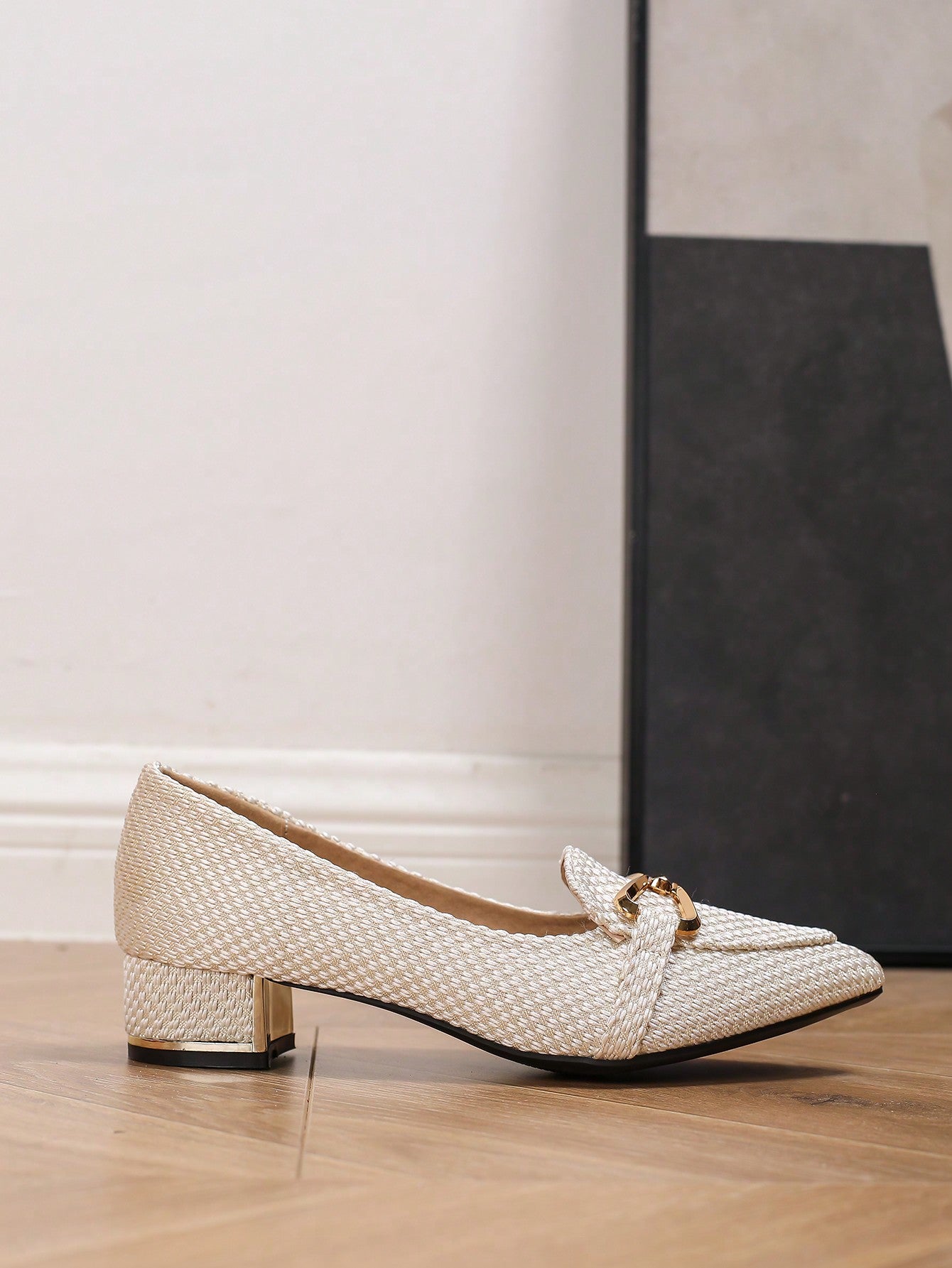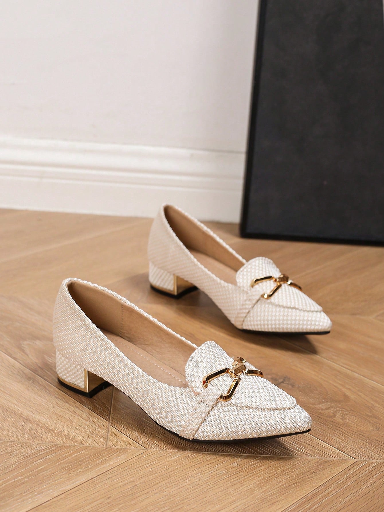 women Women's Pointed Toe Chunky Heel Metal Buckle Fashion Mary Jane Loafer Flats