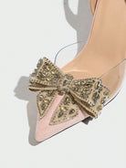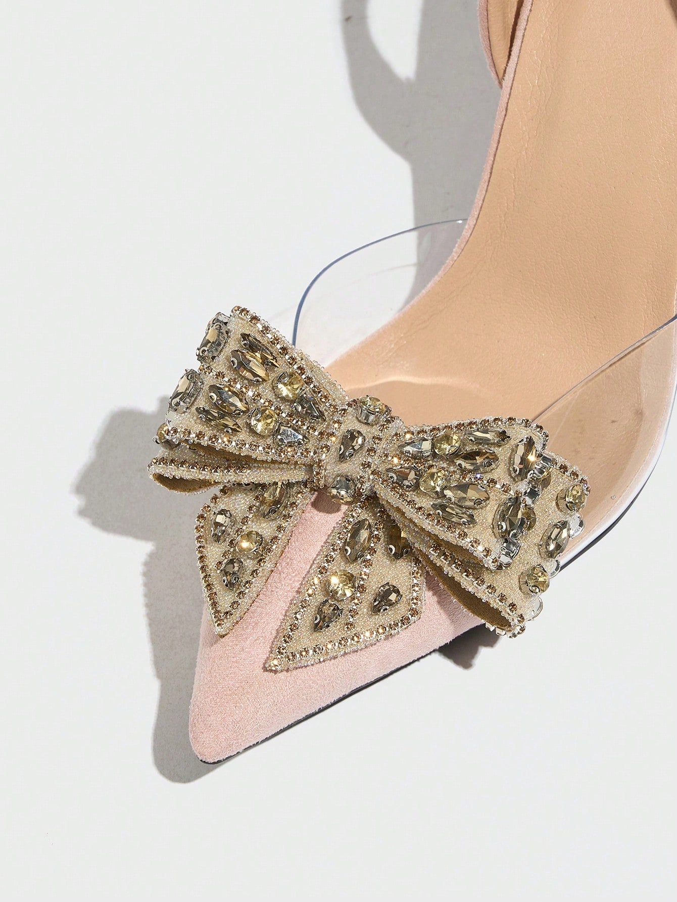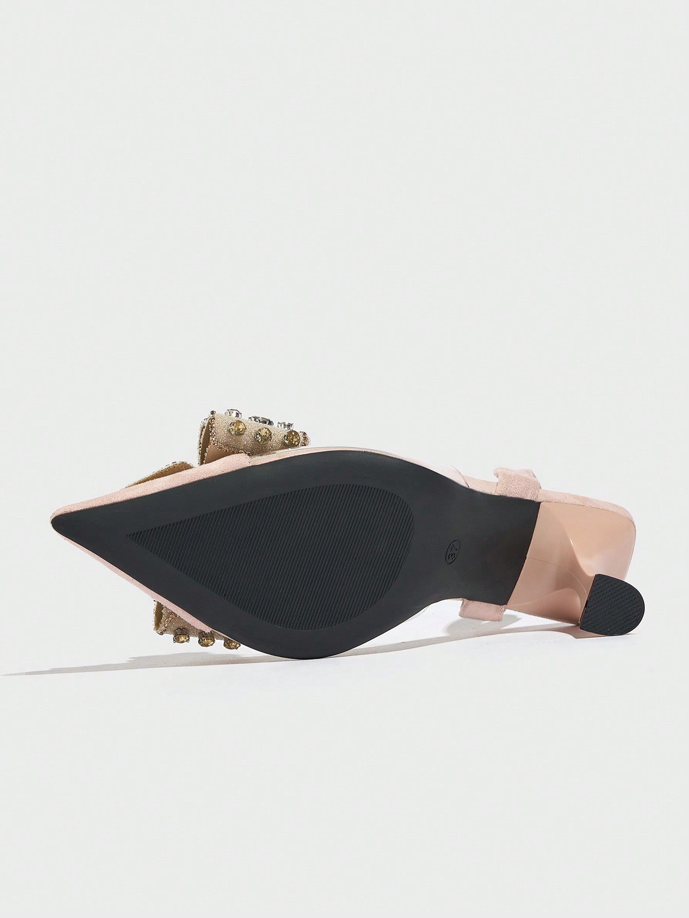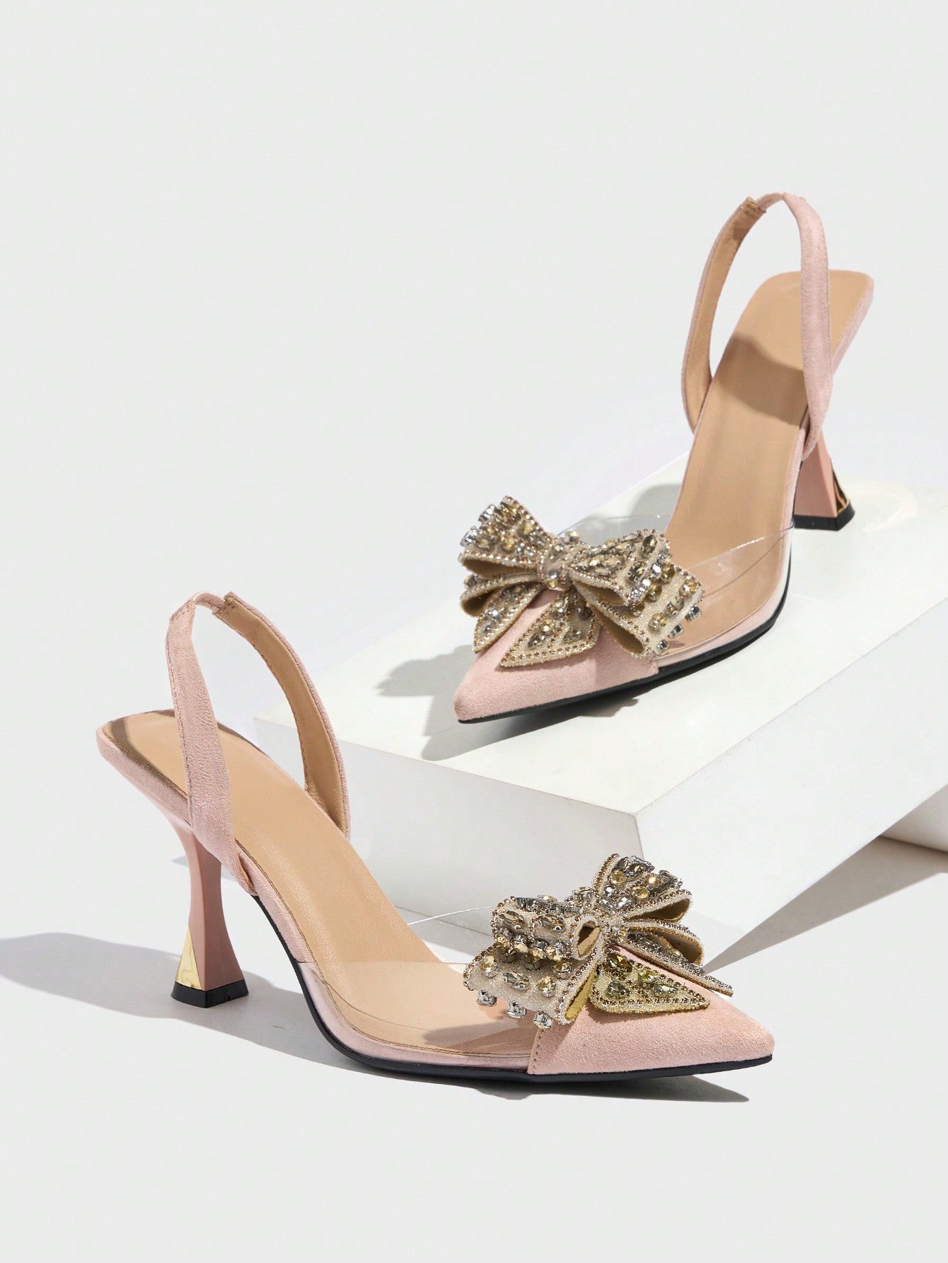 women Women's Rhinestone Bowknot Decor Pointed Toe Slingback High Heels