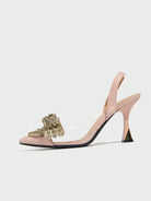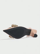 حذاء نسائي بكعب عالٍ مفتوح من الخلف ومزين بعقدة من أحجار الراين