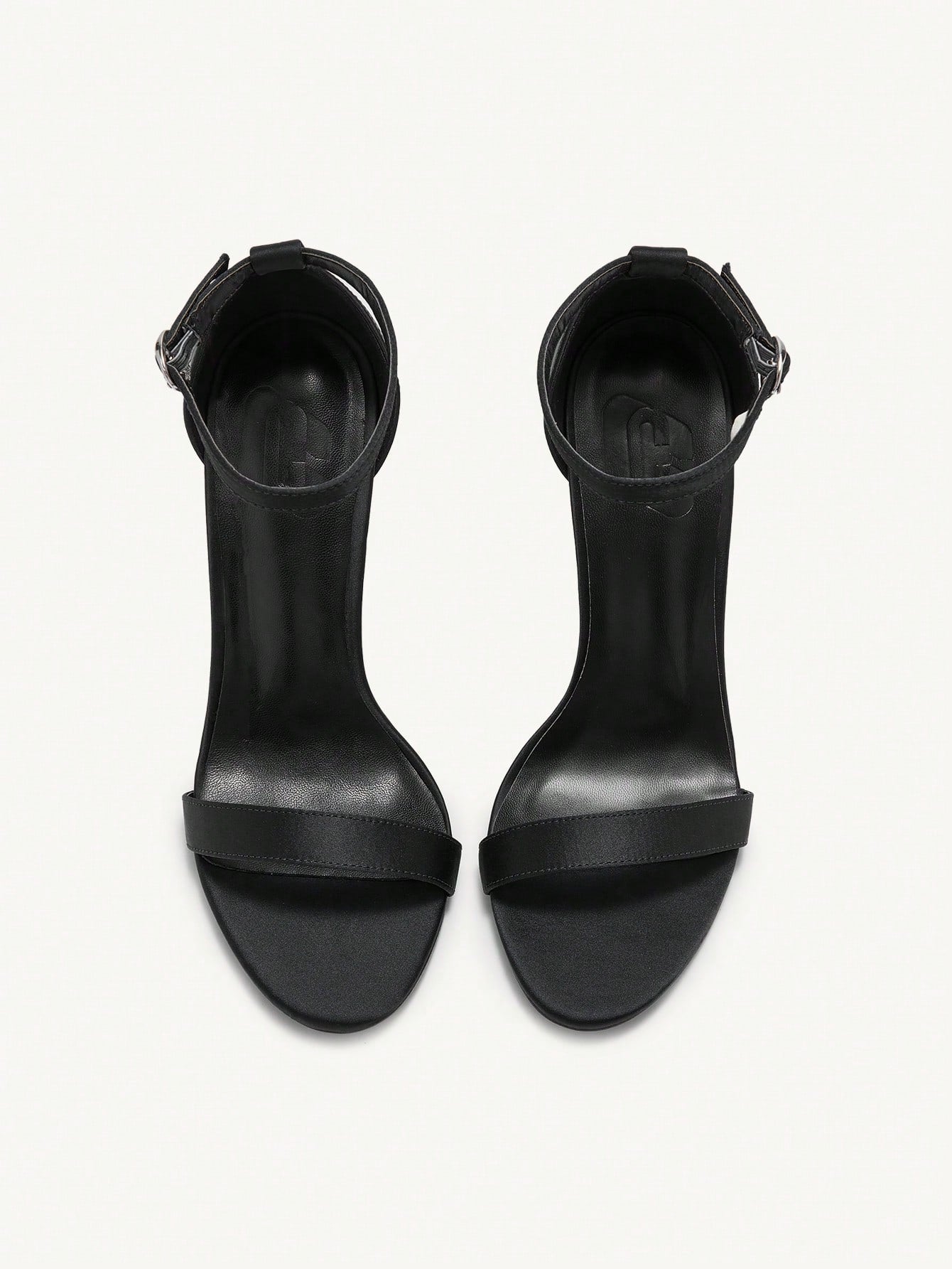 صندل CUCCOO SZL الأساسي للمناسبات/الحفلات باللون الأسود من الساتان بحزام للكاحل ومقدمة مستديرة وكعب رفيع رفيع
