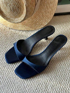 صندل فرنسي أنيق بكعب عالٍ مفتوح من الأمام بتصميم بسيط للنساء