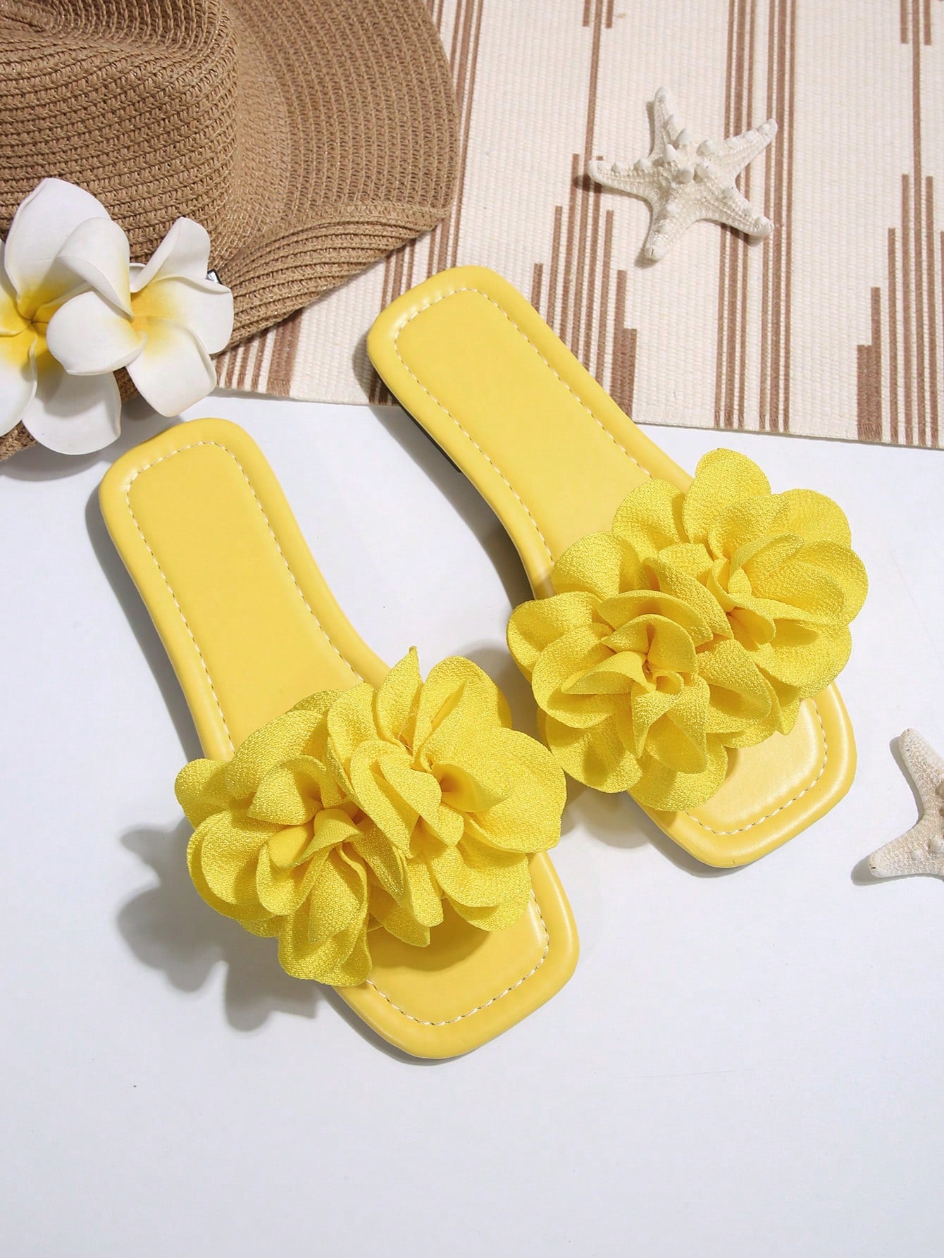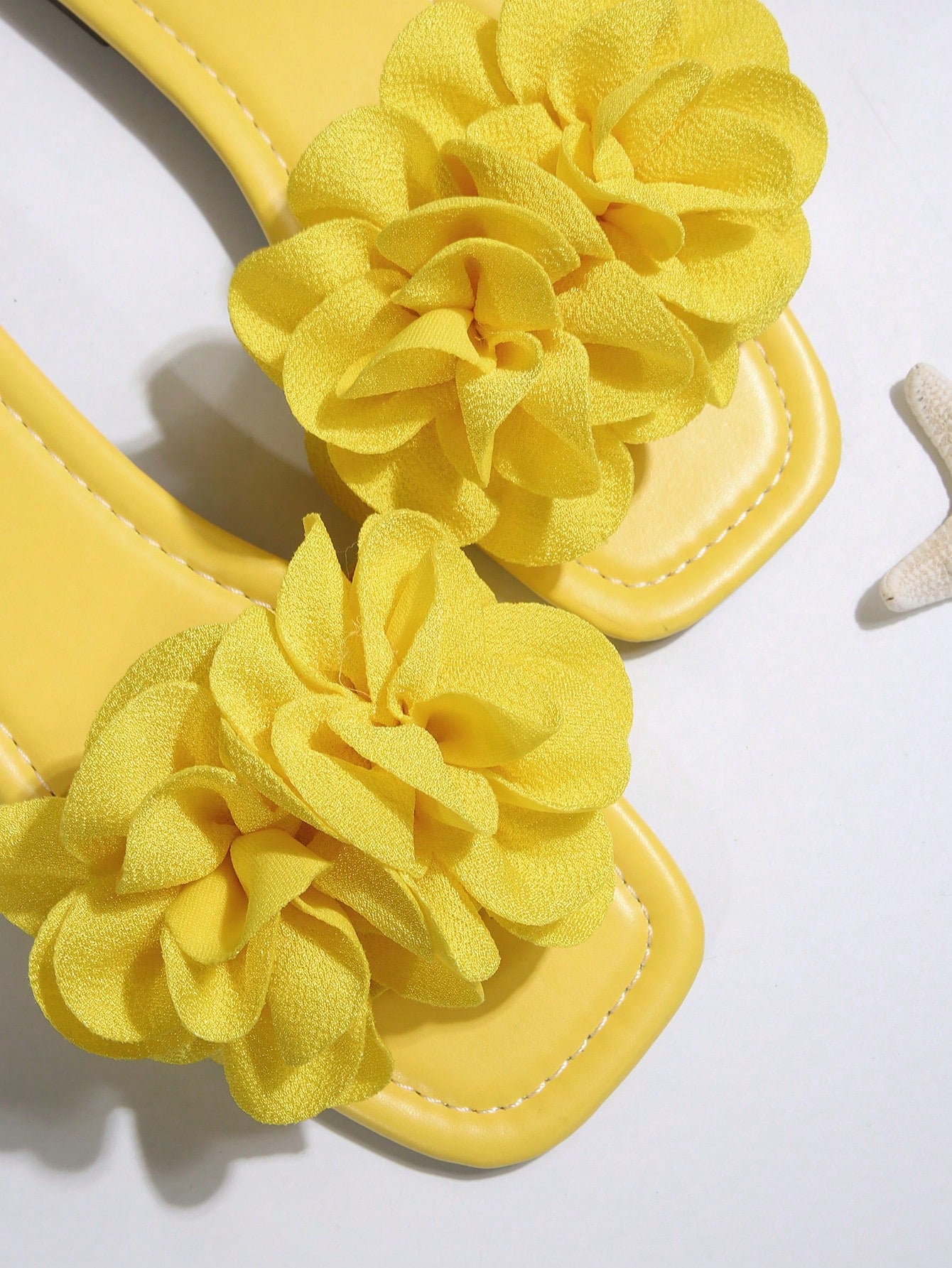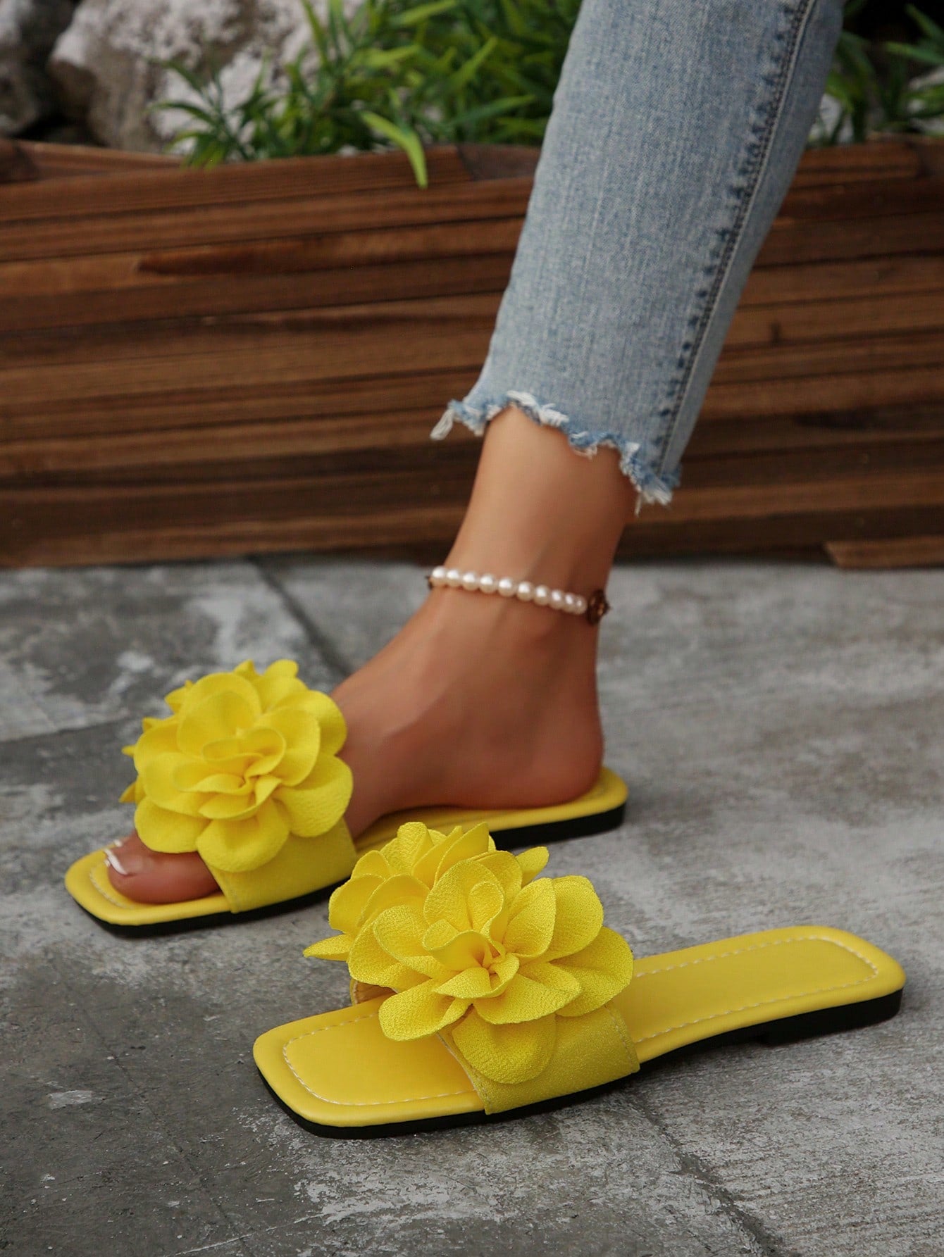 صندل نسائي فرنسي أنيق وناعم مزين بالزهور