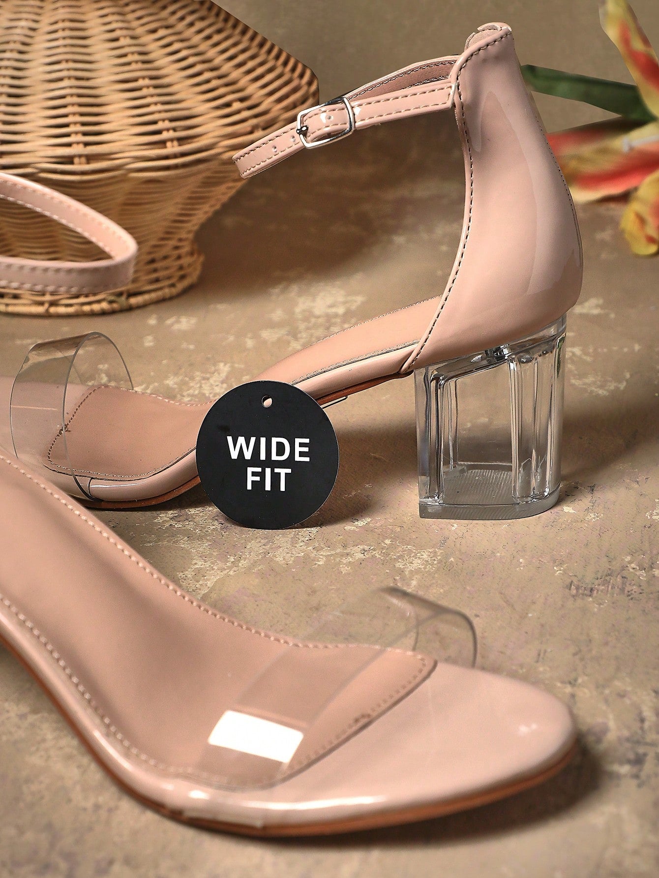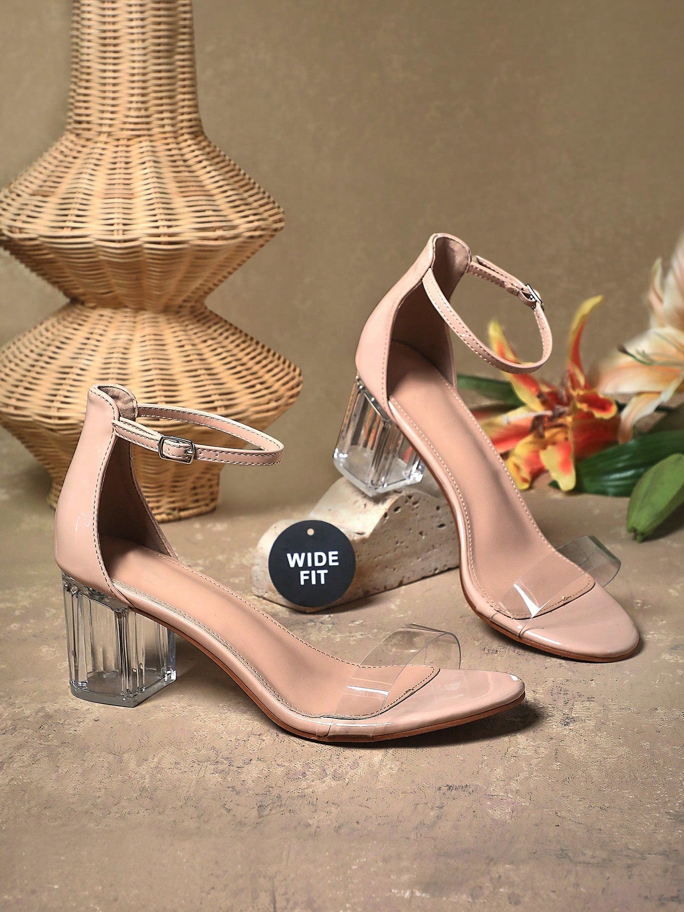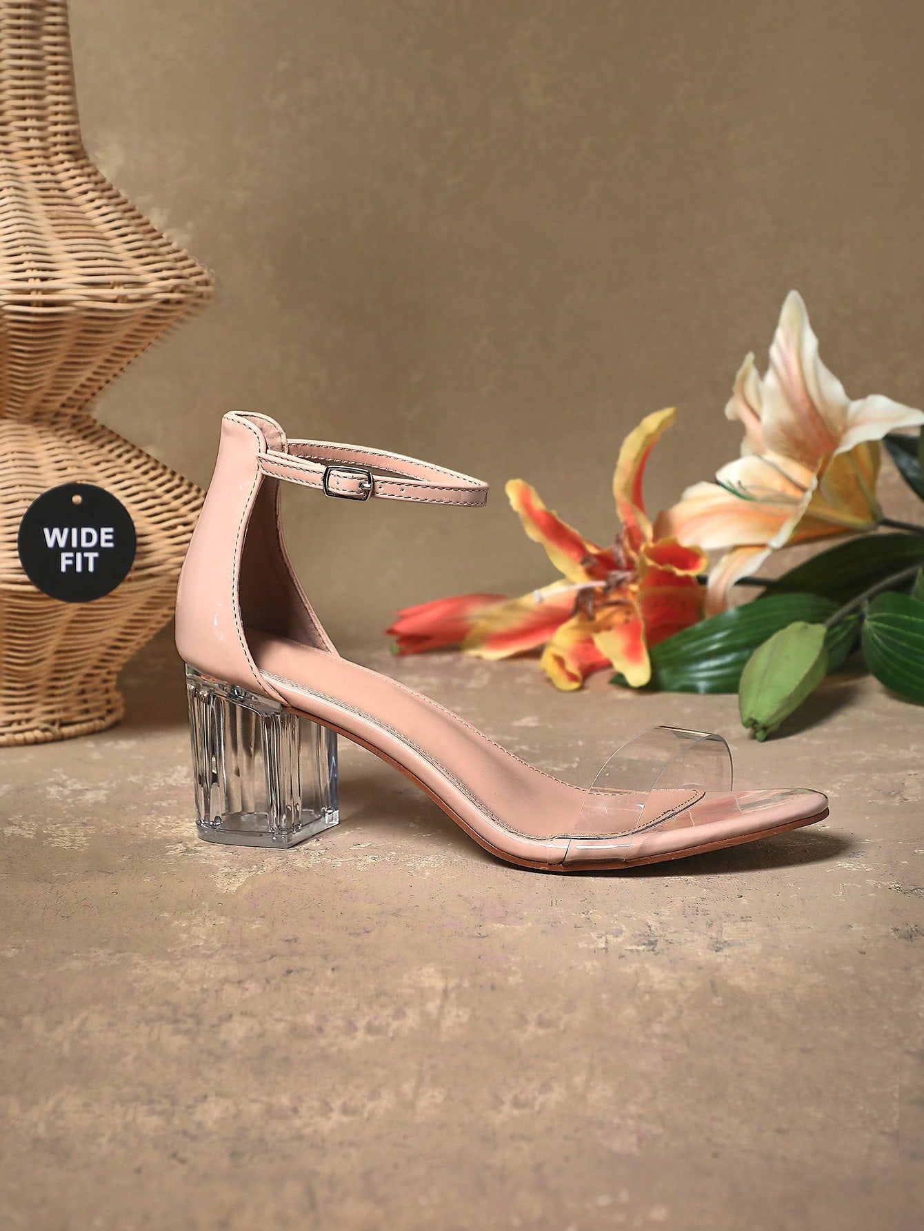 women SHUZIA Wide Fit Women's Crystal-Embellished Block Heel Clear Classic Single-Band Sandals |Designer-Inspired Wedding Guest To Office Versatile
