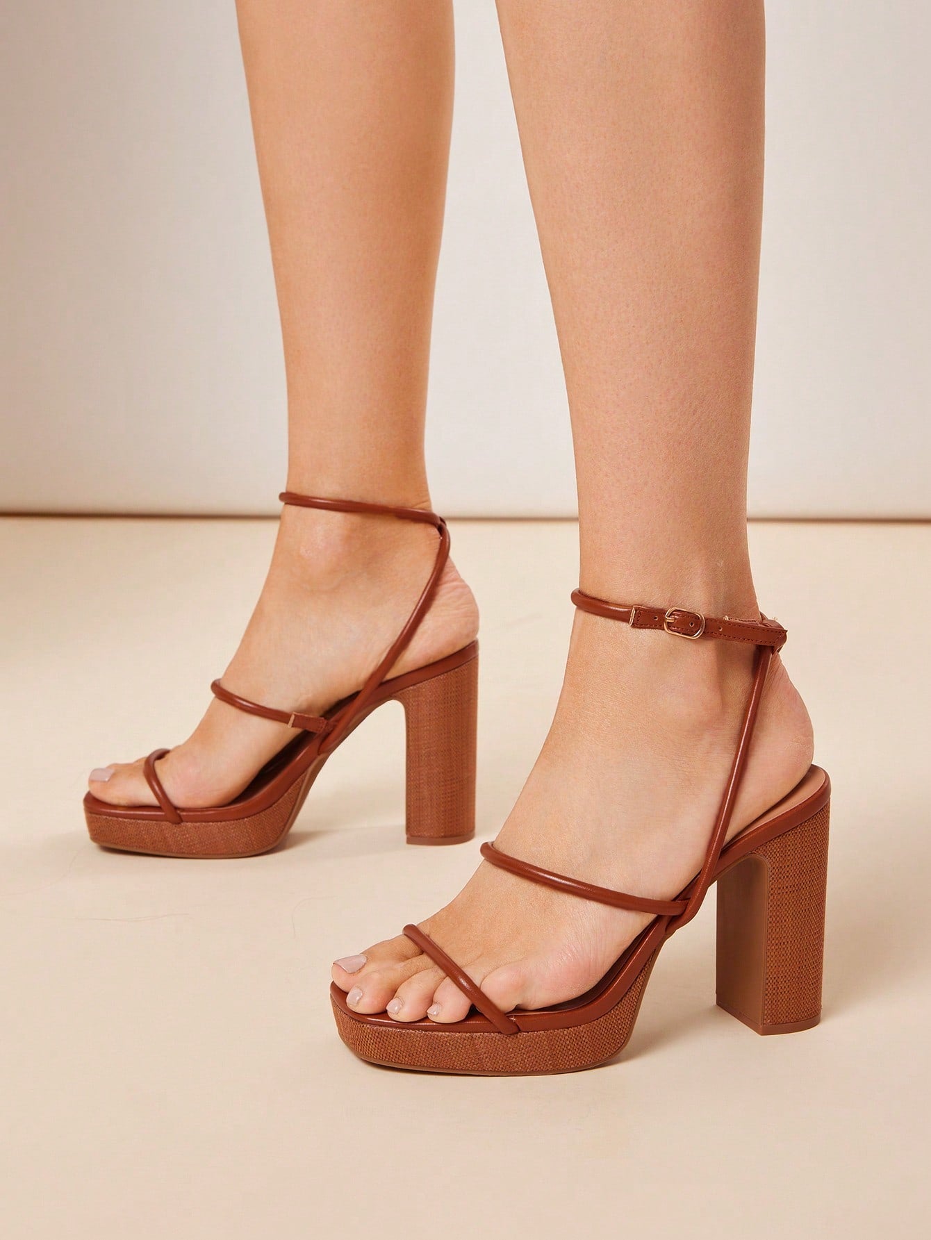 صندل SHUZIA النسائي المريح ذو الكعب العالي وحزام الكاحل