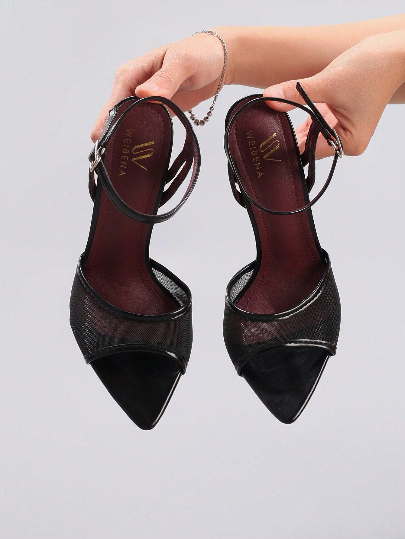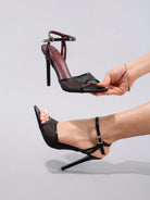 صندل نسائي بكعب عالٍ من الدانتيل باللون الأسود