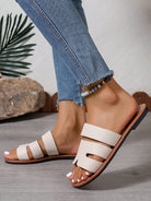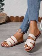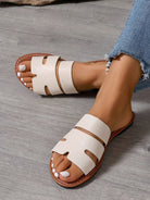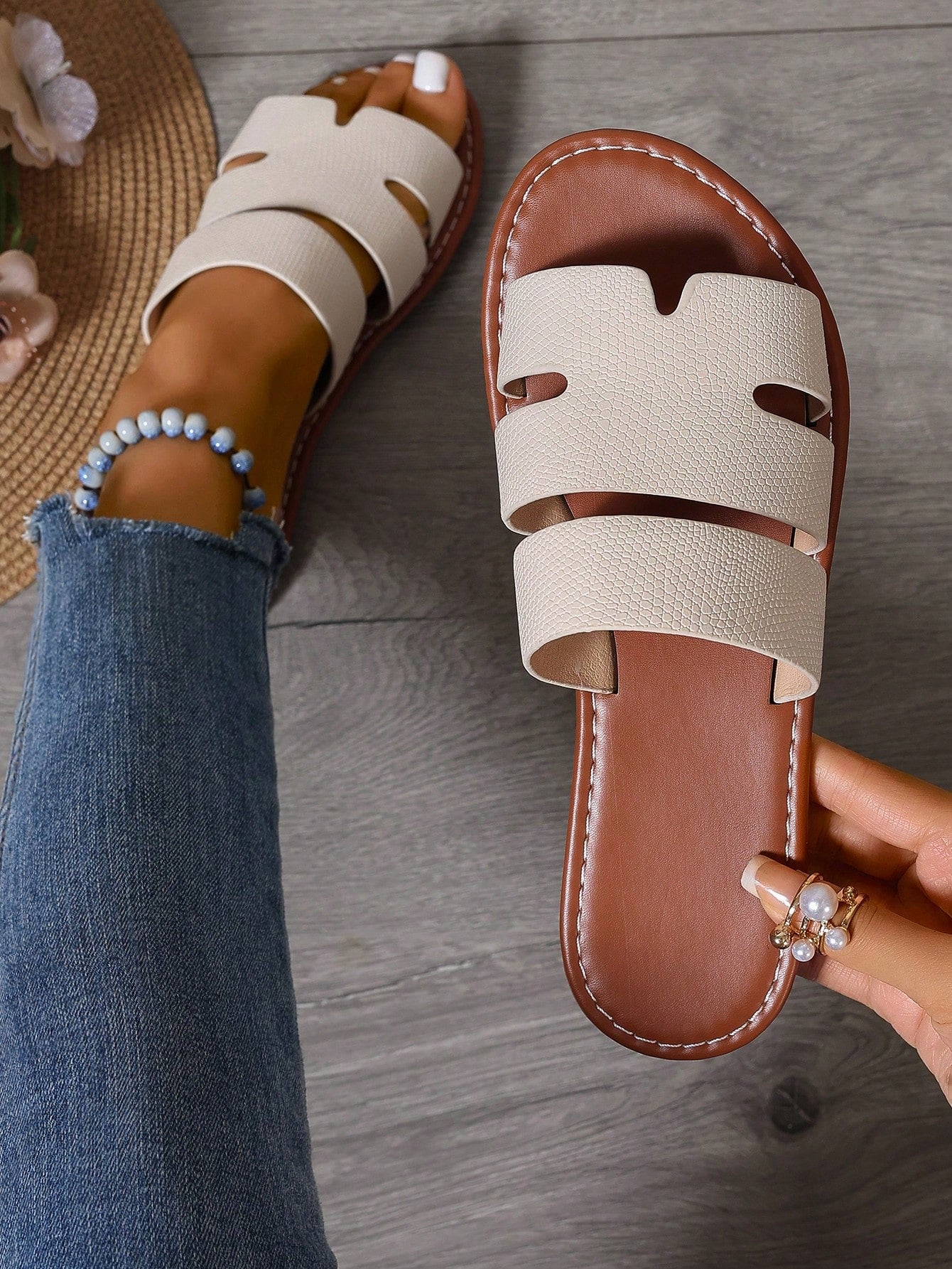 صنادل نسائية جديدة أنيقة لربيع وصيف هذا العام، سهلة الارتداء، بكعب مسطح ومقدمة مفتوحة، مناسبة للشاطئ.